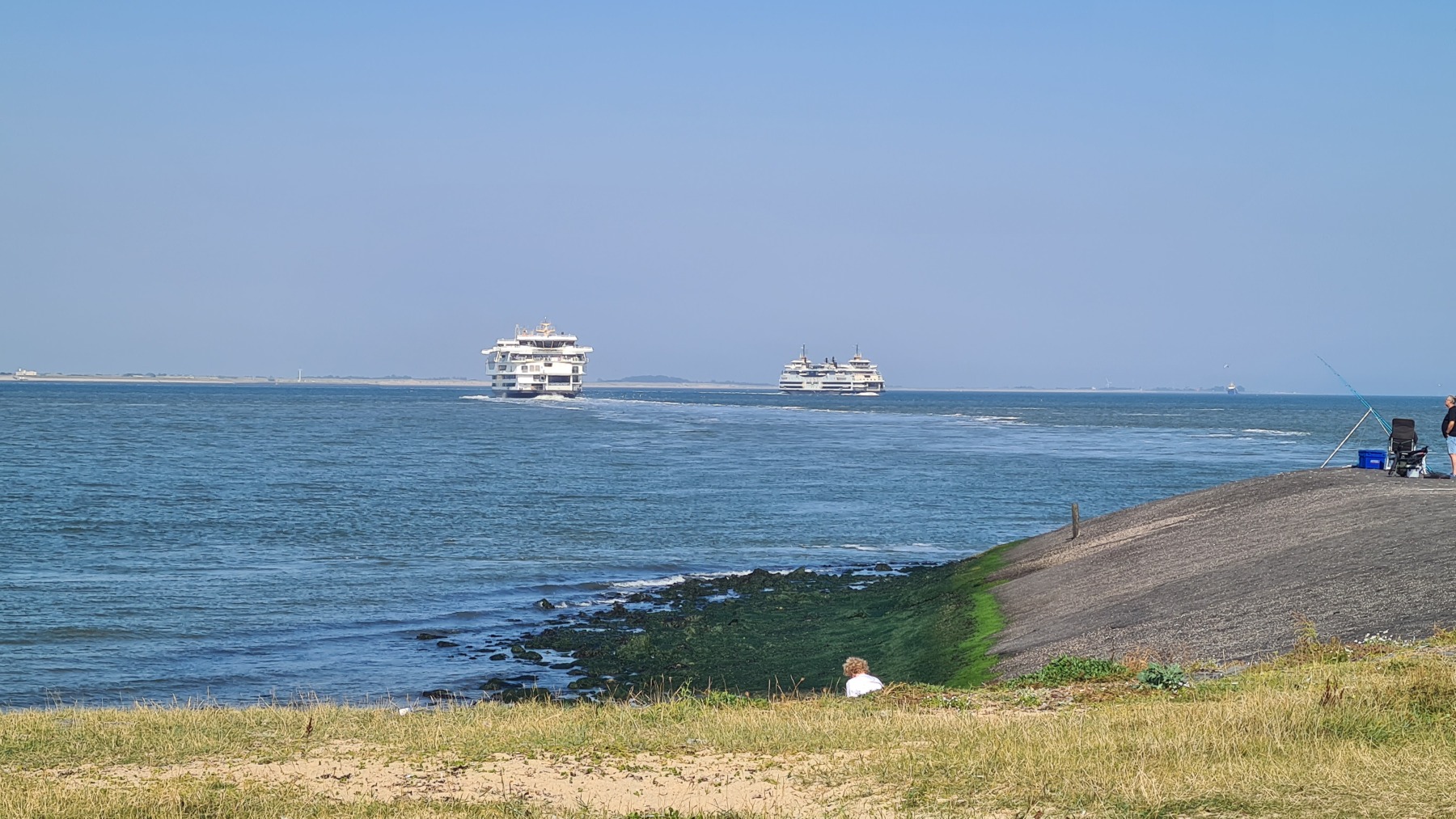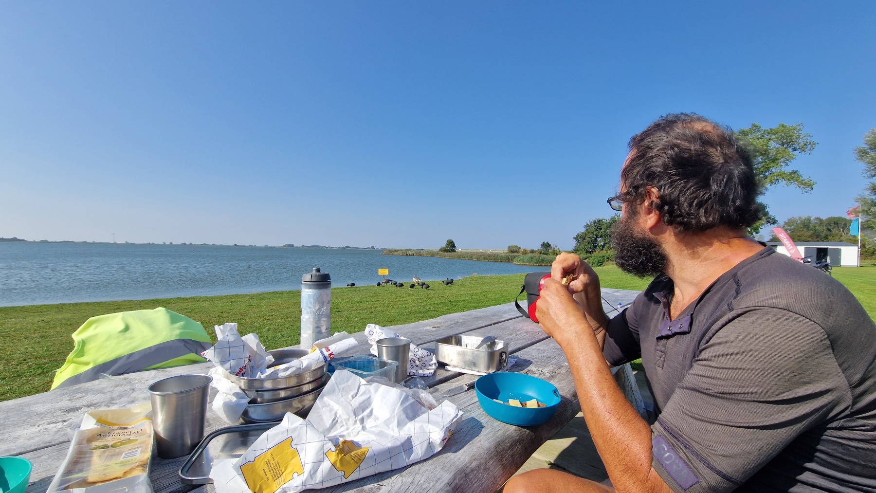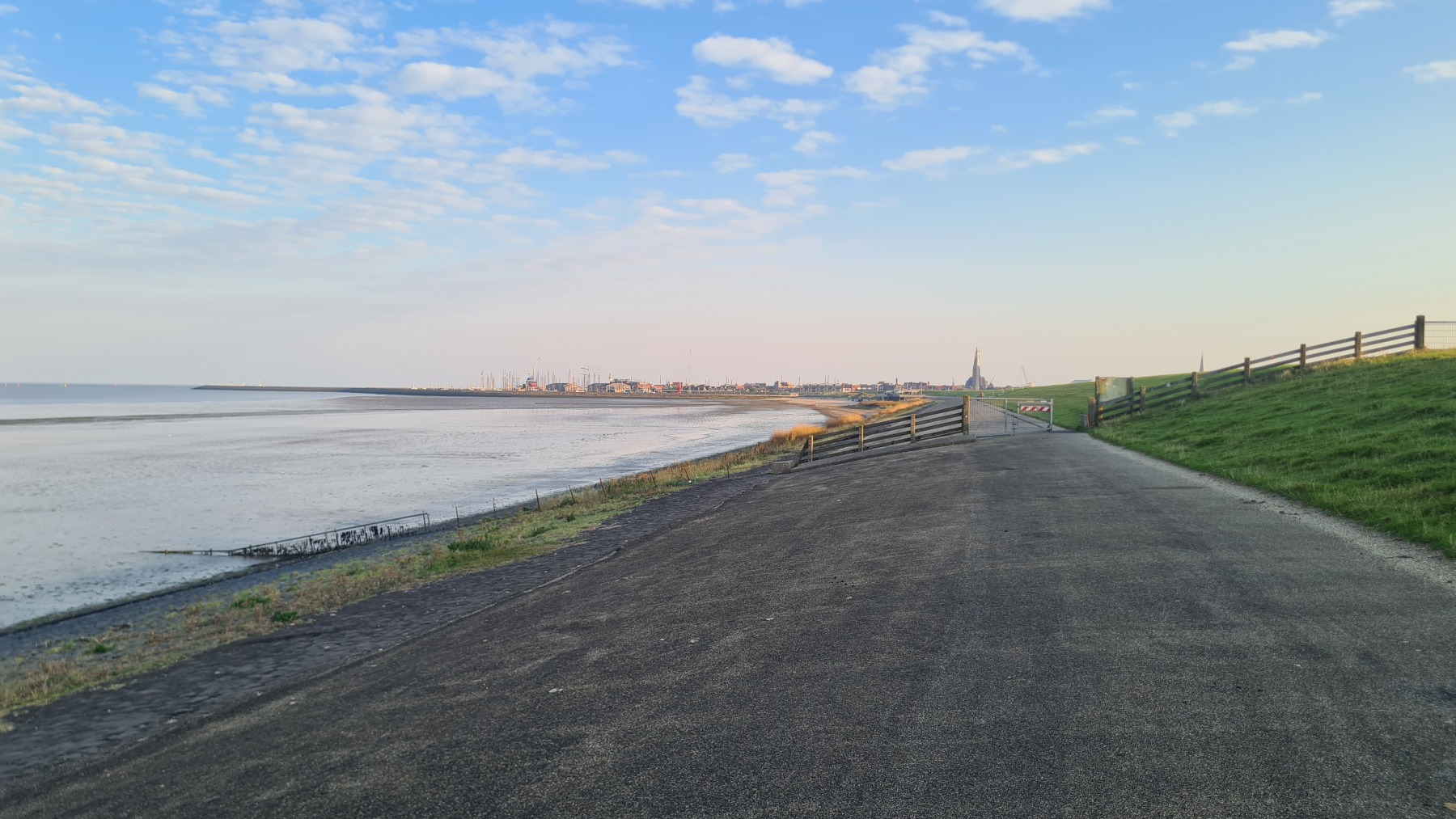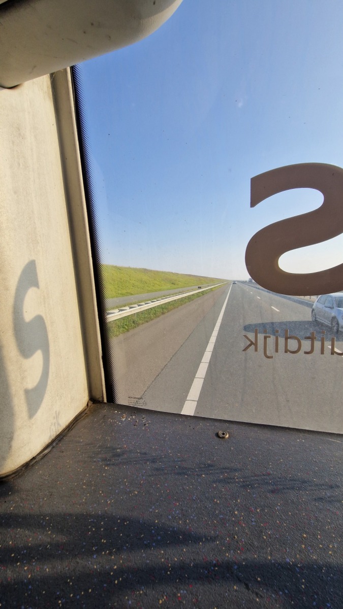 Si tous les Néerlandais semblent au courant que la piste cyclable qui circule sur cette digue est fermée pour travaux sur les écluses situées aux deux extrémités de la digue, ce n’est indiqué nulle part sur Eurovelo 12 que ce soit sur son trajet ou sur son site web… S’agissant des Pays-Bas les pouvoirs publics ont pensé aux cyclistes et ils ont mis en place une navette gratuite par bus pour les vélos mais ça ne remplace pas une traversée en vélo !