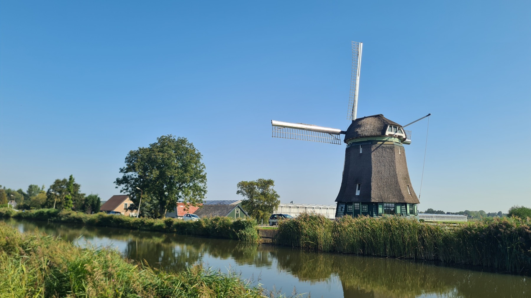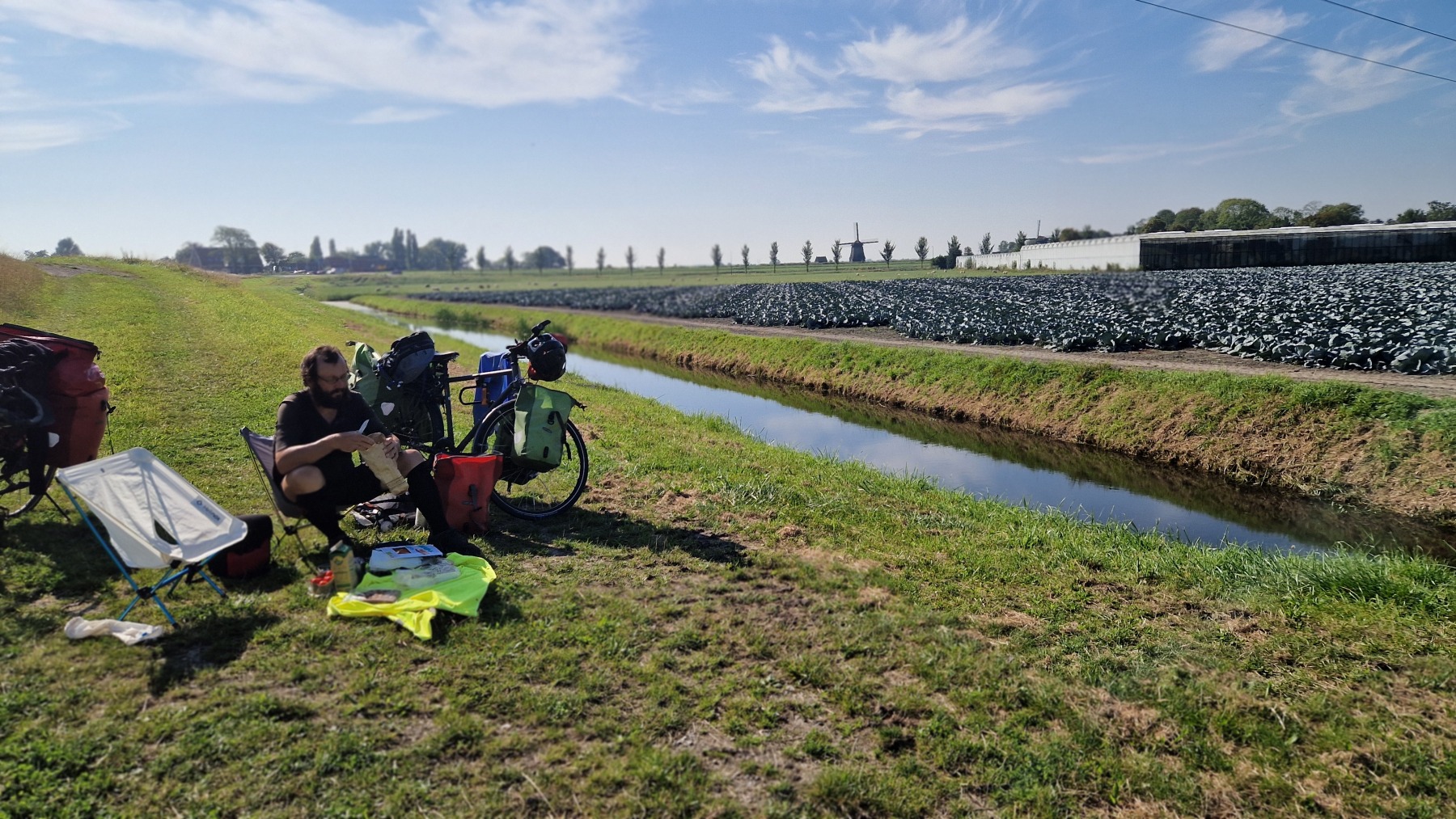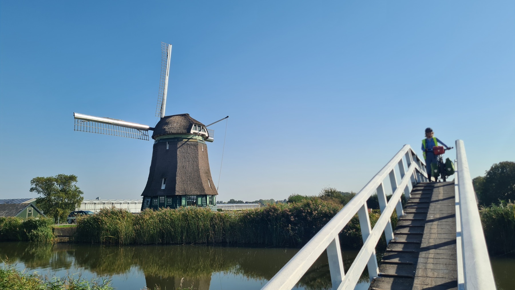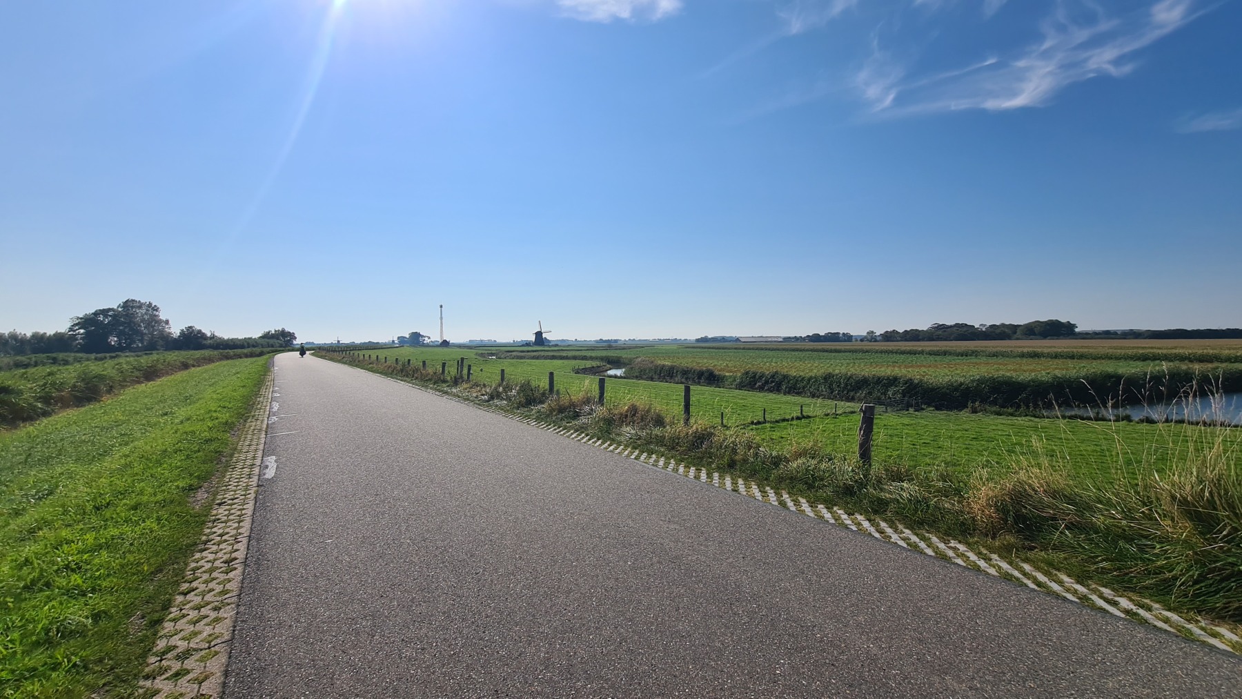 Après avoir quitté la côte nous avons roulé dans un paysage typiquement hollandais, très plat, avec ses moulins, ses champs séparés par des canaux de drainage et ses maisons bien coquettes.