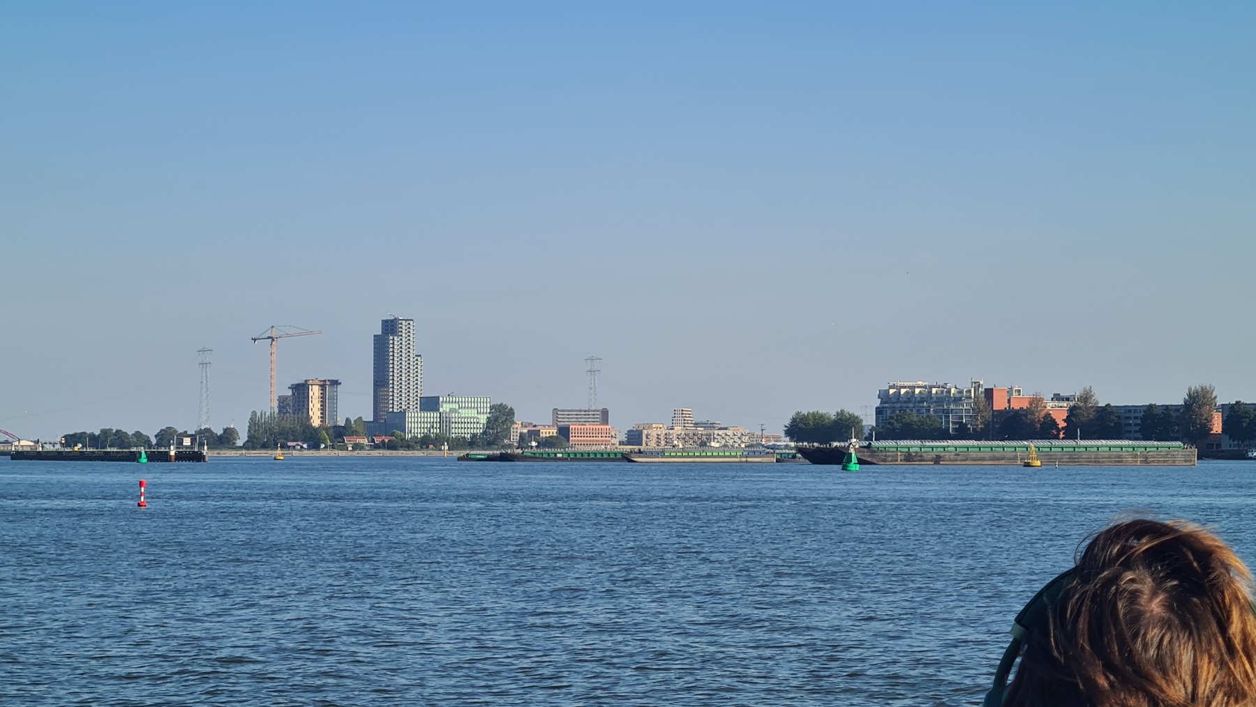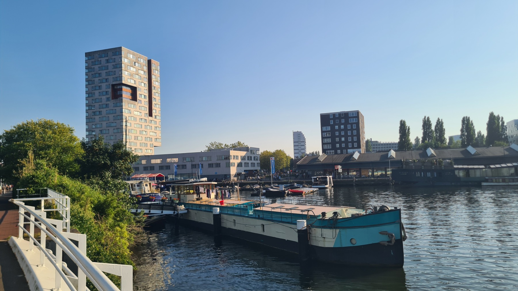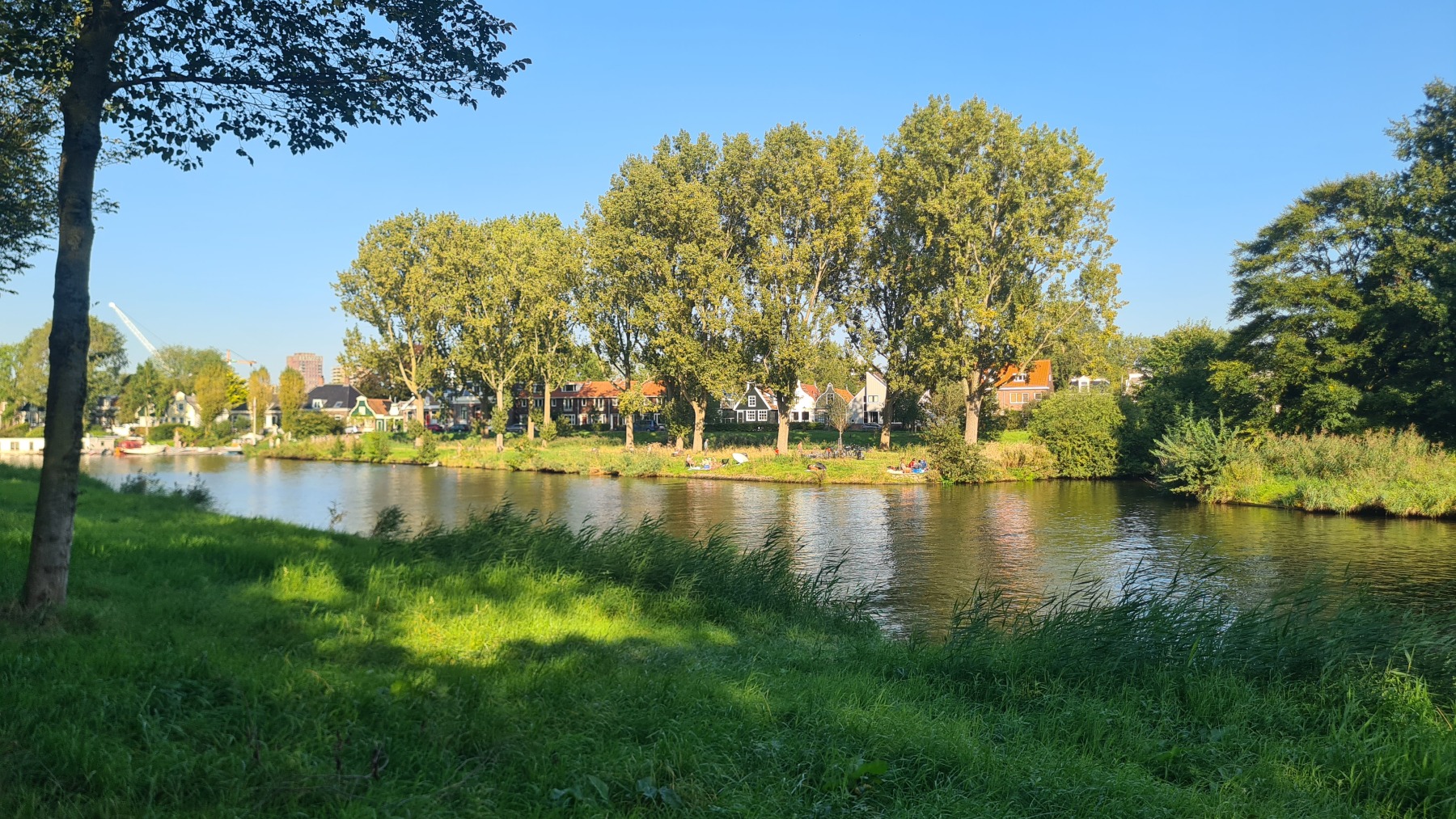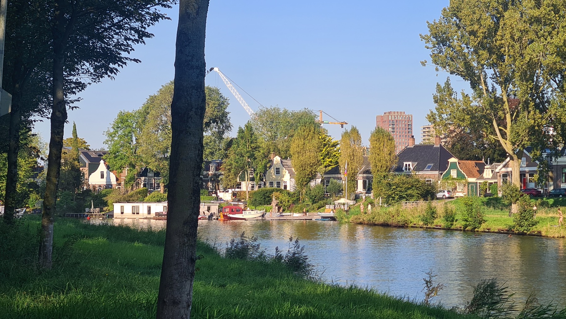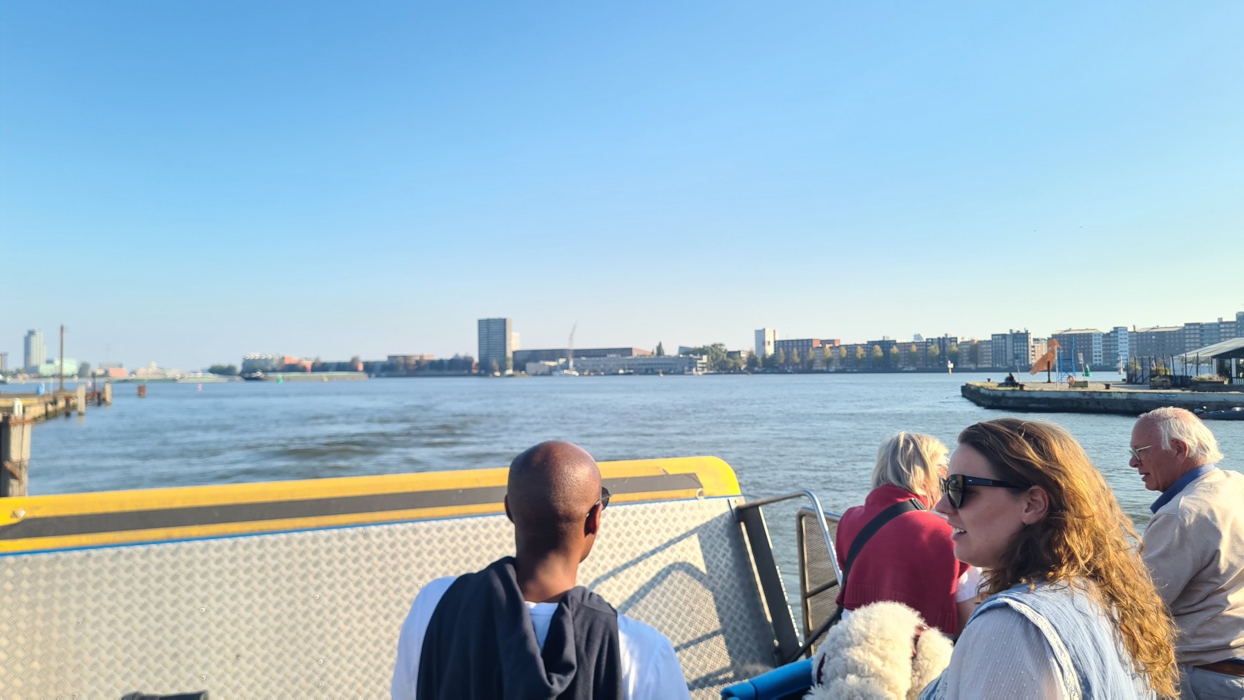 L’IJmeer et les canaux qui le relient à la mer du Nord ont freiné l’expansion de la ville, l’arrivée sur Amsterdam depuis le nord est très agréable et on roule en pleine campagne jusqu’à l’entrée de la ville. Des ferrys gratuits pour piétons et vélos tentent de désenclaver le nord d’Amsterdam et nous avons pris l’un d’entre eux pour arriver jusqu’à la péniche où nous habiterons pendant notre séjour.
