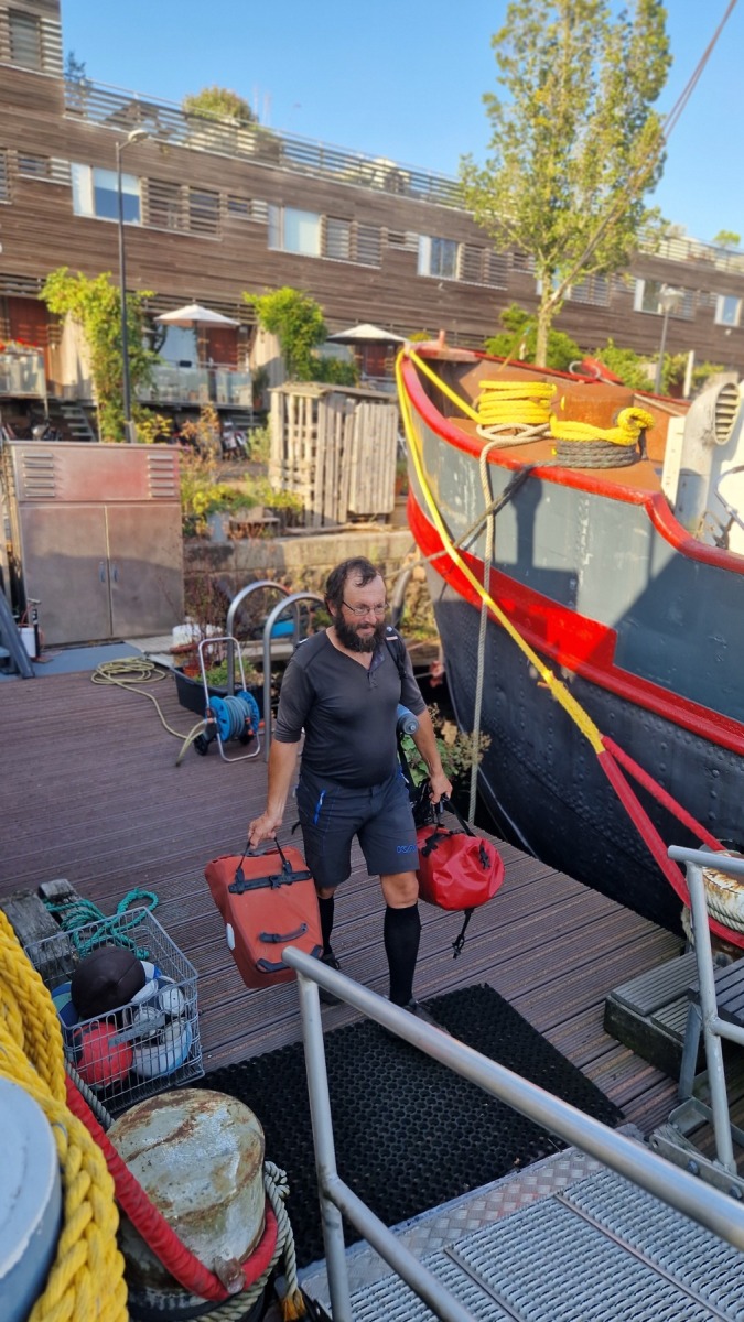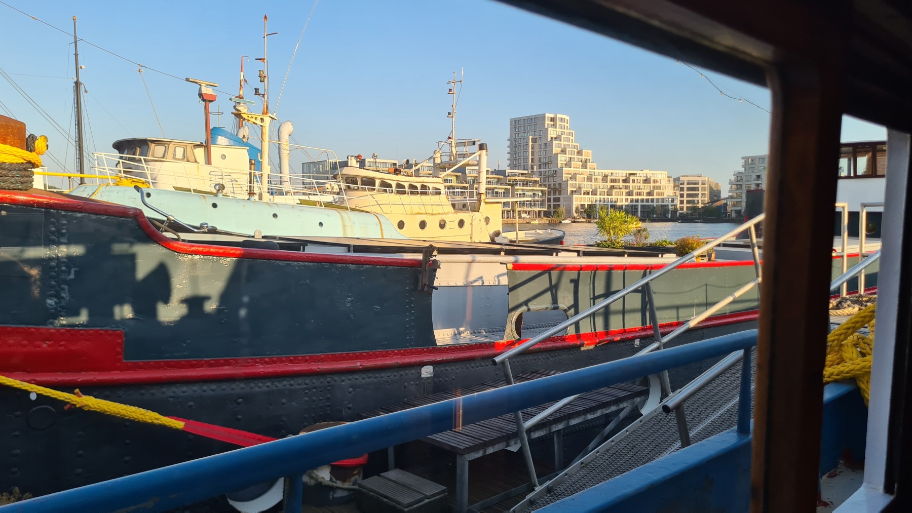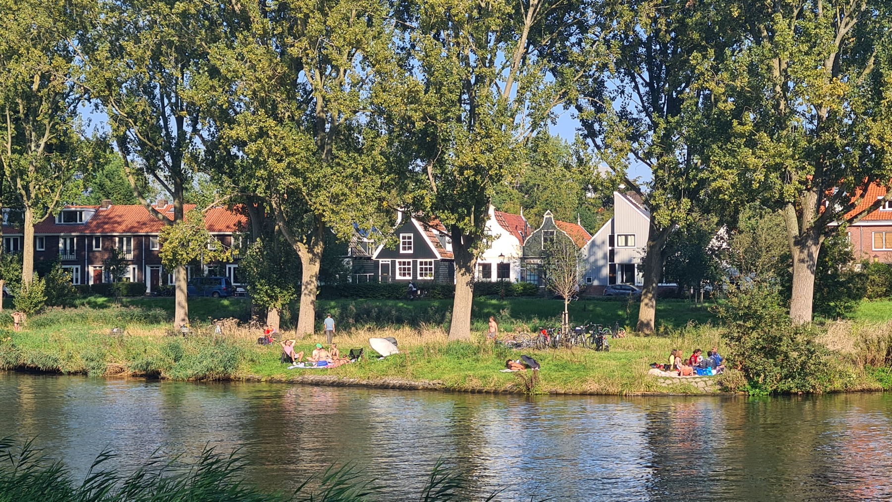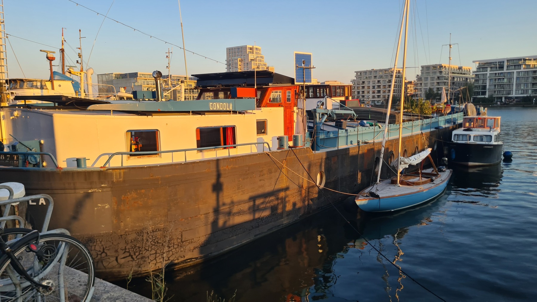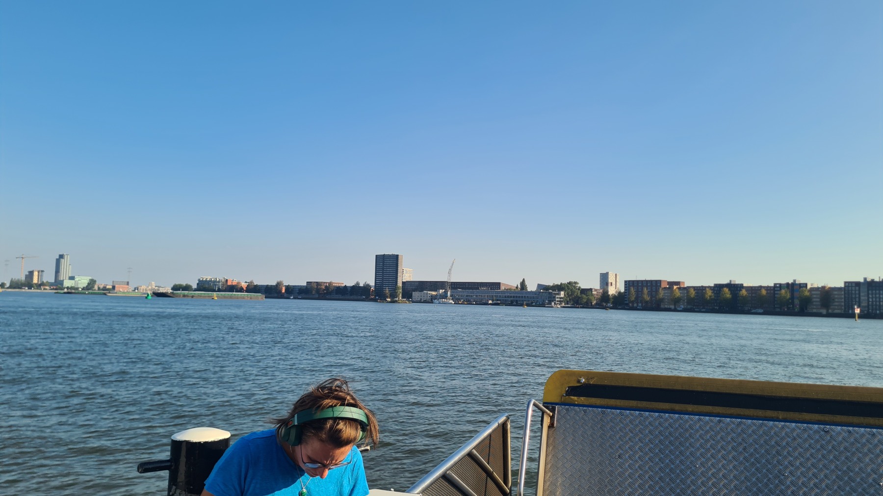 L’IJmeer et les canaux qui le relient à la mer du Nord ont freiné l’expansion de la ville, l’arrivée sur Amsterdam depuis le nord est très agréable et on roule en pleine campagne jusqu’à l’entrée de la ville. Des ferrys gratuits pour piétons et vélos tentent de désenclaver le nord d’Amsterdam et nous avons pris l’un d’entre eux pour arriver jusqu’à la péniche où nous habiterons pendant notre séjour.