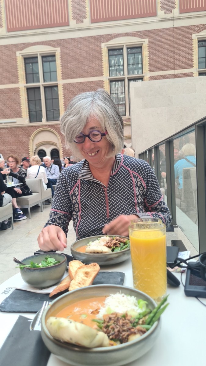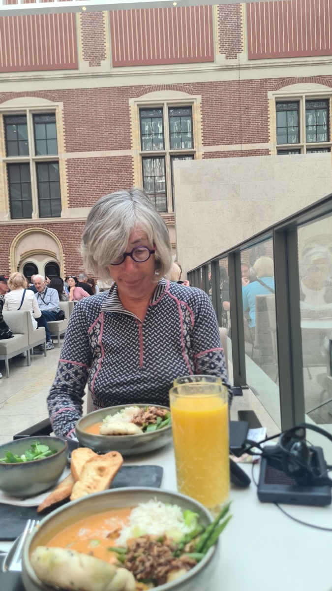 Ce matin nous avions réservé un créneau de visite à partir de neuf heures au Rijksmuseum. Nous avons pris le tram pour y aller. Nous n’avons pas vu le temps passer et nous ne sommes sortis du musée que pour la fermeture à 17h00 alors que nous n’étions arrivés qu’à la moitié du XIXème siècle… Nous n’avons pas pris beaucoup de photos : il aurait fallu tout photographier !