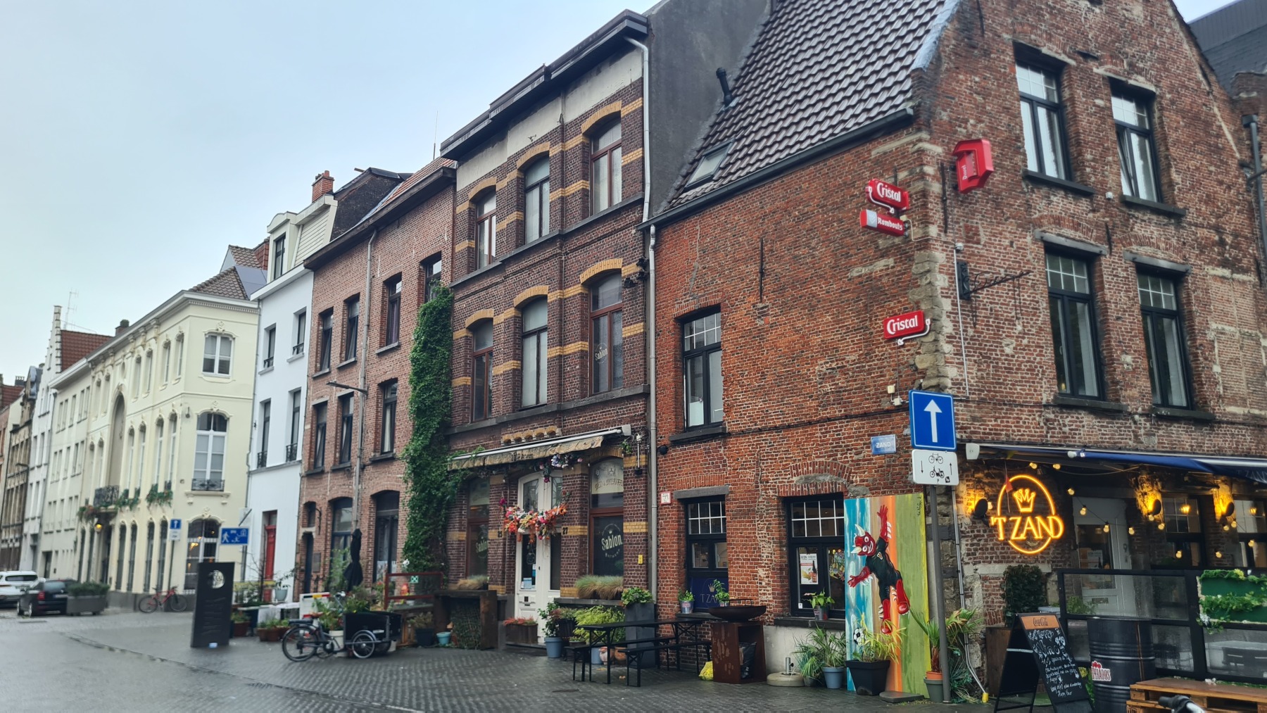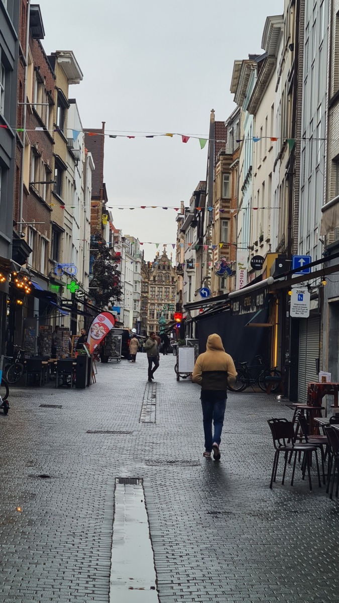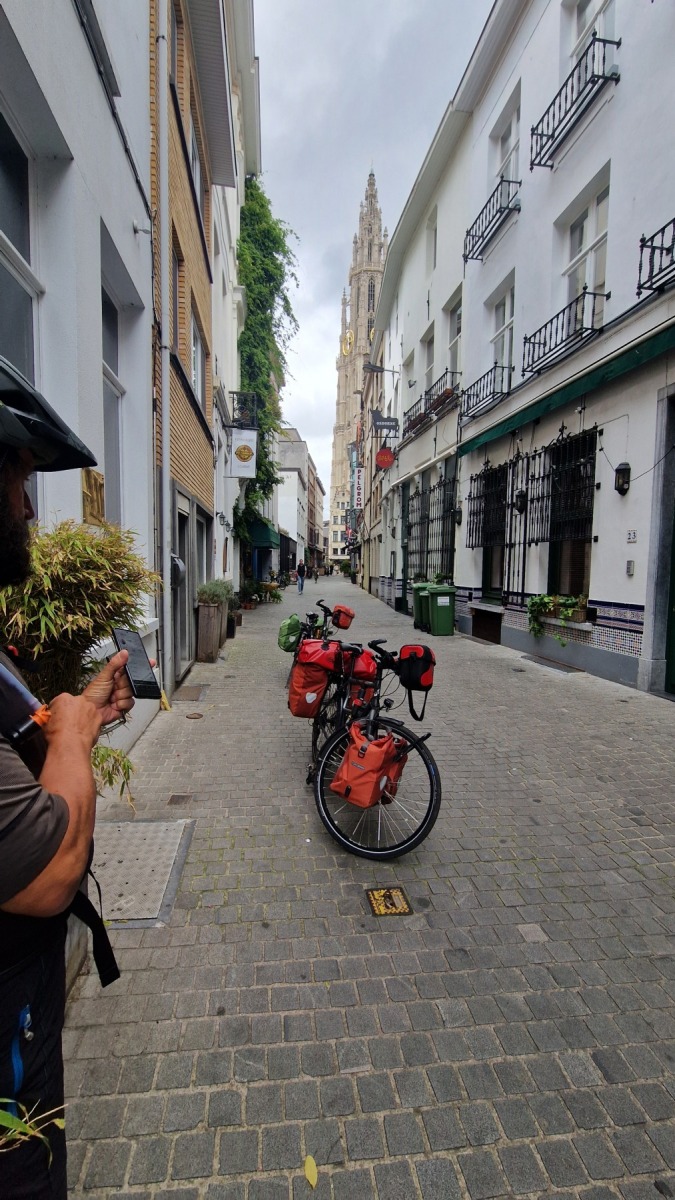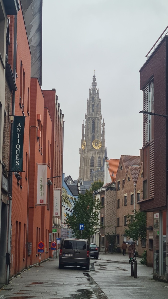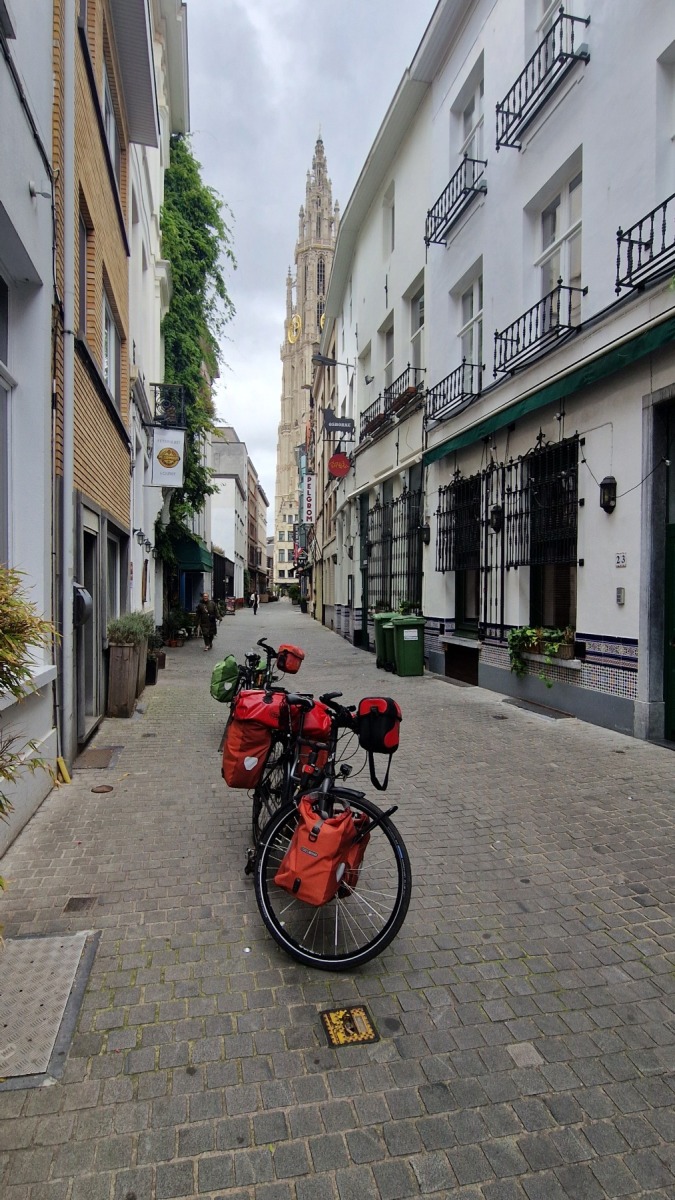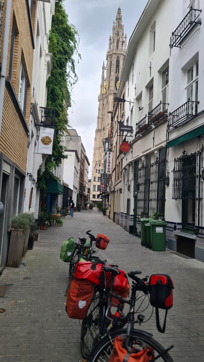 La vieille ville d’Anvers est très agréable, notre studio est à quelques pas de la cathédrale dans une rue qui s’appelle « rue des pèlerins », et il y a deux places au sec et en sécurité pour nos vélo, on ne pouvait pas mieux trouver !