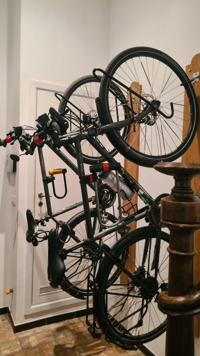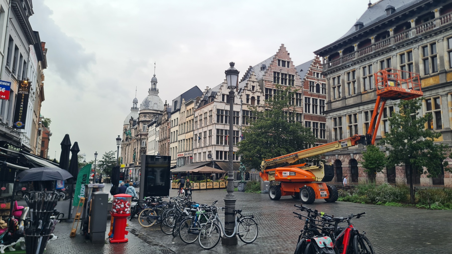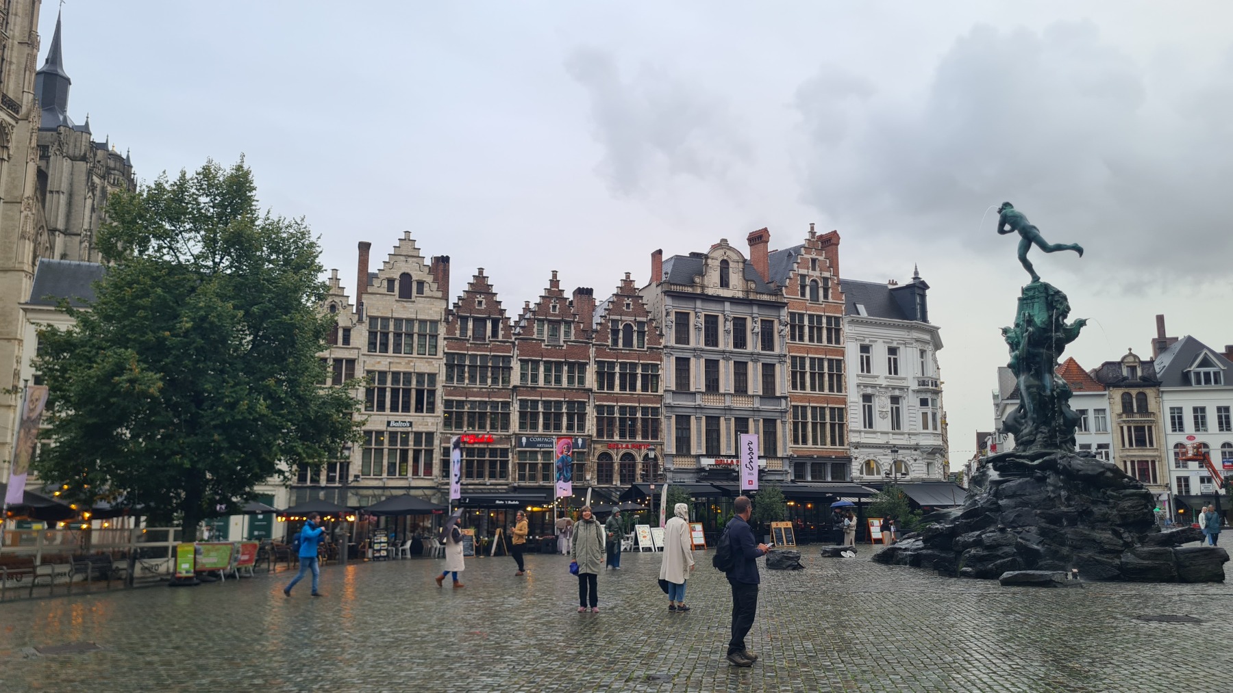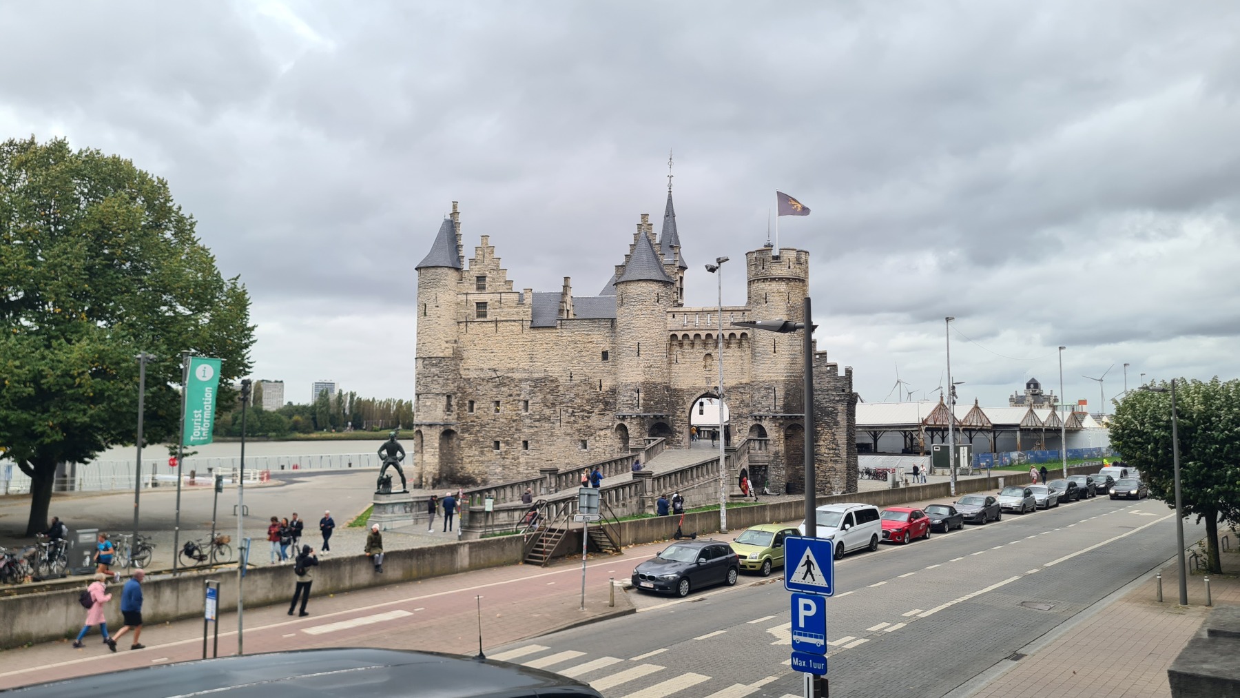 La vieille ville d’Anvers est très agréable, notre studio est à quelques pas de la cathédrale dans une rue qui s’appelle « rue des pèlerins », et il y a deux places au sec et en sécurité pour nos vélo, on ne pouvait pas mieux trouver !