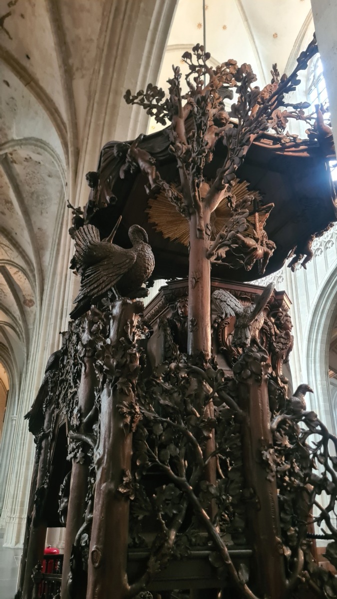 Ce matin nous sommes allés visiter la cathédrale dont l’intérieur est aussi impressionnant que la flèche puis le tunnel Sainte-Anne avant de rentrer déjeuner chez nous.