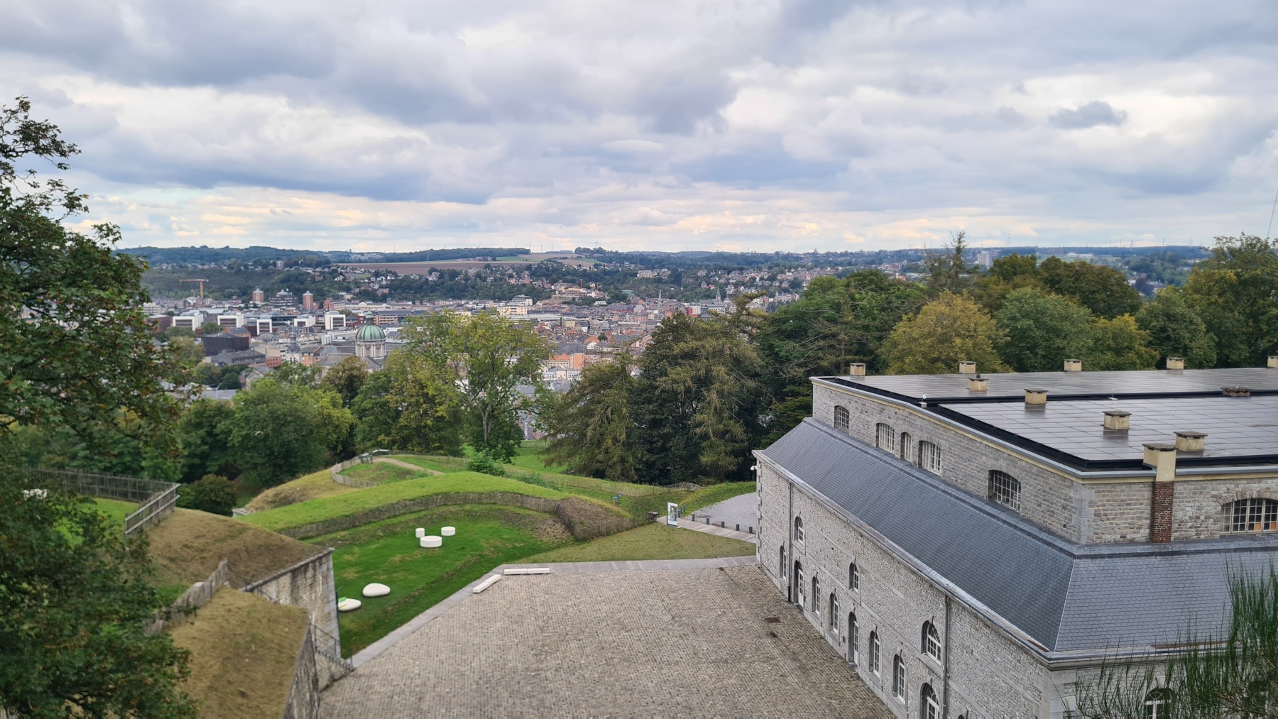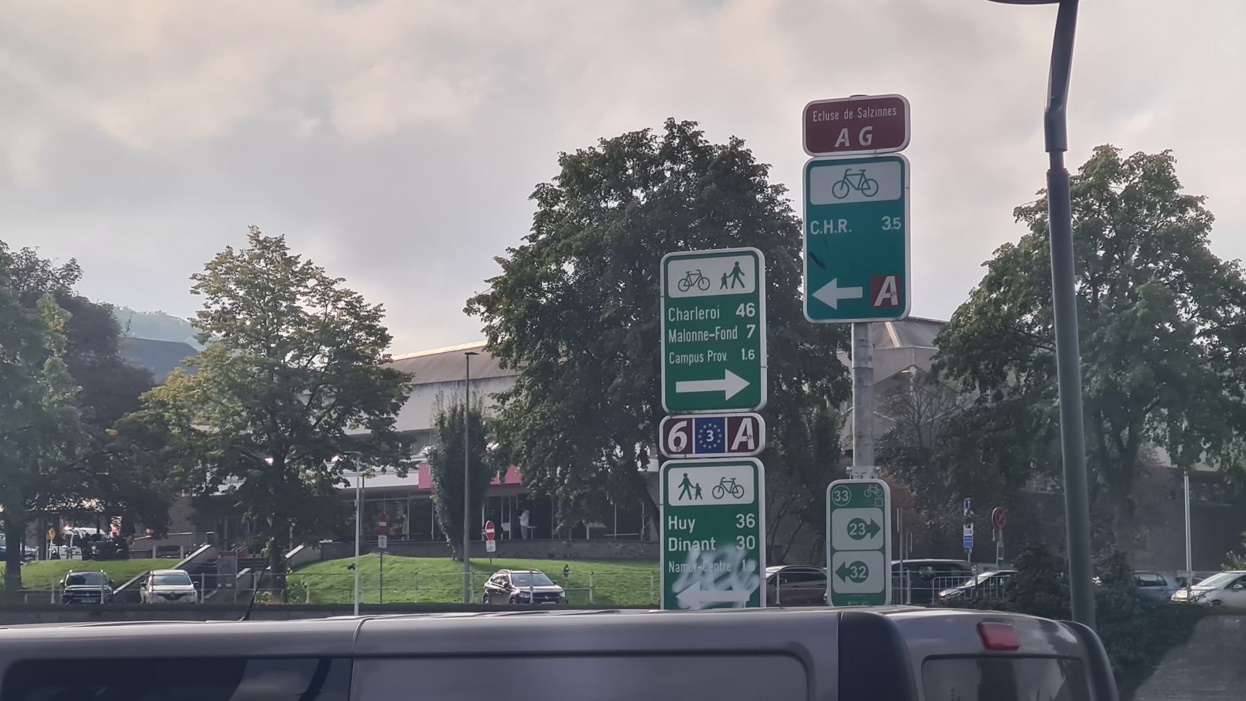 Petite étape sur Eurovelo 5 pour rejoindre Namur où nous avons déjeuné avant de garer nos vélos à l’hôtel et de visiter la citadelle. En début d’étape nous sommes passés tout près du centre géographique de la Belgique.