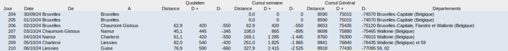 Cinq jours de vélos et deux jours de repos à Bruxelles (en vert) pour cette trentième semaine qui nous ramène en France après avoir traversé quatorze pays (et quinze frontières).