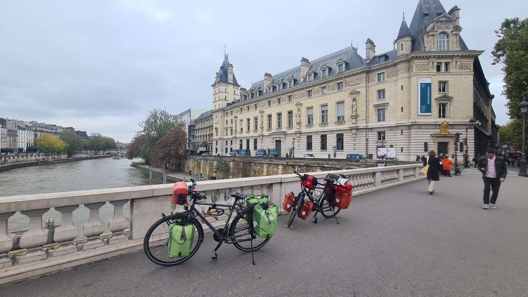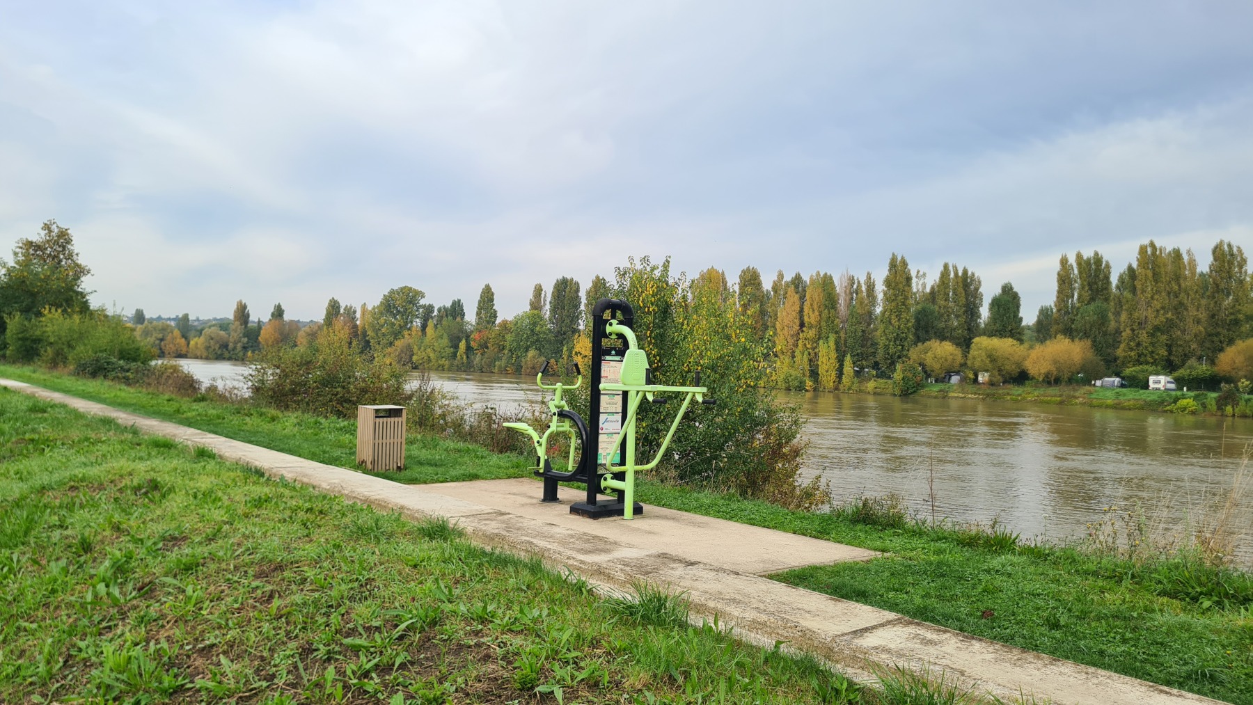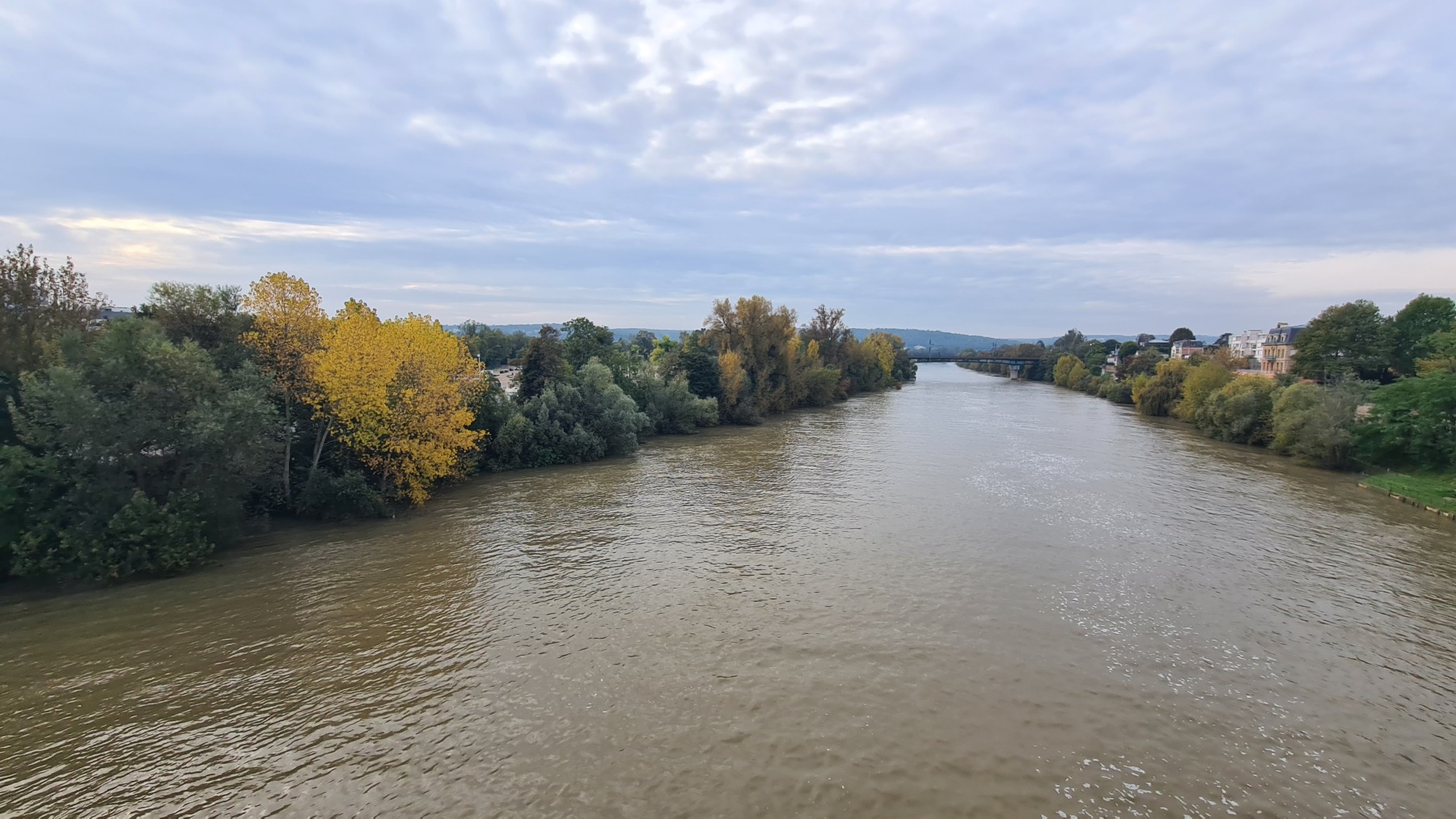 Nous avons quitté Marie-Laure, Gabriel et Étienne pour reprendre notre périple et nous avons rejoint la Seine à vélo à Herblay. Nous avions un assez mauvais souvenir de la Seine à vélo pour l’avoir suivie l’année dernière entre Lillebonne et le Havre où l’itinéraire qui suit une nationale empruntée par des camions sans aucun aménagement spécifique nous avait semblé suicidaire. Ce n’est pas le cas de la section que nous avons emprunté ce matin qui était très agréable.