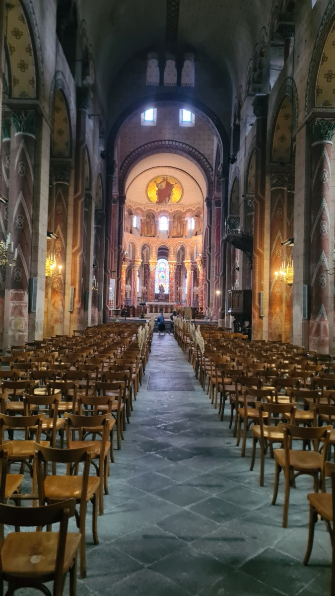 Cette église est étonnante. L’extérieur fait penser au style byzantin. L’intérieur serait plutôt décoré par un Viollet-Le-Duc …