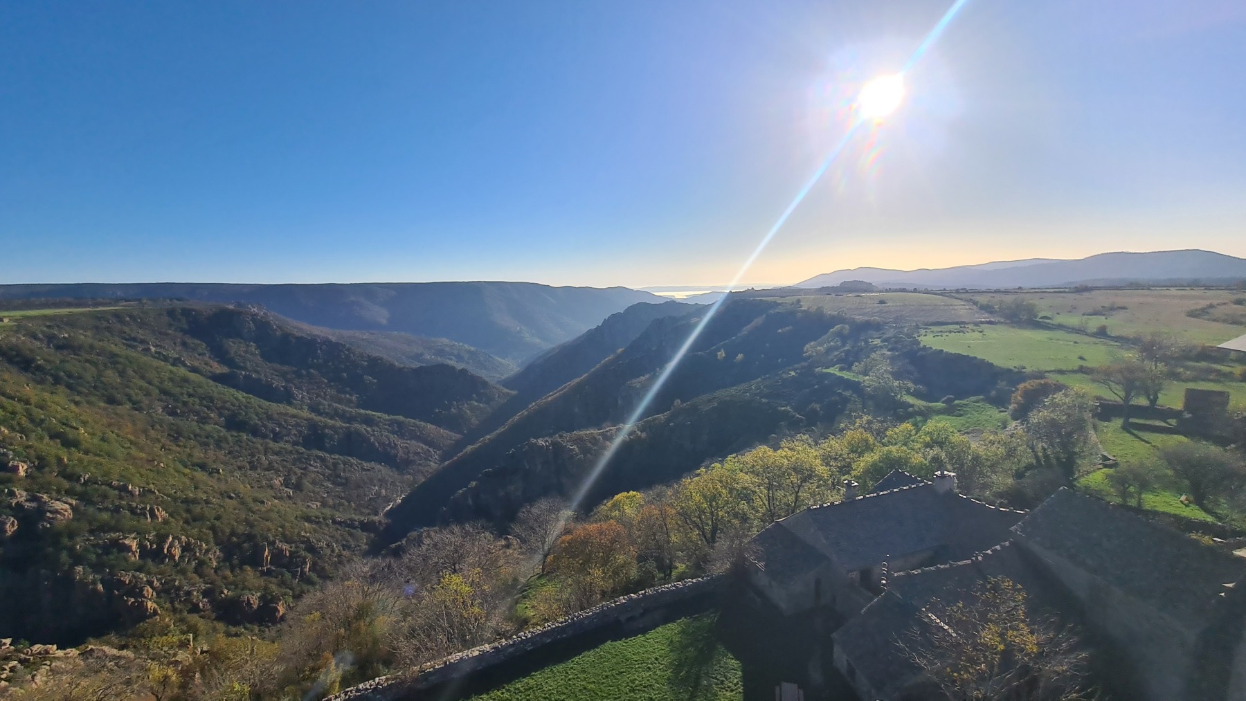 Ce matin je suis monté sur la tour du château de La Garde-Guérin où il y avait foule hier soir et personne à 9h00 du matin. La vue sur le village et les massifs du mont Lozère et du Tanargue sont superbes. D’après PeakFinder j’aurais même pu voir le Ventoux et le Mourre Nègre si le temps avait été plus clair.