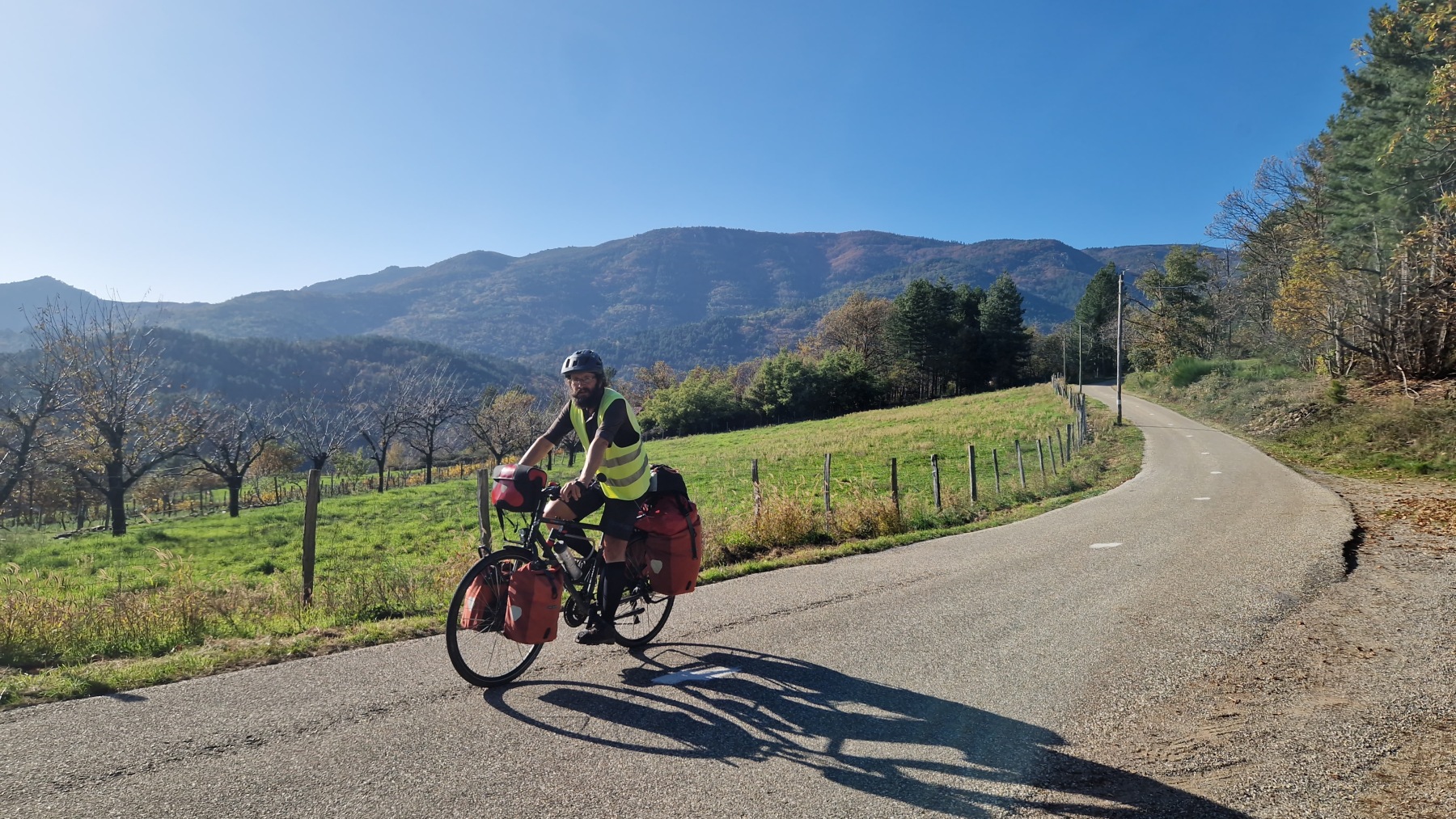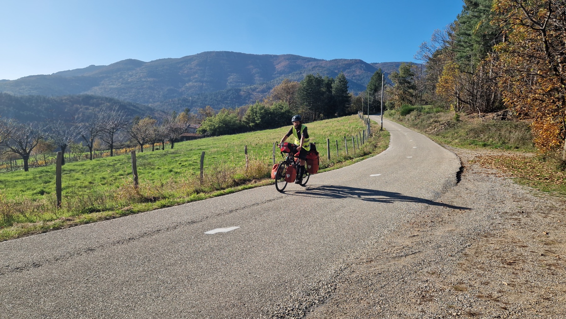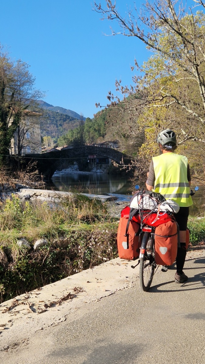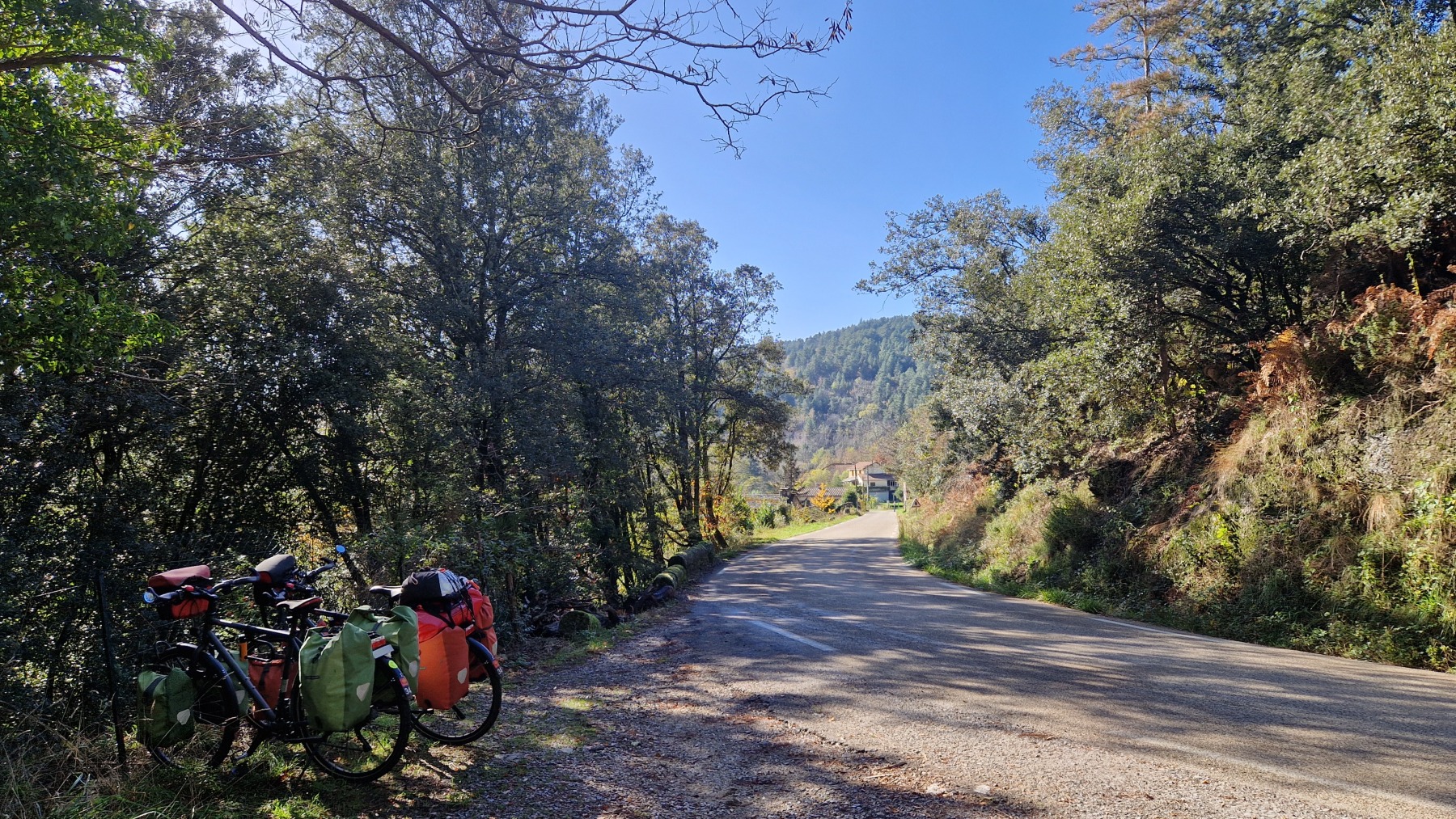 L’étape jusqu’à Chamborigaud où nous dormons de soir étant courte nous l’avons rallongée pour éviter la D906 (ex RN 106) en prenant de petites routes (et un peu plus de dénivelé). Le temps continue à être chaud et ensoleillé et c’est un plaisir de parcourir les petites routes des Cévennes en vélo.