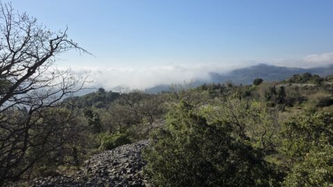 Ce soir nous dormons dans un gîte avec une vue superbe sur le massif du Caroux.