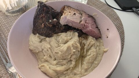 Les agriculteurs auxquels appartient le gîte nous ont apporté deux belles parts d’aligot pour notre dîner.