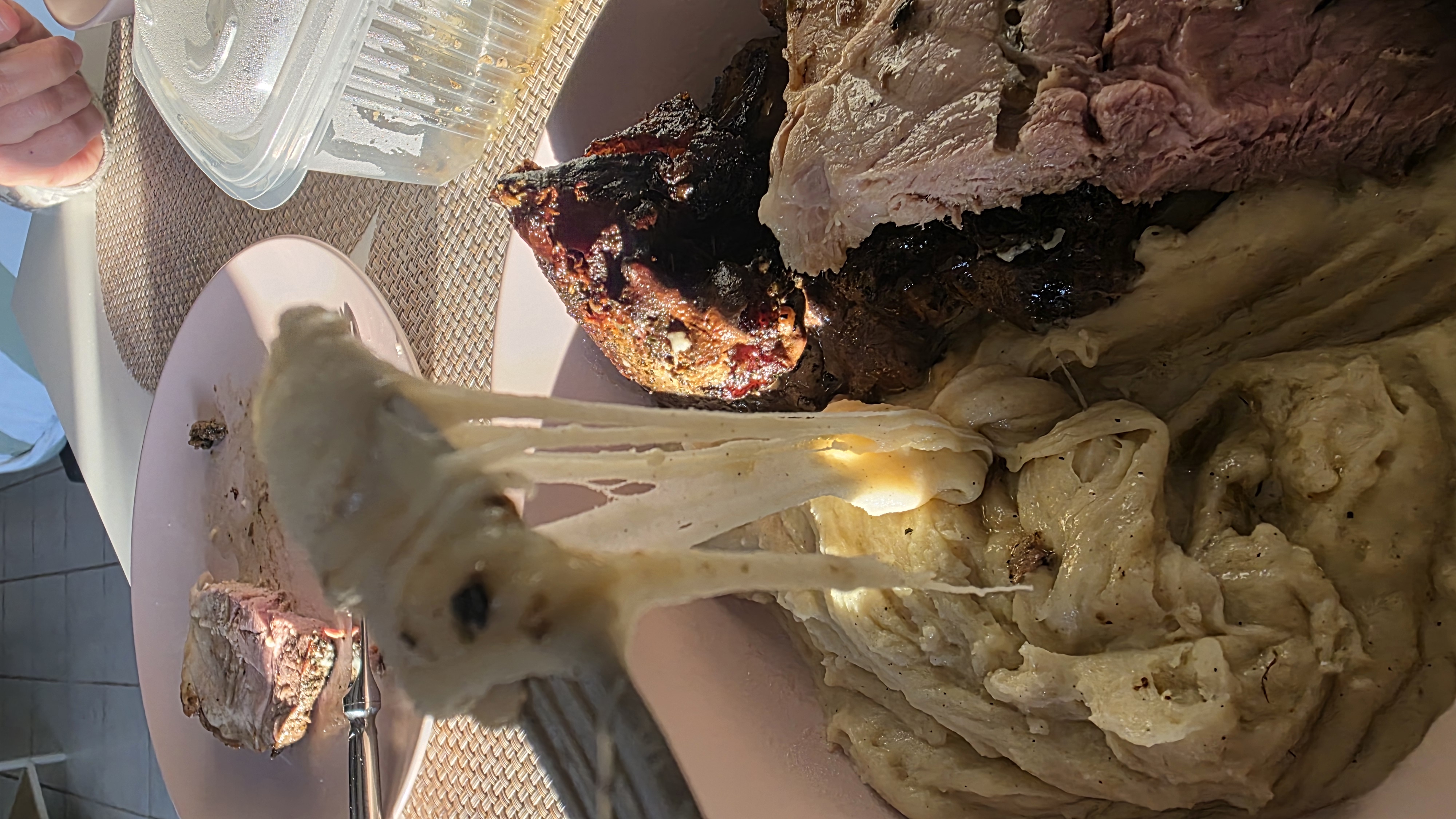 Les agriculteurs auxquels appartient le gîte nous ont apporté deux belles parts d’aligot pour notre dîner.