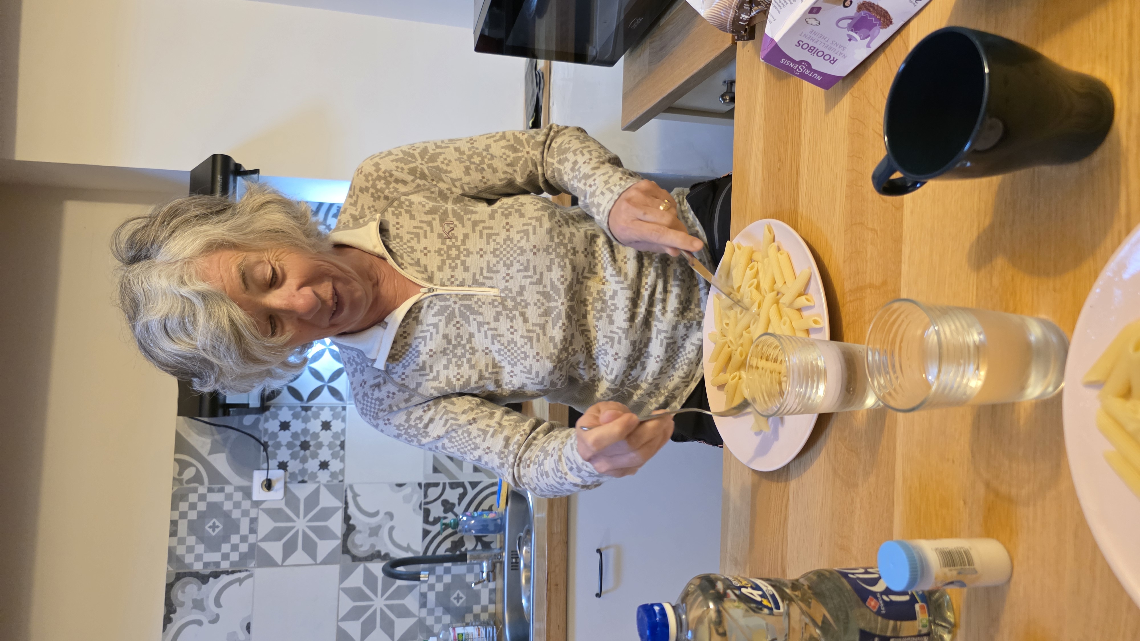 Hier soir nous n’avons pas voulu retourner au village pour faire des courses et nous avons apprécié les pâtes mises à disposition dans notre gite. Et comme nous n’avions pas voulu vider le paquet et que nous avions encore faim nous avons complété par de la semoule de couscous.