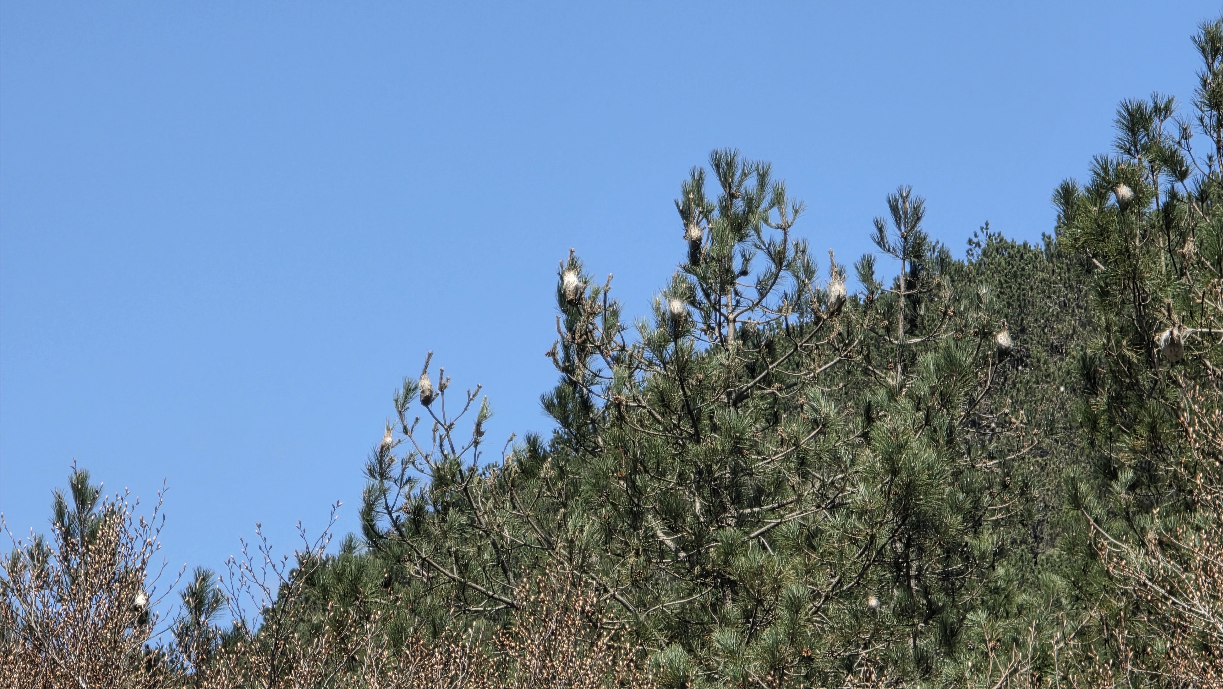Nous avons également vu beaucoup de chenilles processionnaires que nous avons essayé d’écraser consciencieusement…