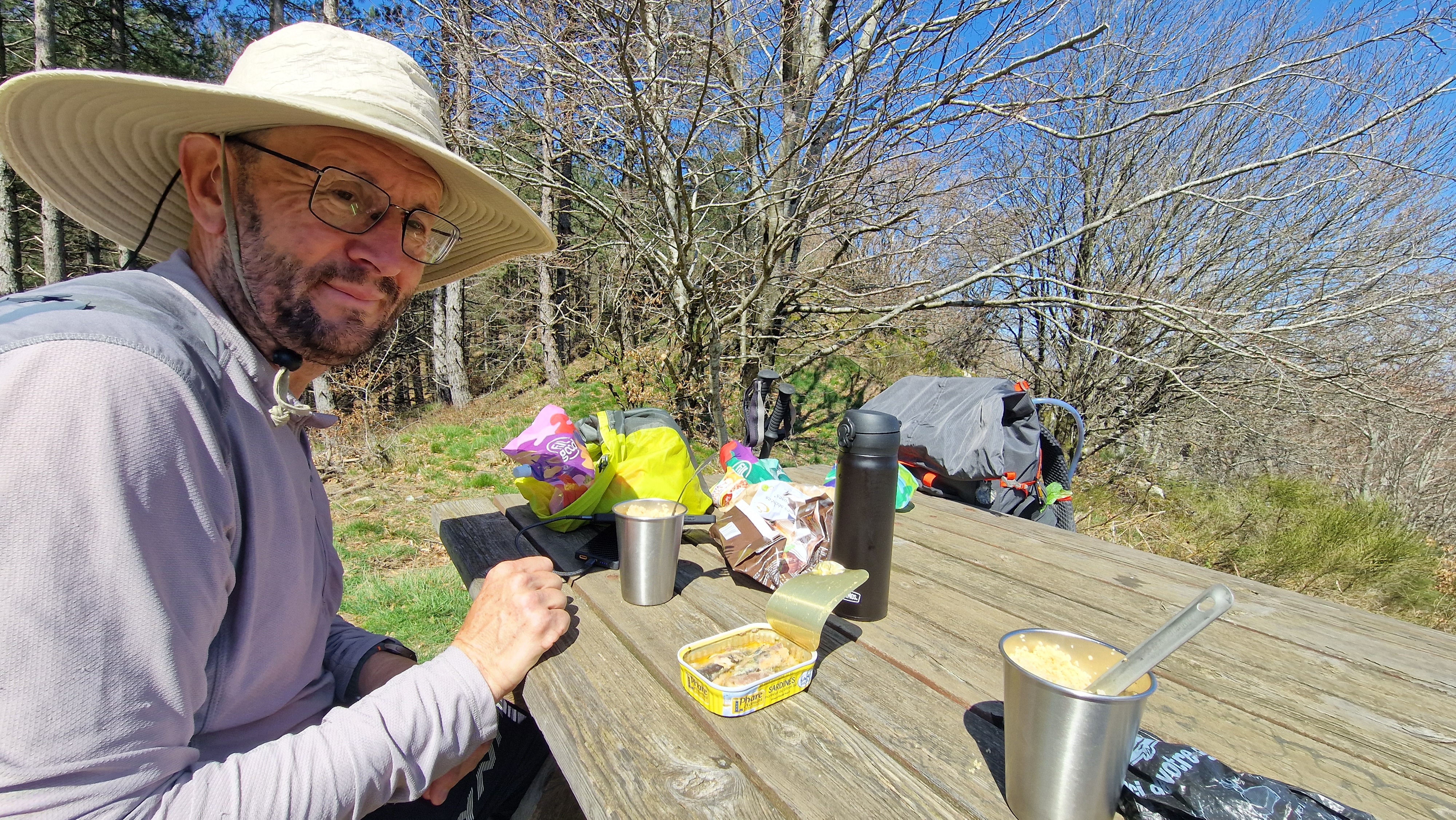 Nous avons sorti les provisions de secours : une boîte et sardines et de la semoule de couscous (encore !) que nous avons « cuit » avec l’eau chaude de notre thermos (modèle ultra-léger).