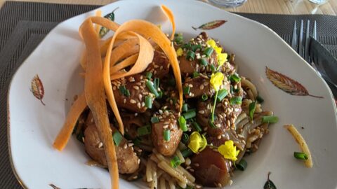 Nous n’avons pas trouvé d’endroit sec pour nous arrêter et, comme l’étape était relativement courte, nous n’avons pas fait de pause et nous avons déjeuné dans un restaurant à l’entrée de Castres.