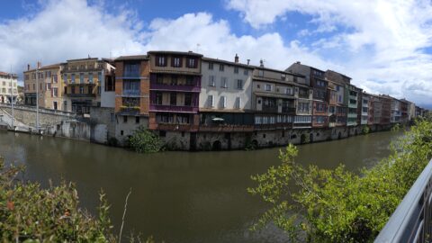Castres marque la fin de nos étapes « de montagne » avant les Pyrénées et la vallée d’Aspe : nous arrivons au piémont de la Montagne Noire et le terrain sera beaucoup plus plat d’ici à Oloron Sainte-Marie dans le Béarn.