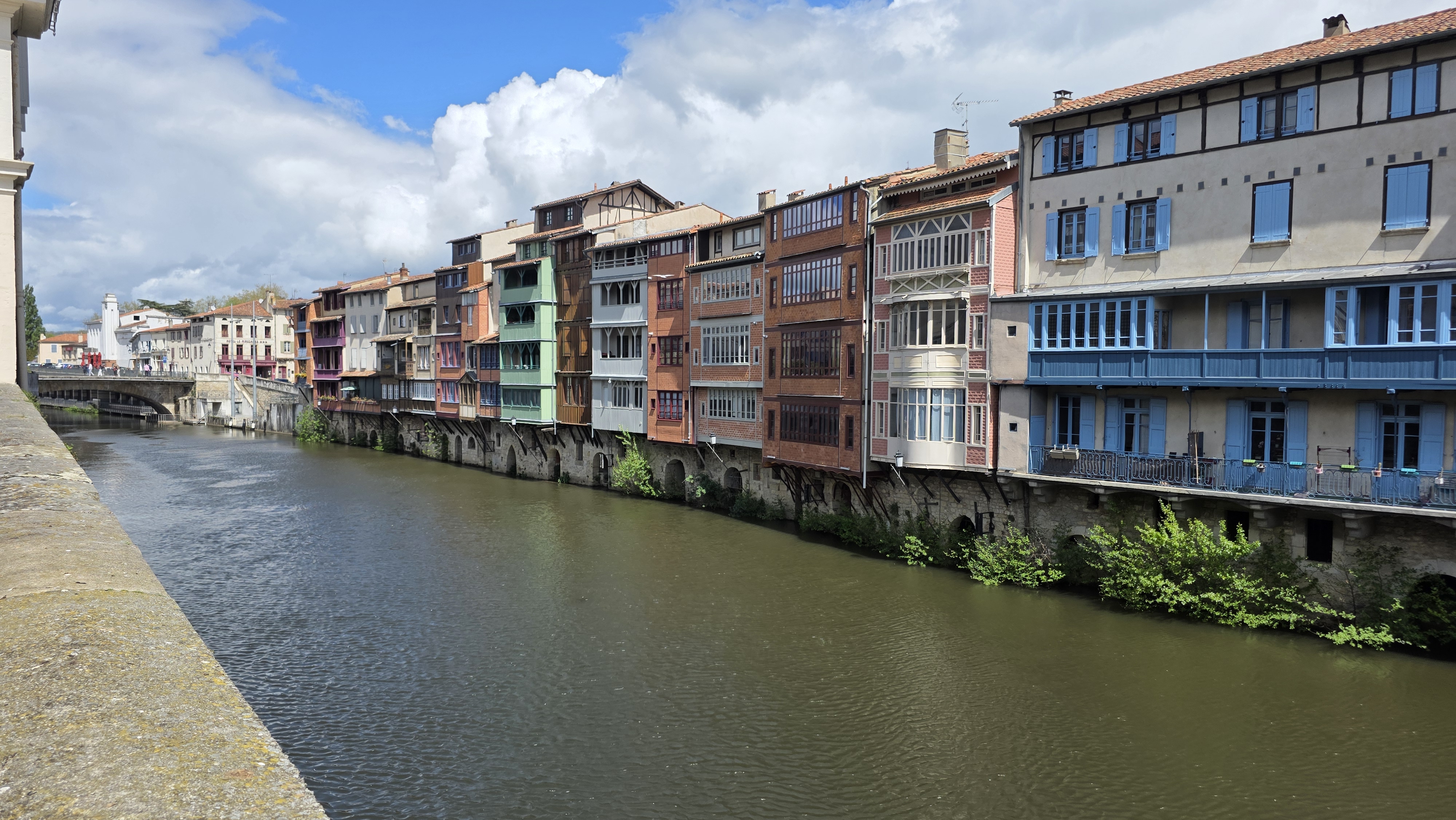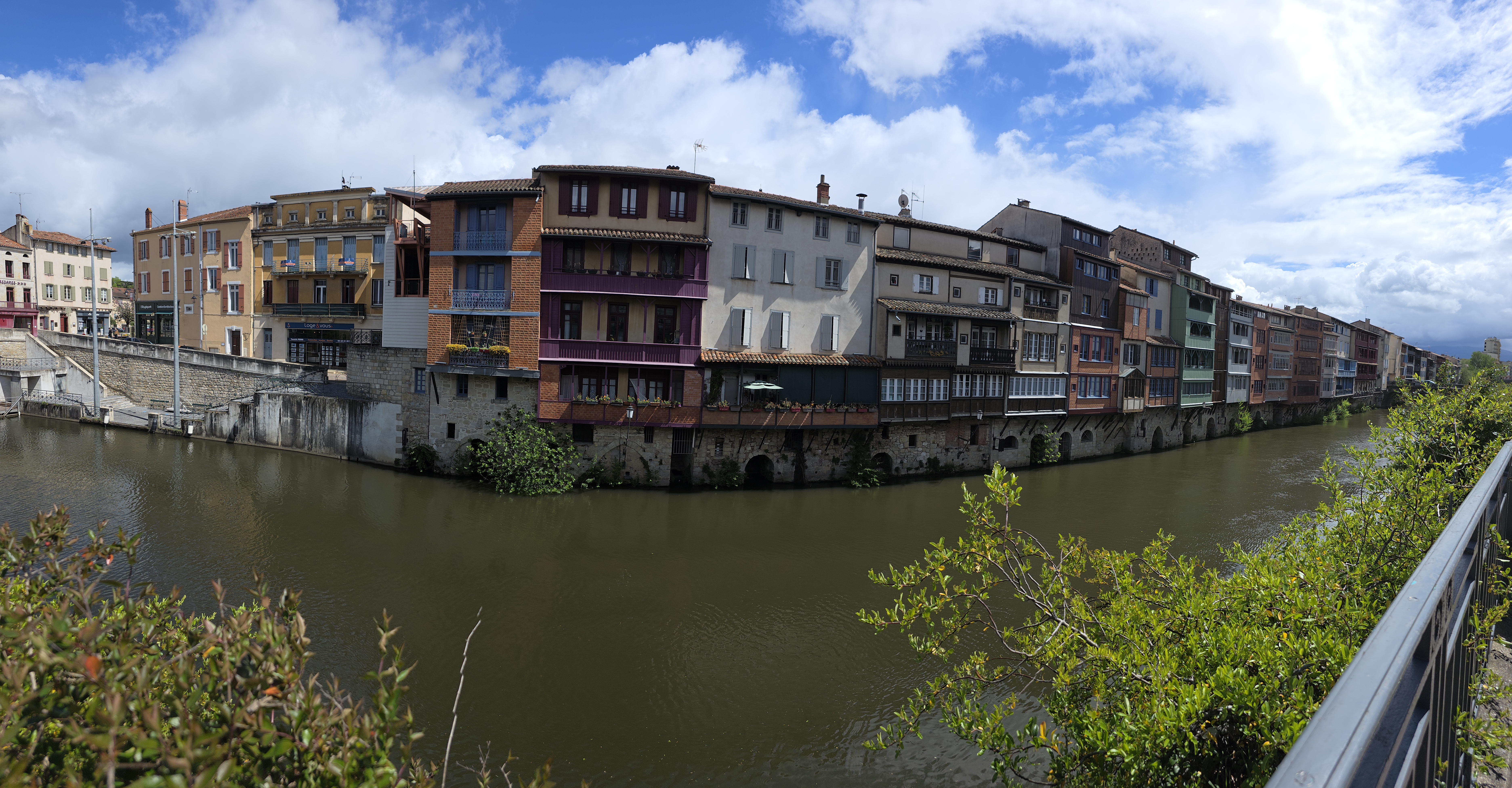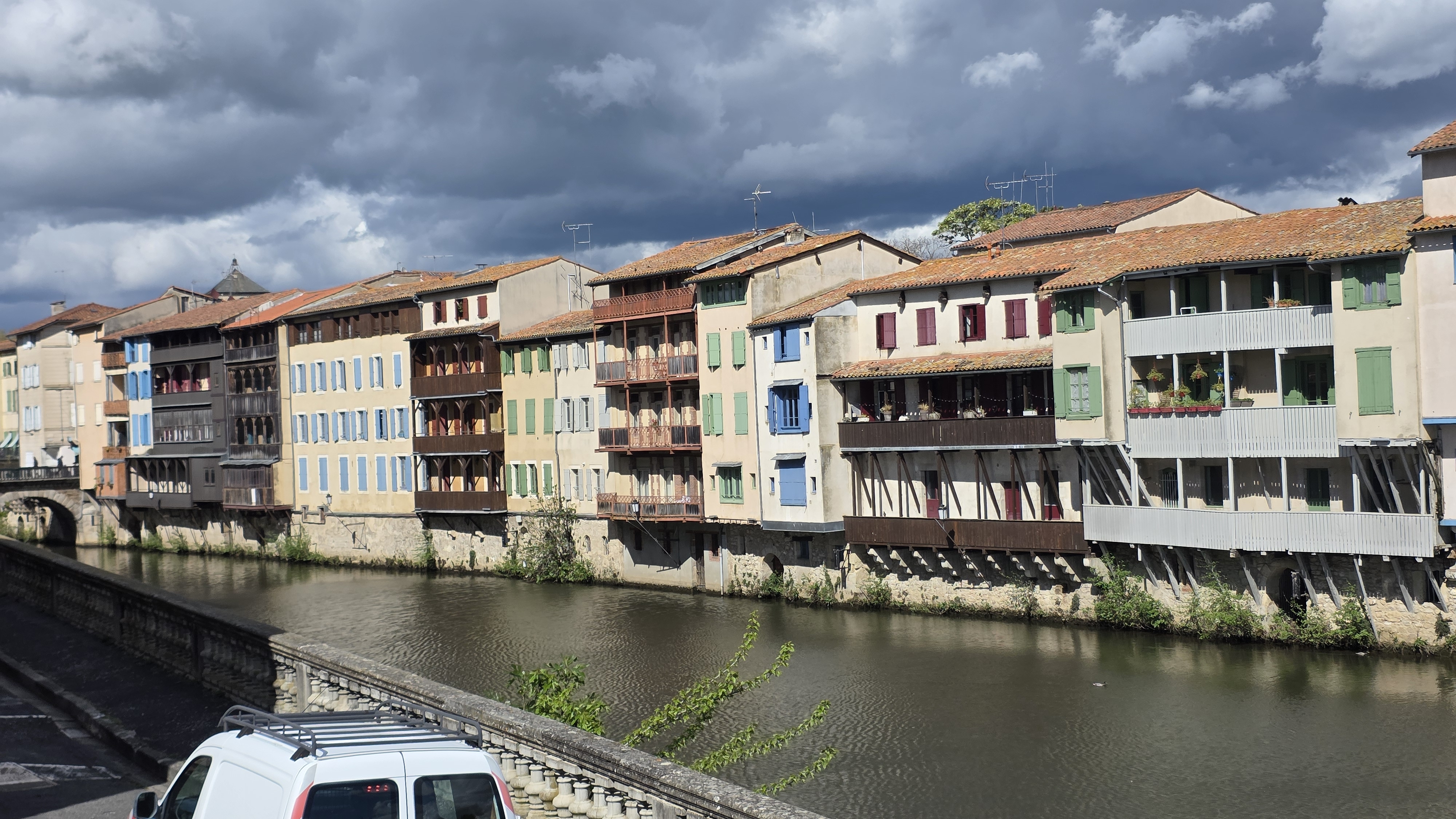 Castres marque la fin de nos étapes « de montagne » avant les Pyrénées et la vallée d’Aspe : nous arrivons au piémont de la Montagne Noire et le terrain sera beaucoup plus plat d’ici à Oloron Sainte-Marie dans le Béarn.