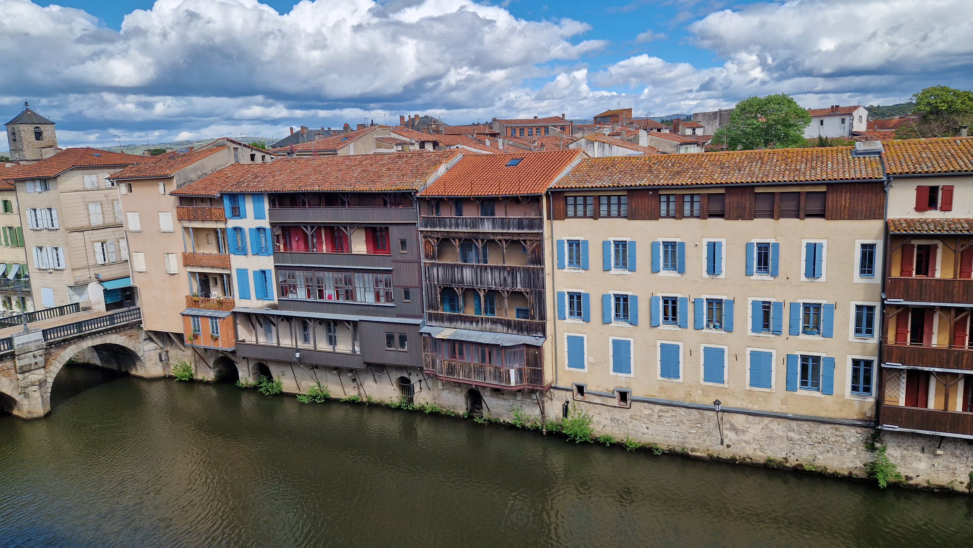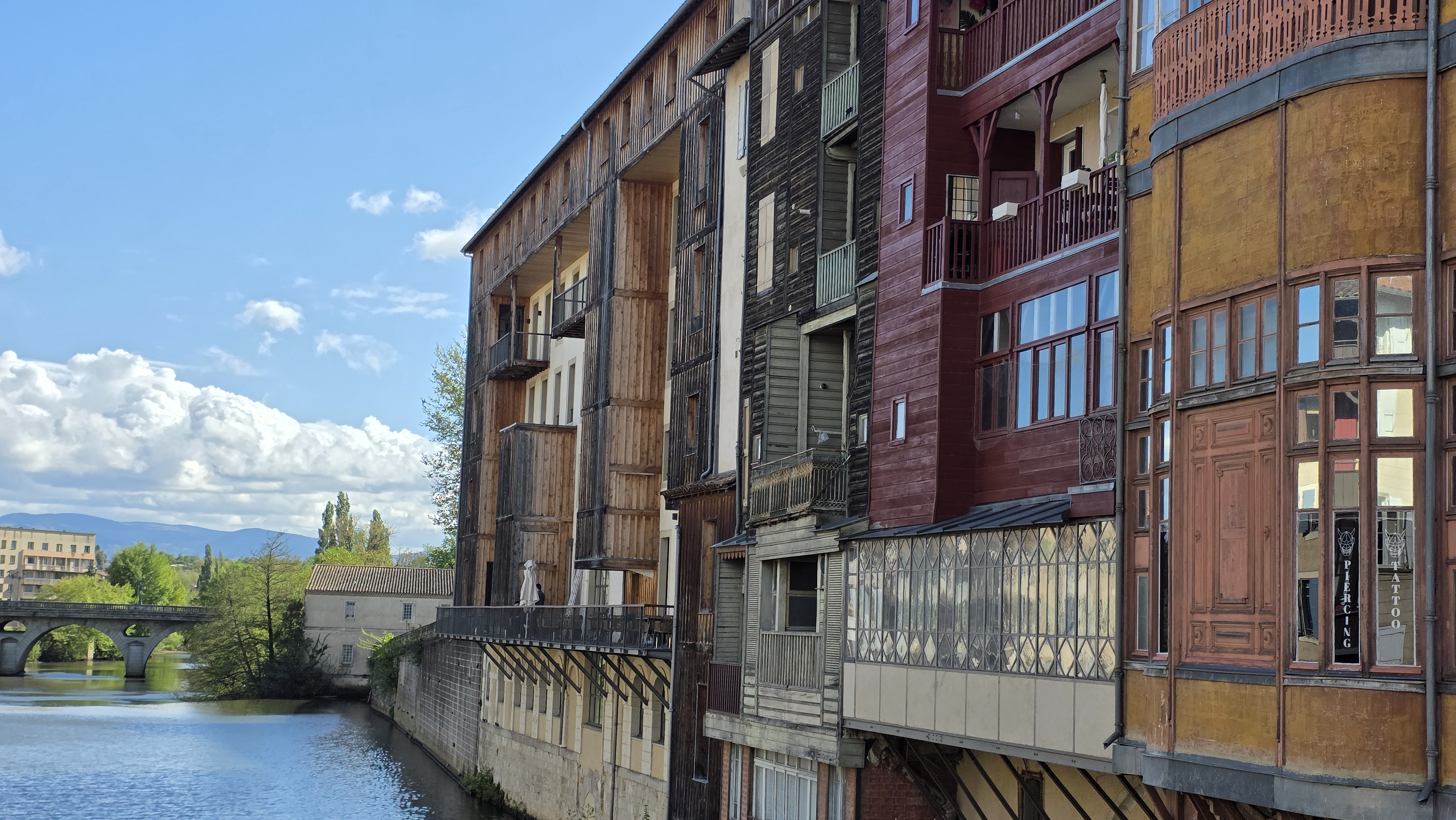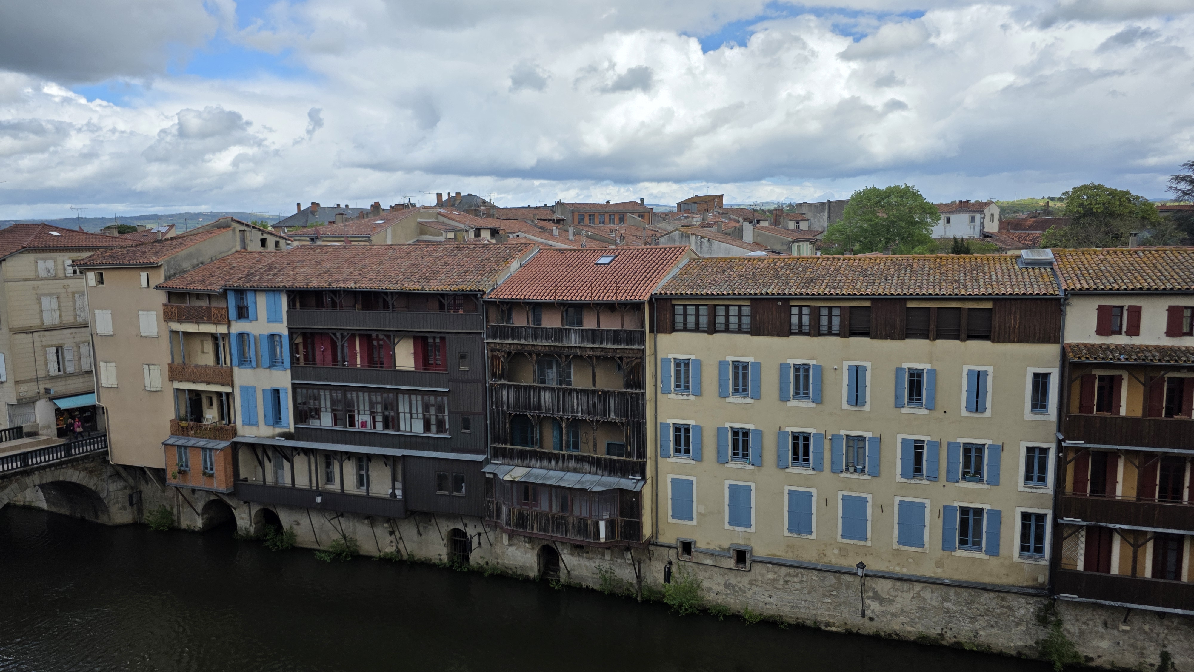 Castres marque la fin de nos étapes « de montagne » avant les Pyrénées et la vallée d’Aspe : nous arrivons au piémont de la Montagne Noire et le terrain sera beaucoup plus plat d’ici à Oloron Sainte-Marie dans le Béarn.