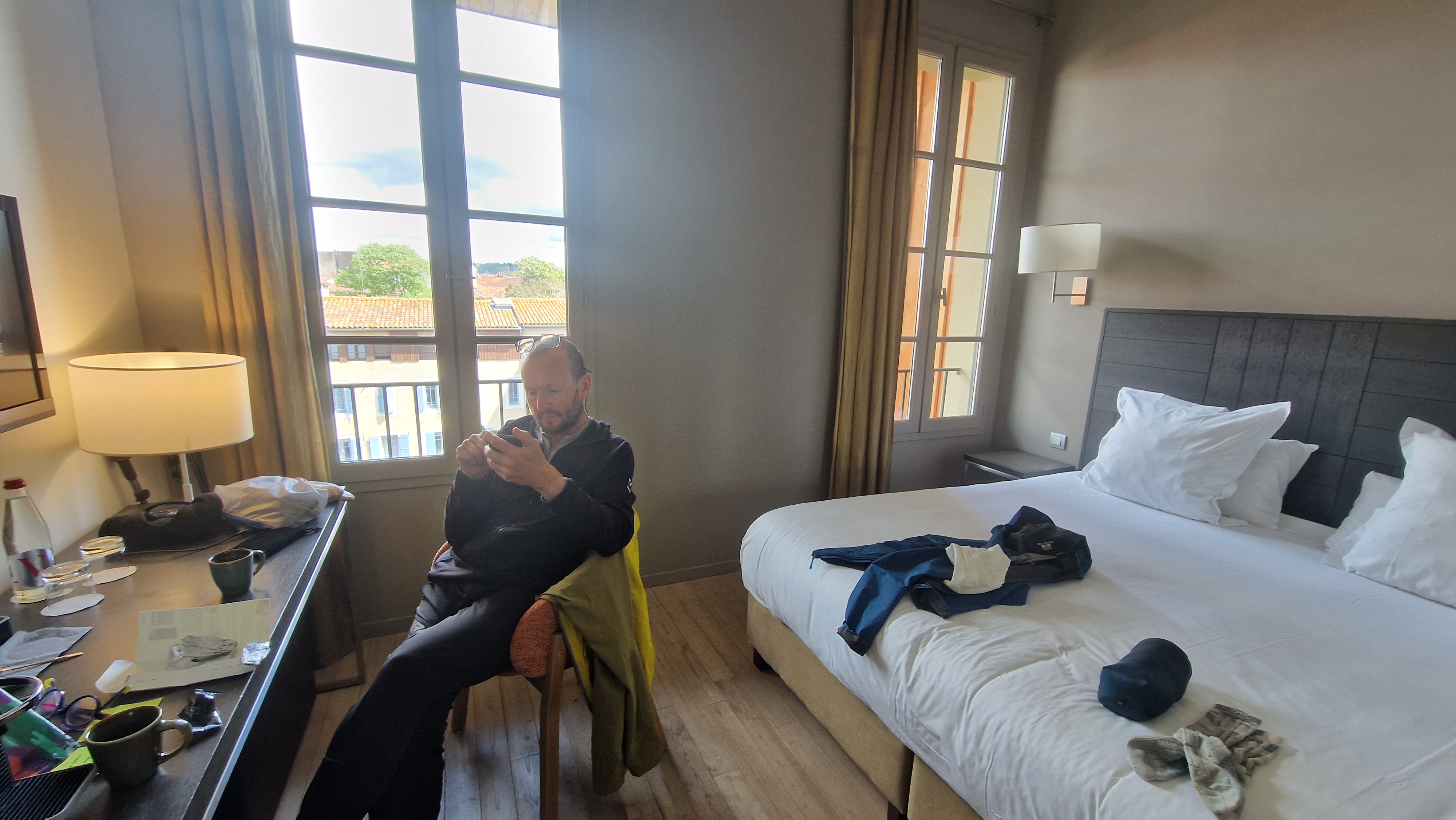 Pour célébrer dignement la fin de notre deuxième semaine nous dormons au Grand Hôtel de Castres où nous avons une superbe vue sur l’Agout.