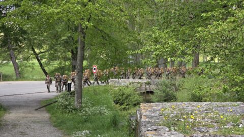 Peu avant le seuil nous avons pique-niqué près des anciennes minoteries de Naurouze et nous avons eu la surprise de voir un bataillon de légionnaires s’engager sur la voie verte de la Rigole de la Plaine.