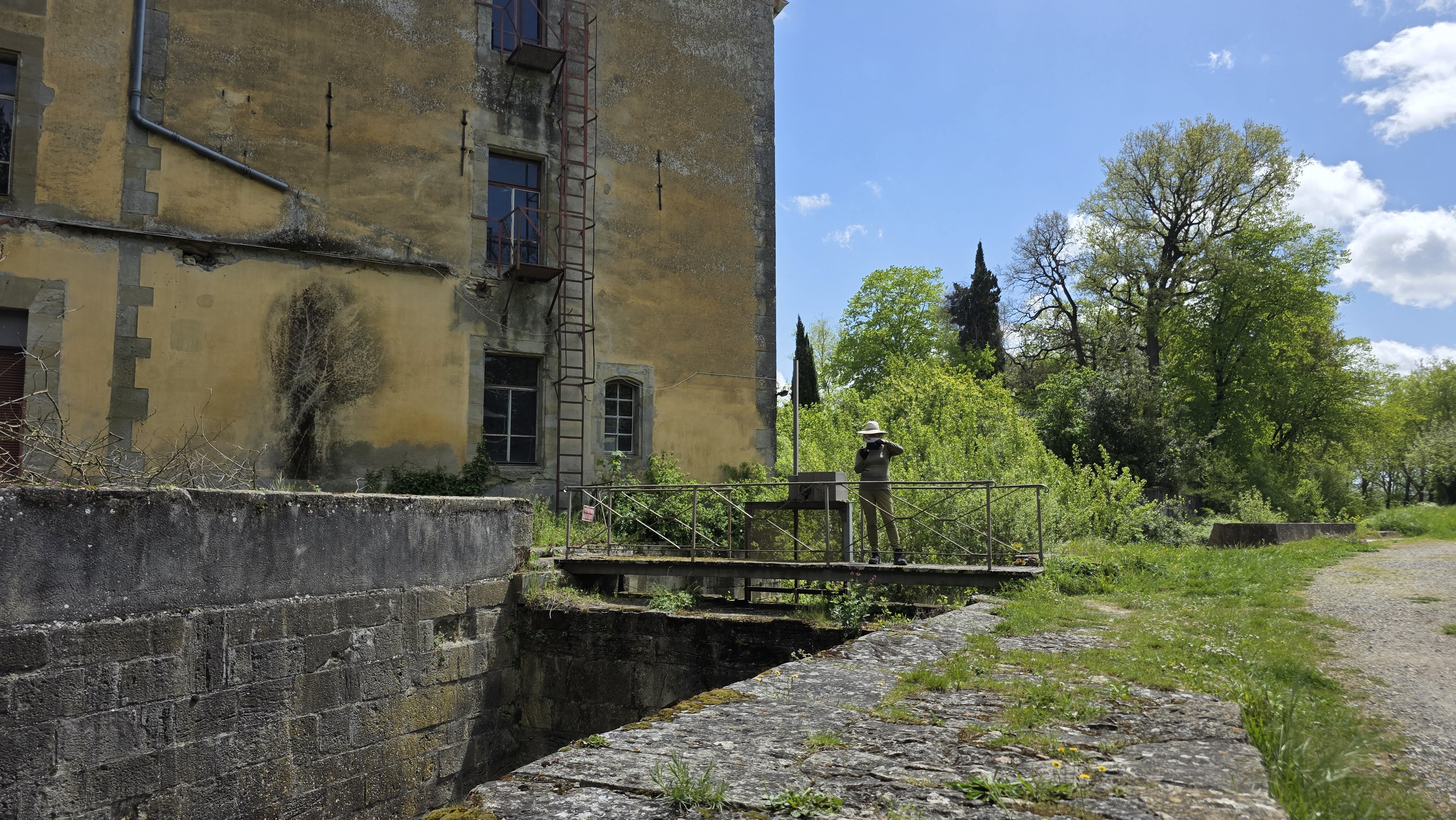 Peu avant le seuil nous avons pique-niqué près des anciennes minoteries de Naurouze et nous avons eu la surprise de voir un bataillon de légionnaires s’engager sur la voie verte de la Rigole de la Plaine.
