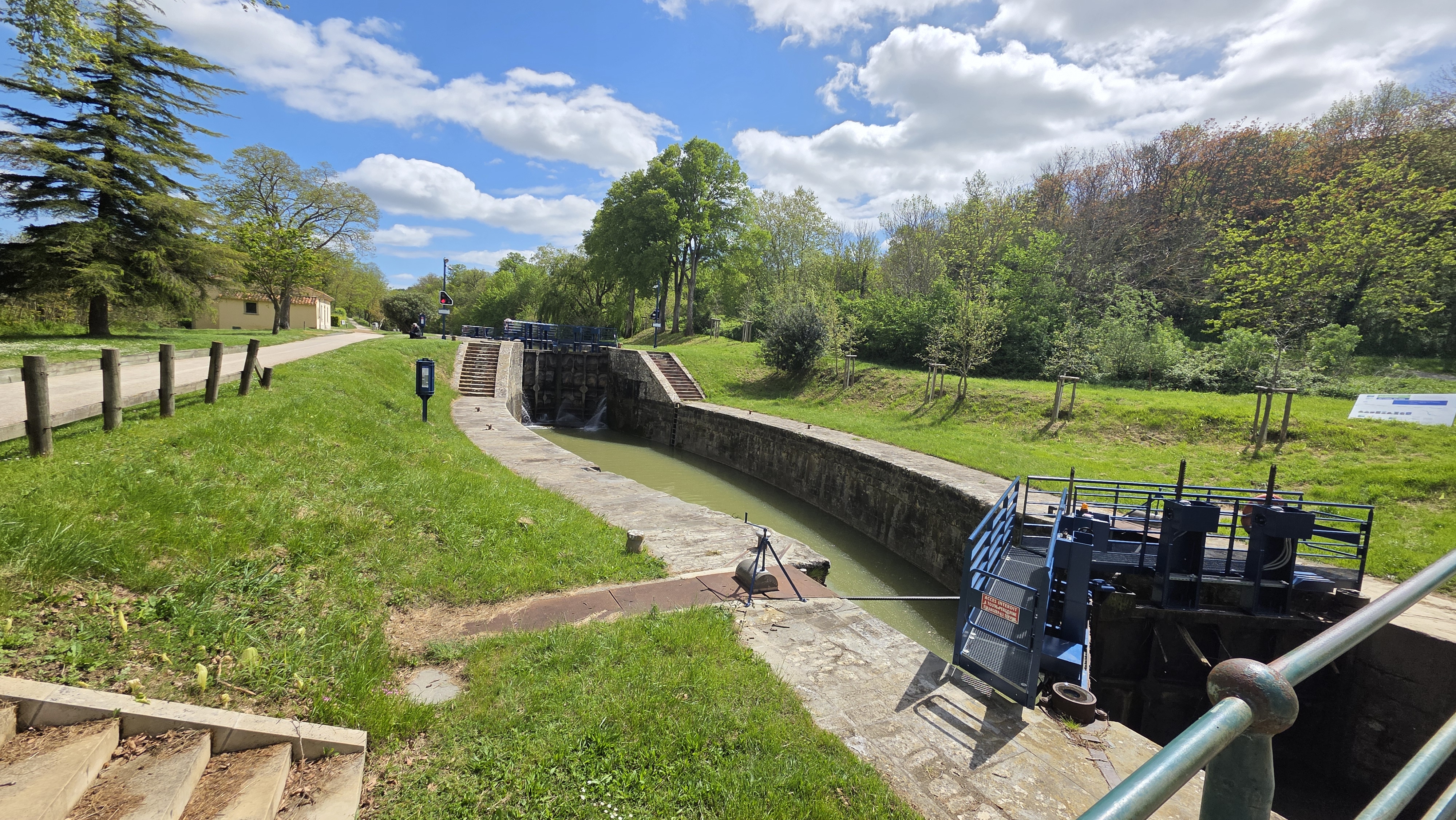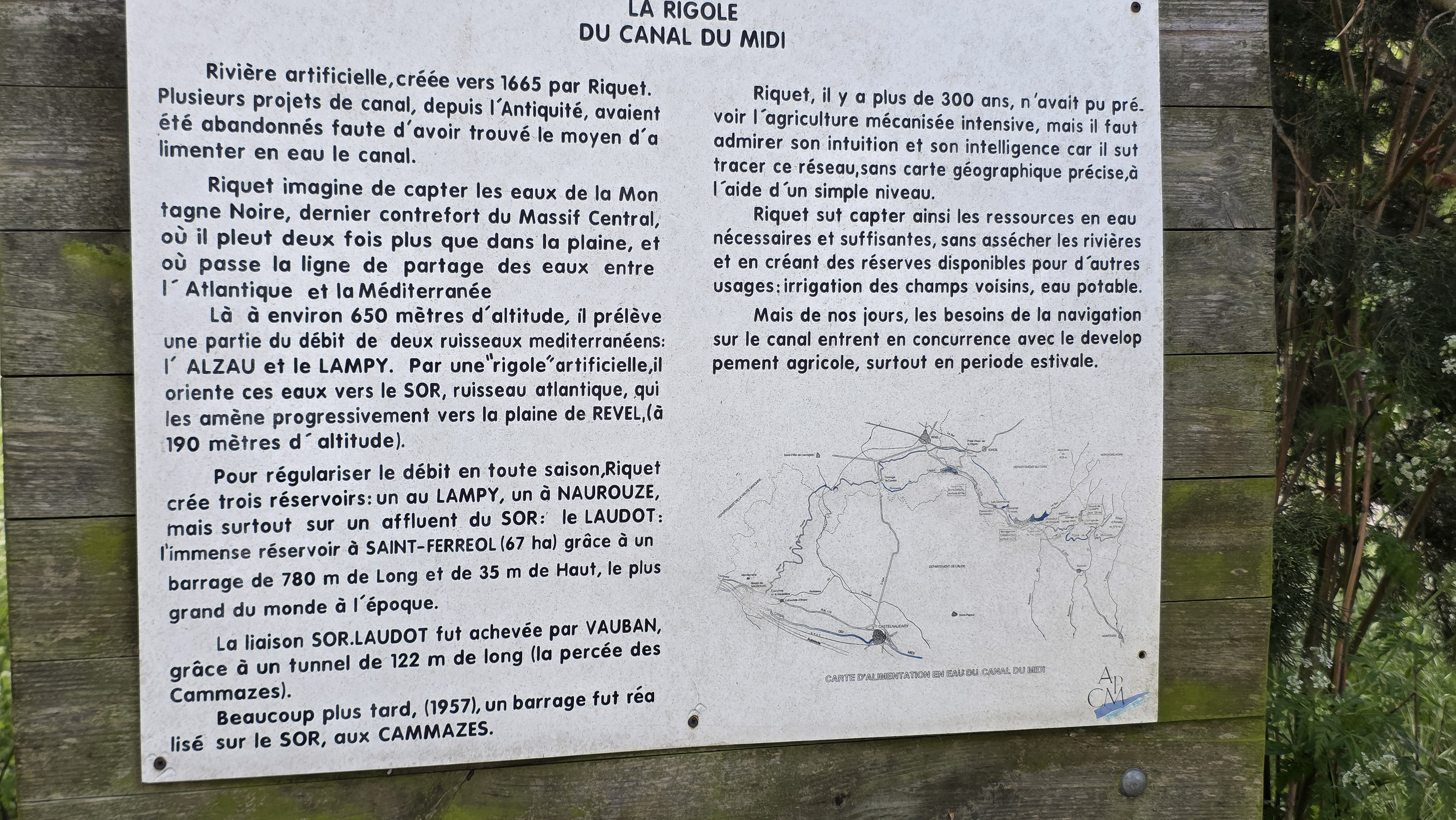 Nous avons rejoint la Rigole de la Plaine en passant par le beau village de Montmaur et nous l’avons suivie jusqu’au seuil de Naurouze où elle alimente le Canal du Midi.