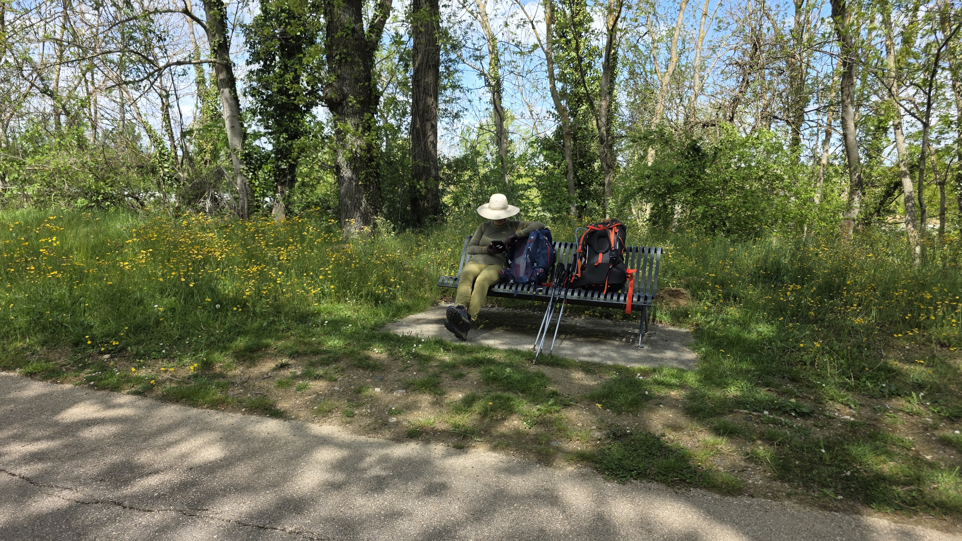 Ce matin j’avais encore mal au dos et le lever a été laborieux mais une fois sur pieds, c’est debout que je suis le mieux et nous avons pu faire l’étape prévue.