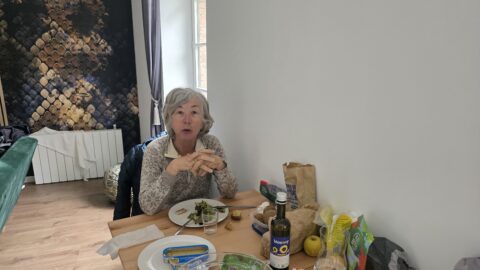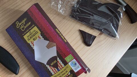 Ce matin nous sommes allés faire de courses, pharmacie (l’ostéopathe que je vais voir demain m’a conseillé de prendre des granules homéopathiques) et Biocoop où nous avons trouvé de bons produits locaux (même le chocolat vient d’Ariège).