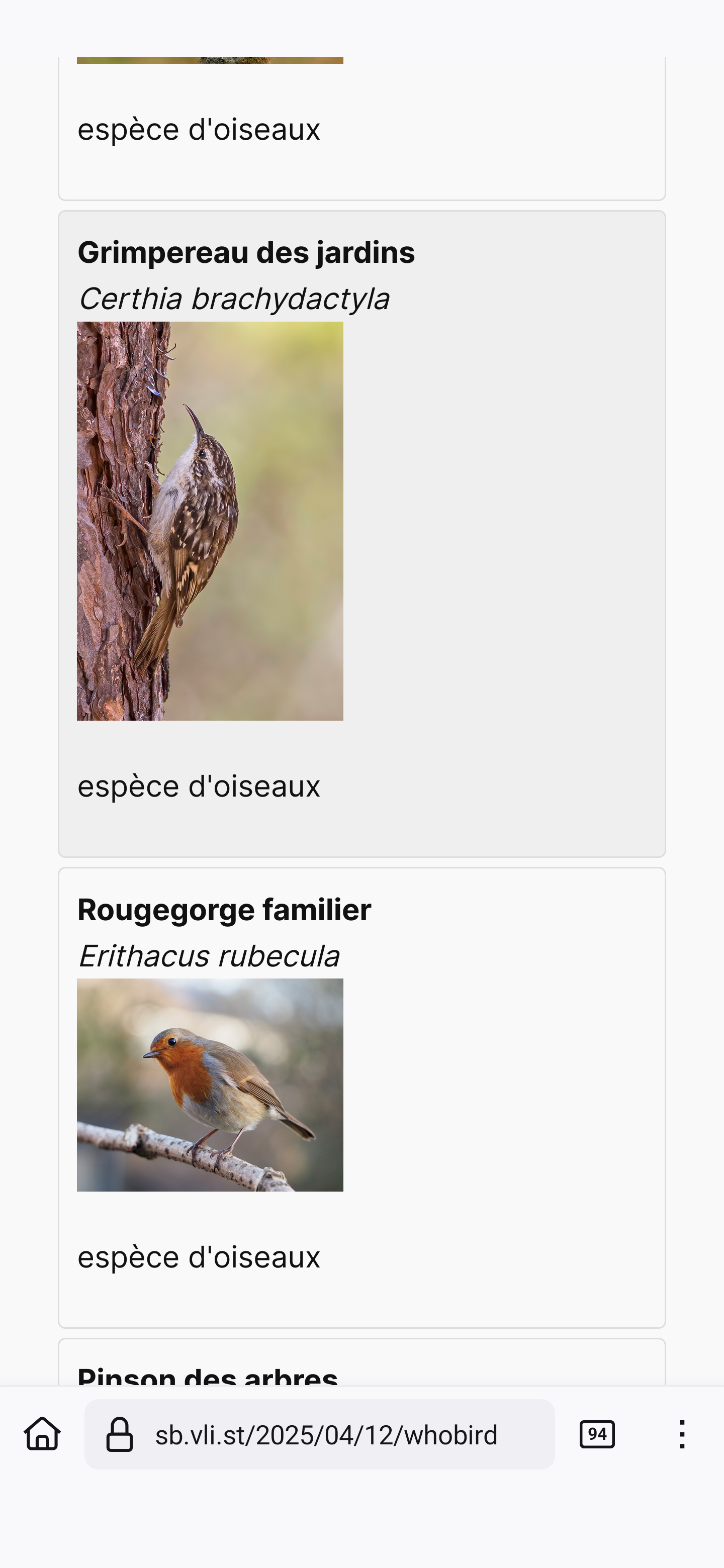 Une journée de travail sur le blog… j’arrive à faire le lien entre les données de WhoBIRD et Wikipedia mais c’est tout de même pénible de travailler sur un téléphone même quand il est connecté à une télévision !