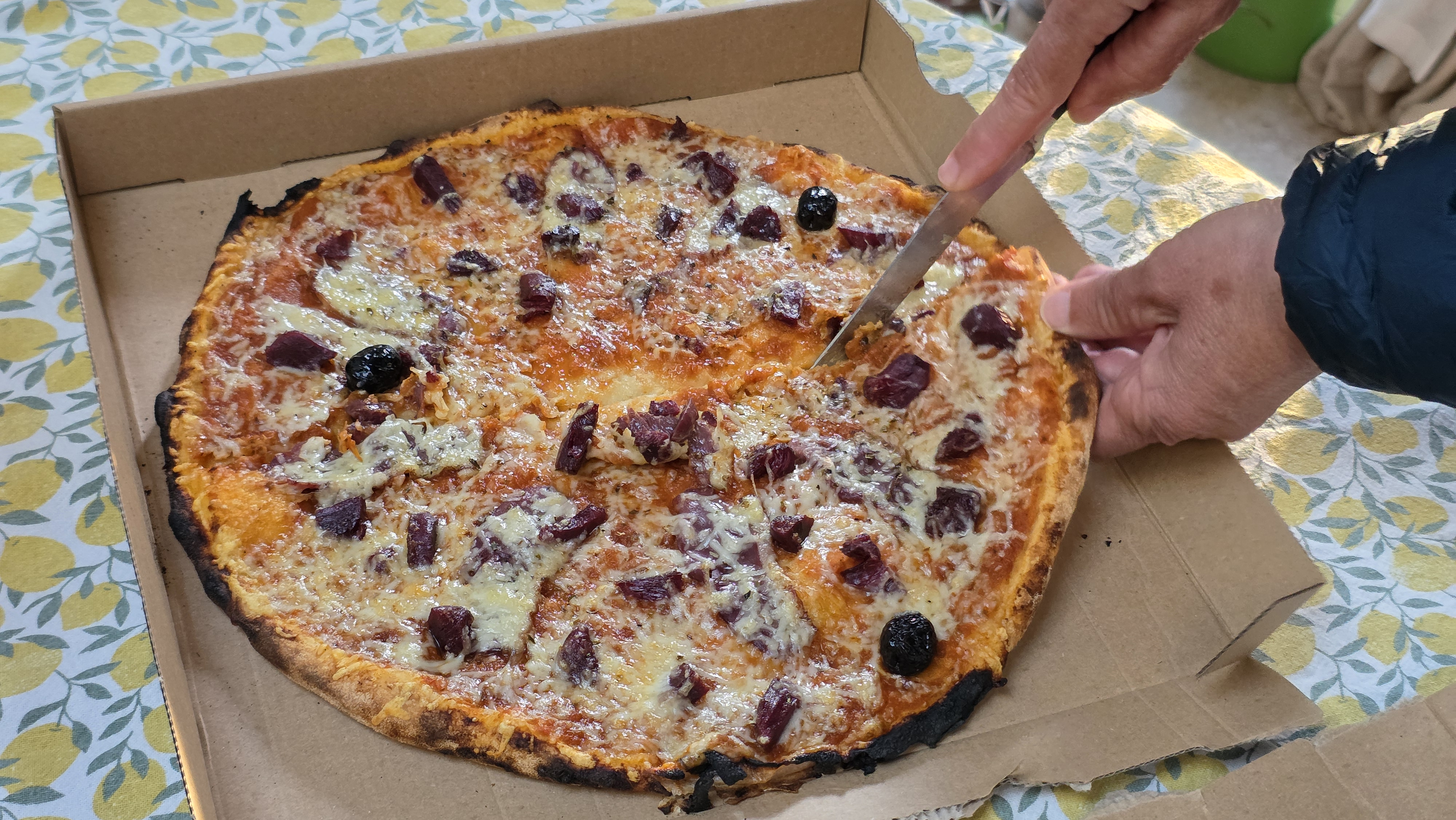Les embouts de bâtons sont un peu trop larges pour nos bâtons et nous avons profité d’une zone commerciale pour acheter du chatterton chez Gifi ce qui devrait me permettre de les adapter, verdict demain.