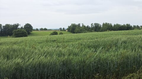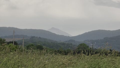 L’étape a été moins vallonnée que les deux précédentes et le ciel couvert ne nous a que rarement laissé voir les Pyrénées.