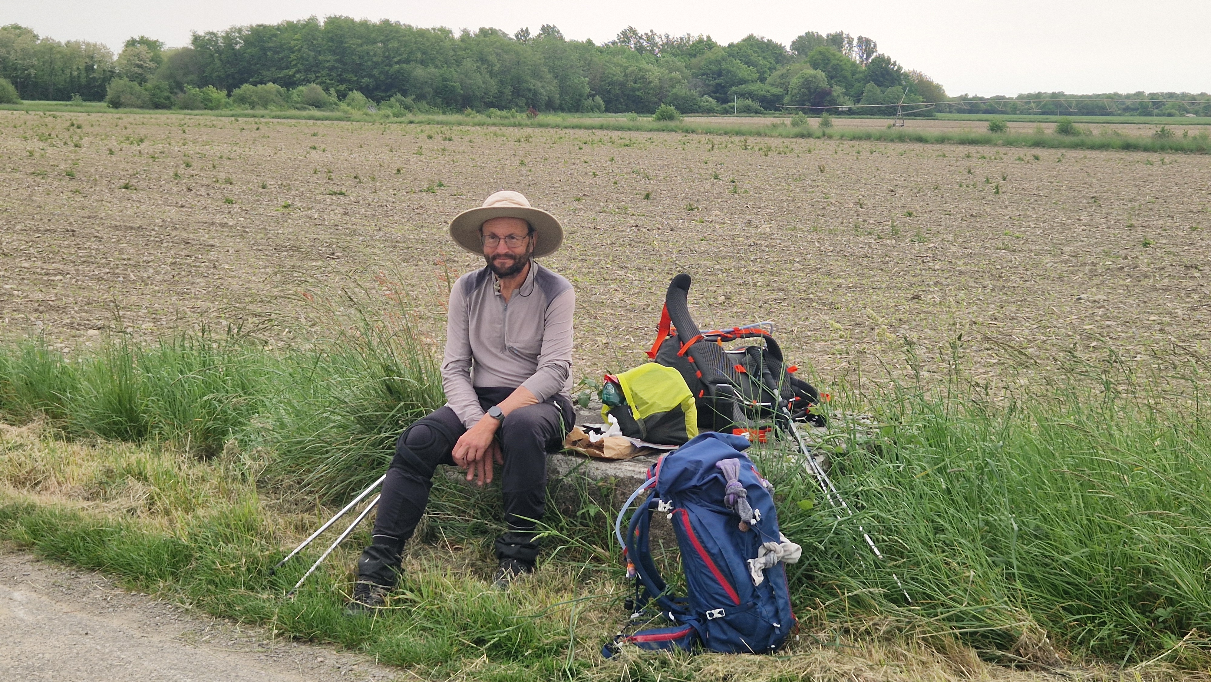 L’étape a été moins vallonnée que les deux précédentes et le ciel couvert ne nous a que rarement laissé voir les Pyrénées.