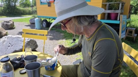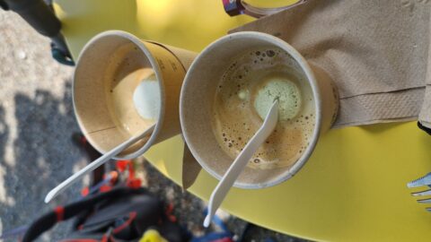 Nous avons pris notre temps et sommes arrivés vers 14h00 à Saint-Martory. C’était trop tard pour l’unique restaurant ouvert dans le village et nous avons piqueniqué à côté de la roulotte de Kimglace, les meilleurs glaces du Comminges à ce que l’on dit, qui nous a fourni desserts et cafés.
