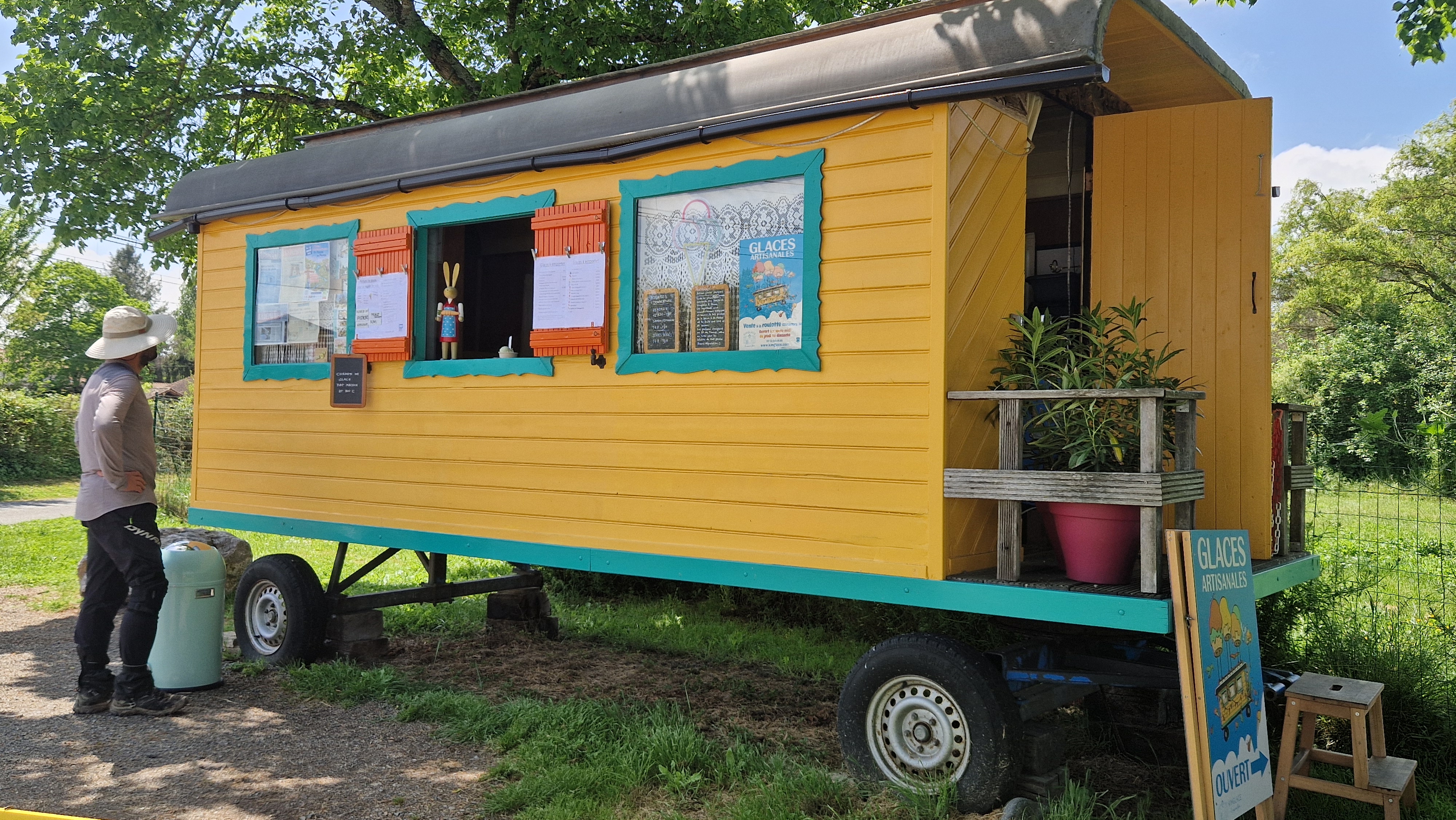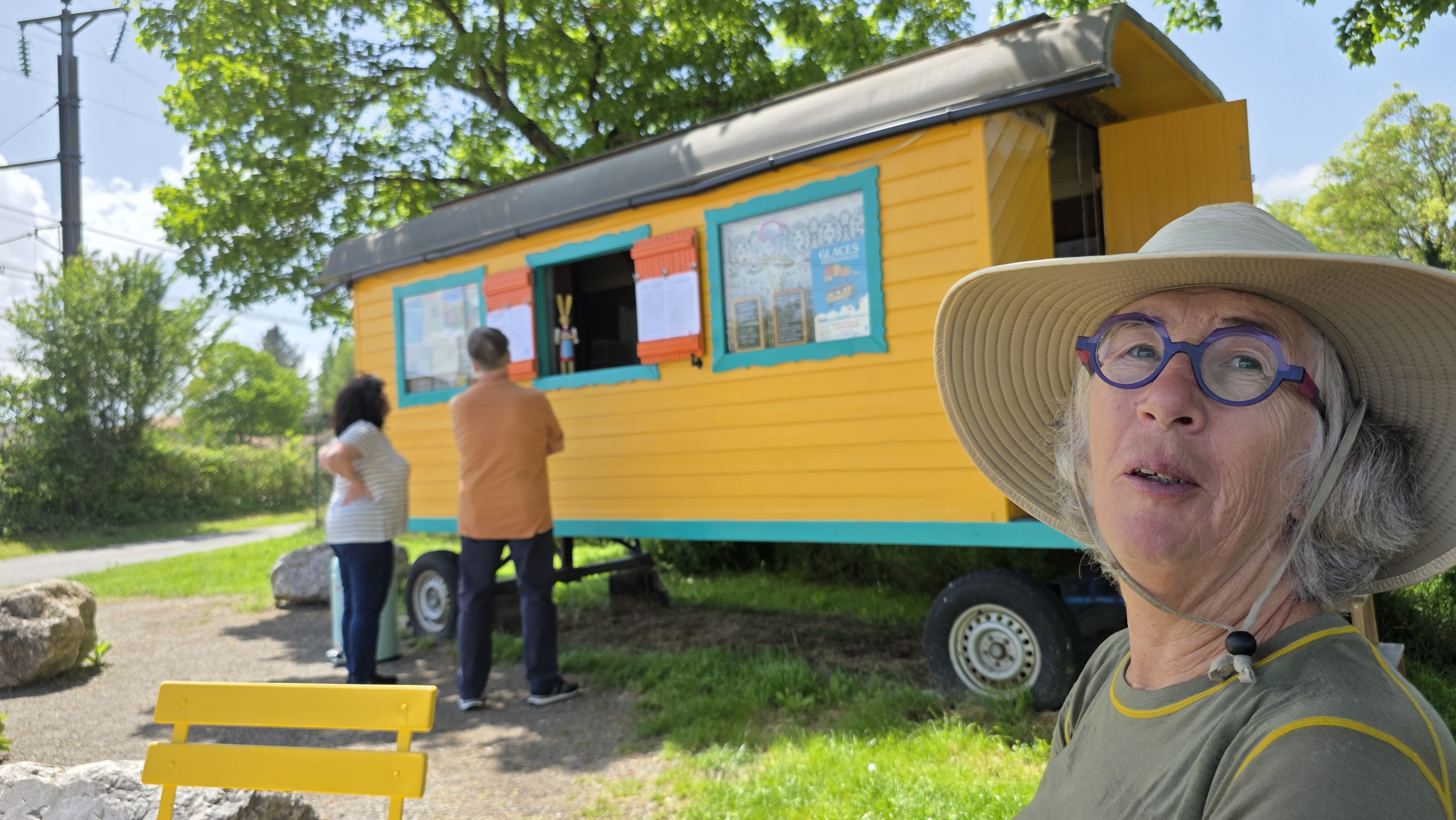 Nous avons pris notre temps et sommes arrivés vers 14h00 à Saint-Martory. C’était trop tard pour l’unique restaurant ouvert dans le village et nous avons piqueniqué à côté de la roulotte de Kimglace, les meilleurs glaces du Comminges à ce que l’on dit, qui nous a fourni desserts et cafés.