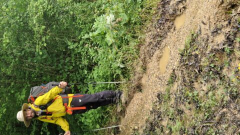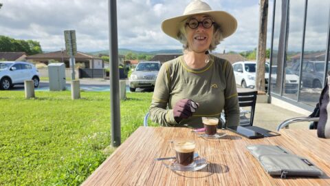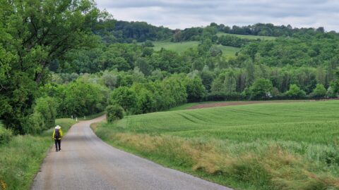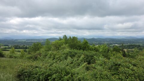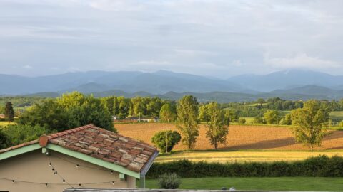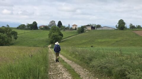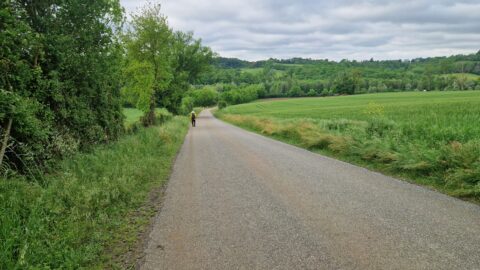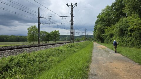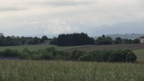 Une étape agréable et sans pluie où nous avons même pu apercevoir le Pic de Cagire entre les nuages qui couvrent les Pyrénées.