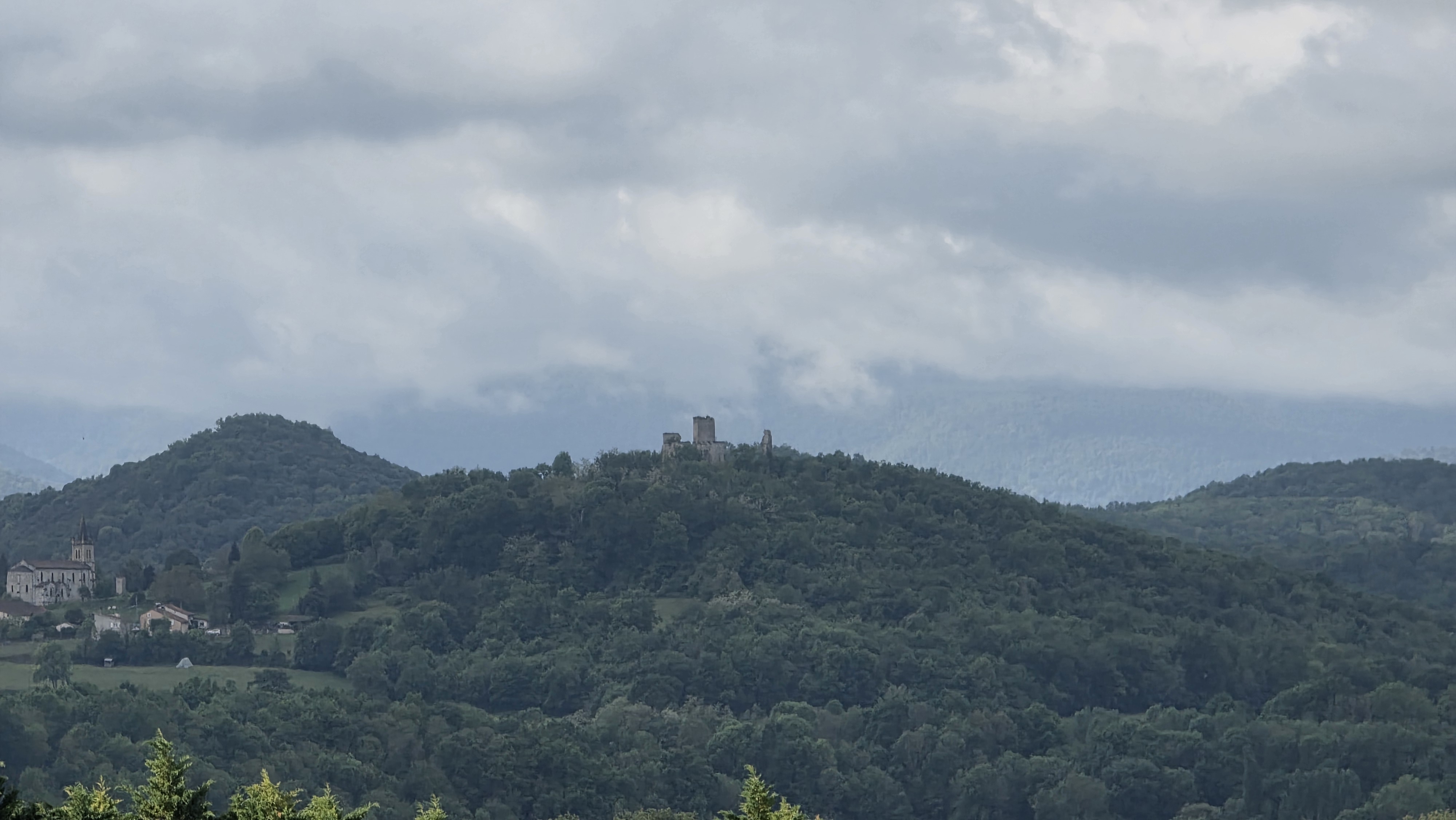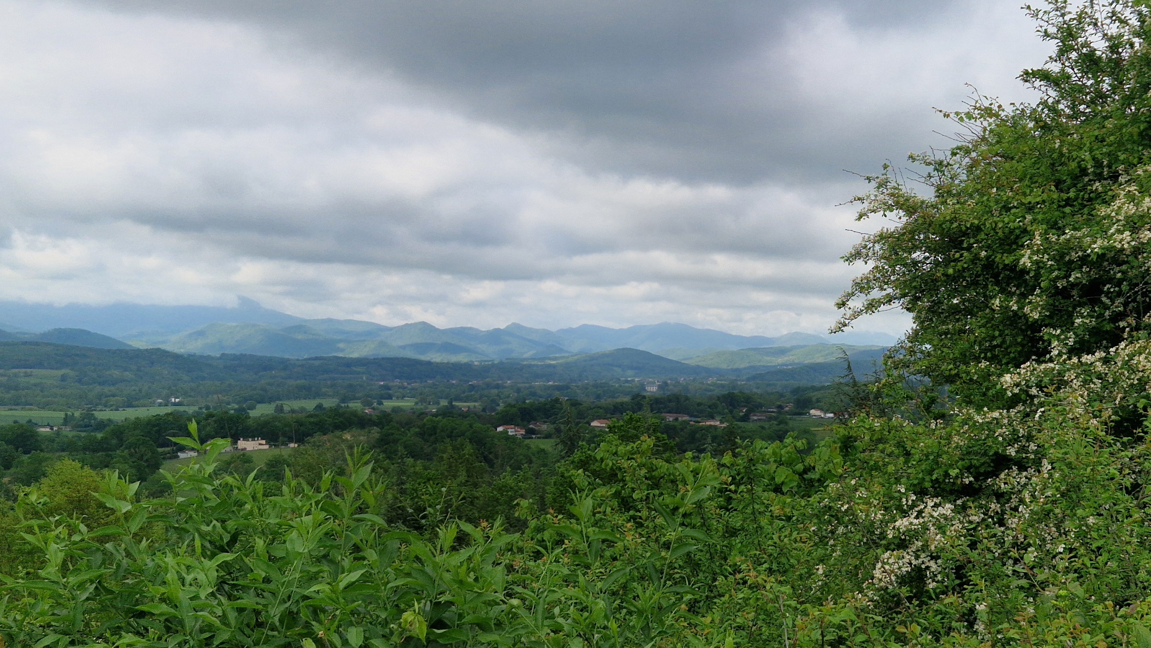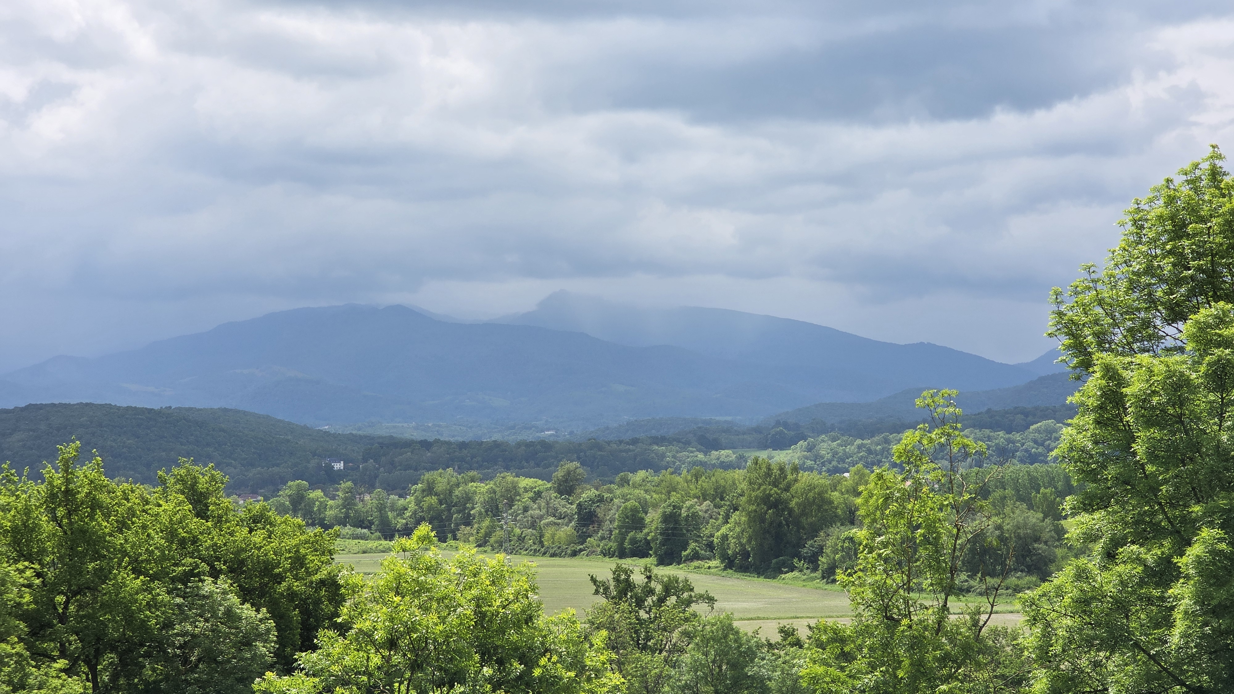 Une étape agréable et sans pluie où nous avons même pu apercevoir le Pic de Cagire entre les nuages qui couvrent les Pyrénées.