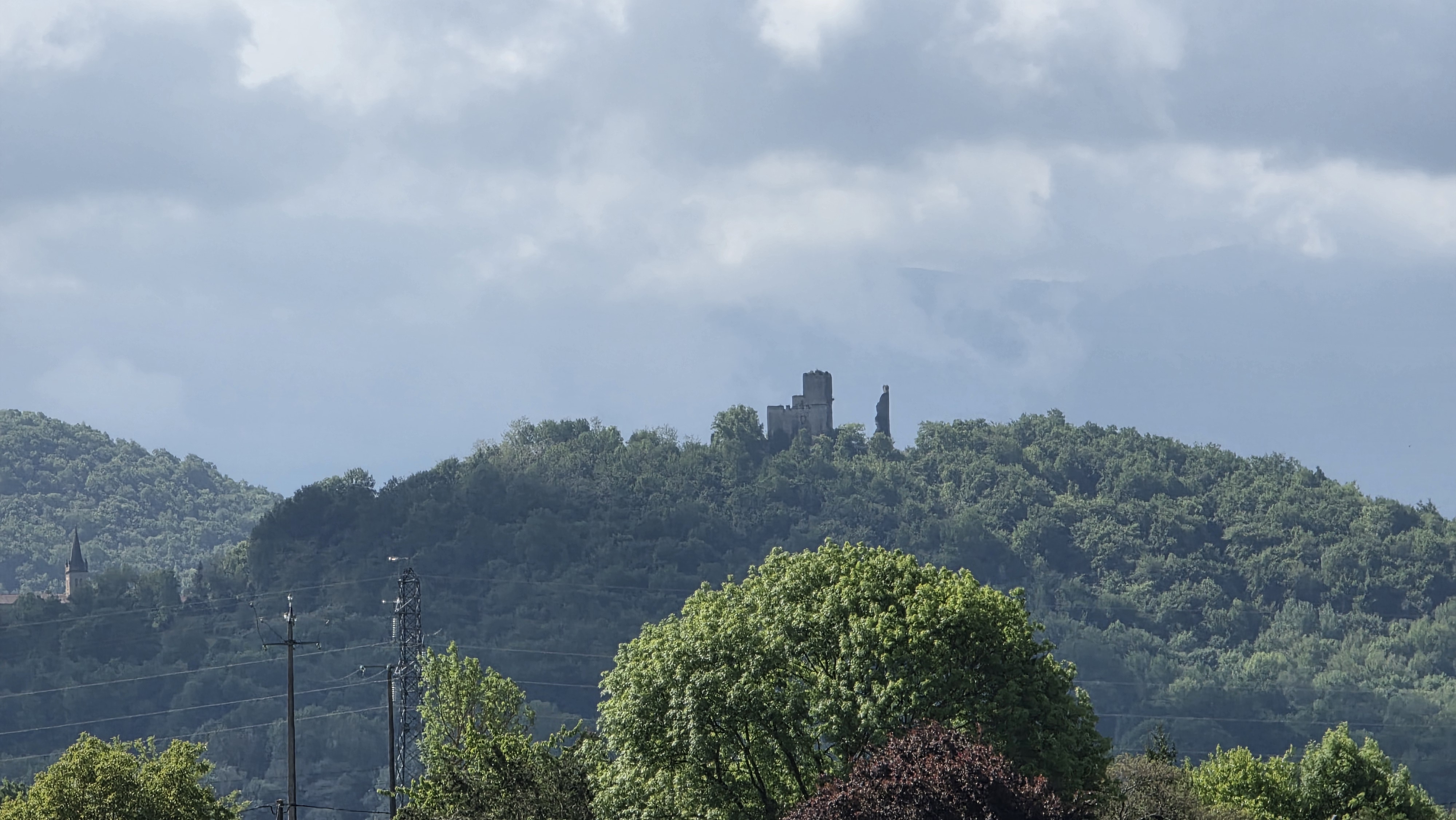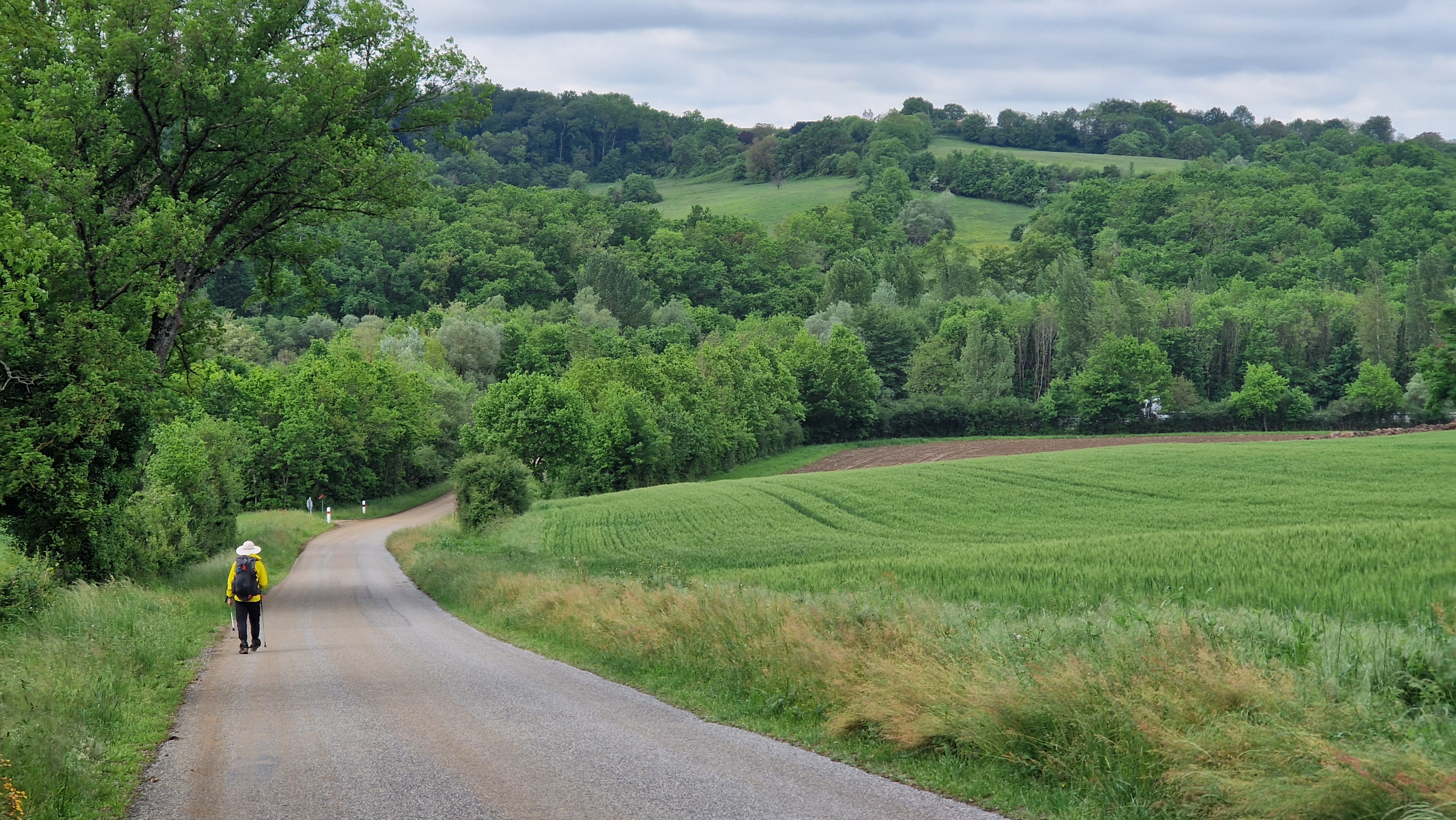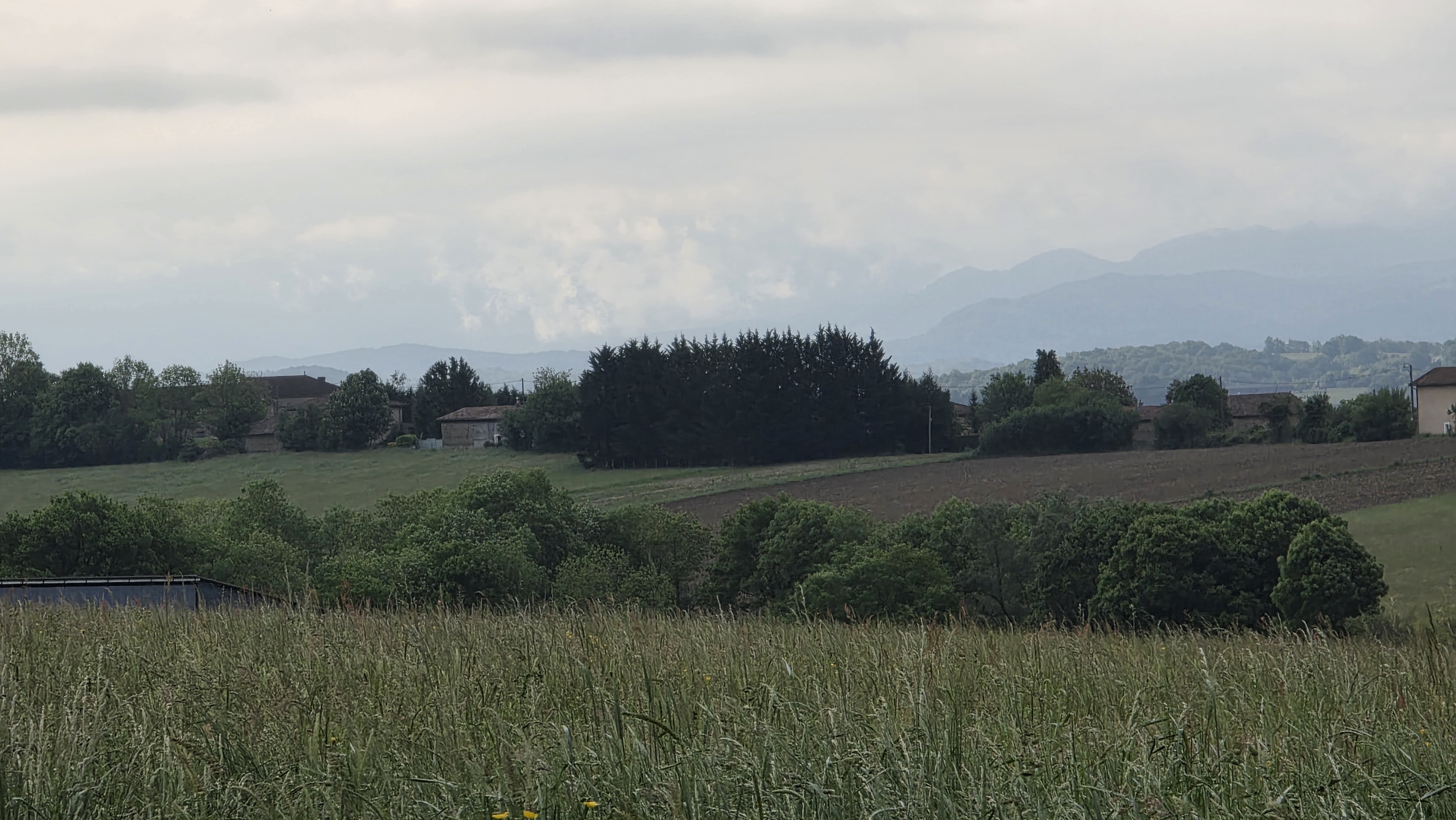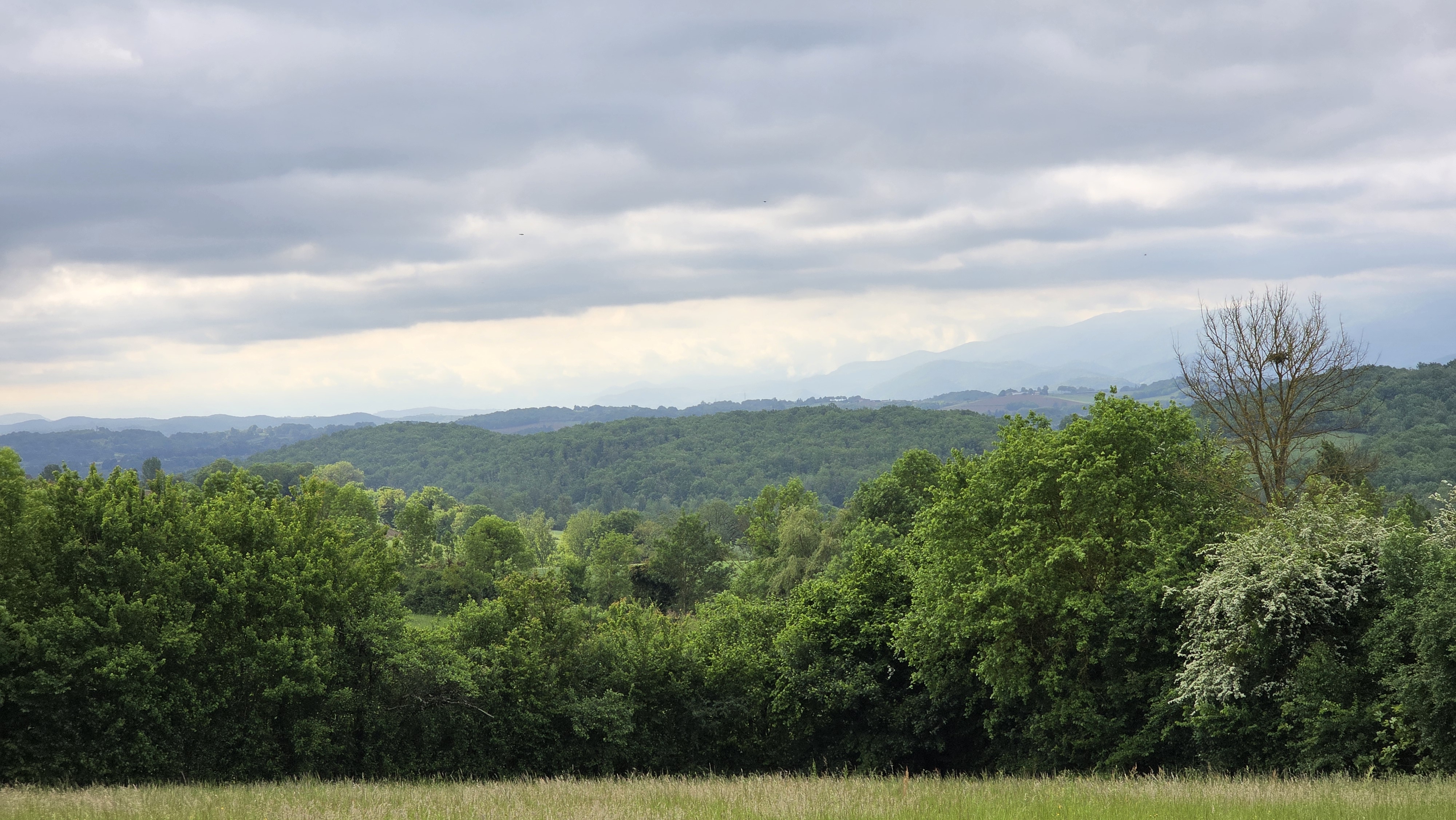 Une étape agréable et sans pluie où nous avons même pu apercevoir le Pic de Cagire entre les nuages qui couvrent les Pyrénées.