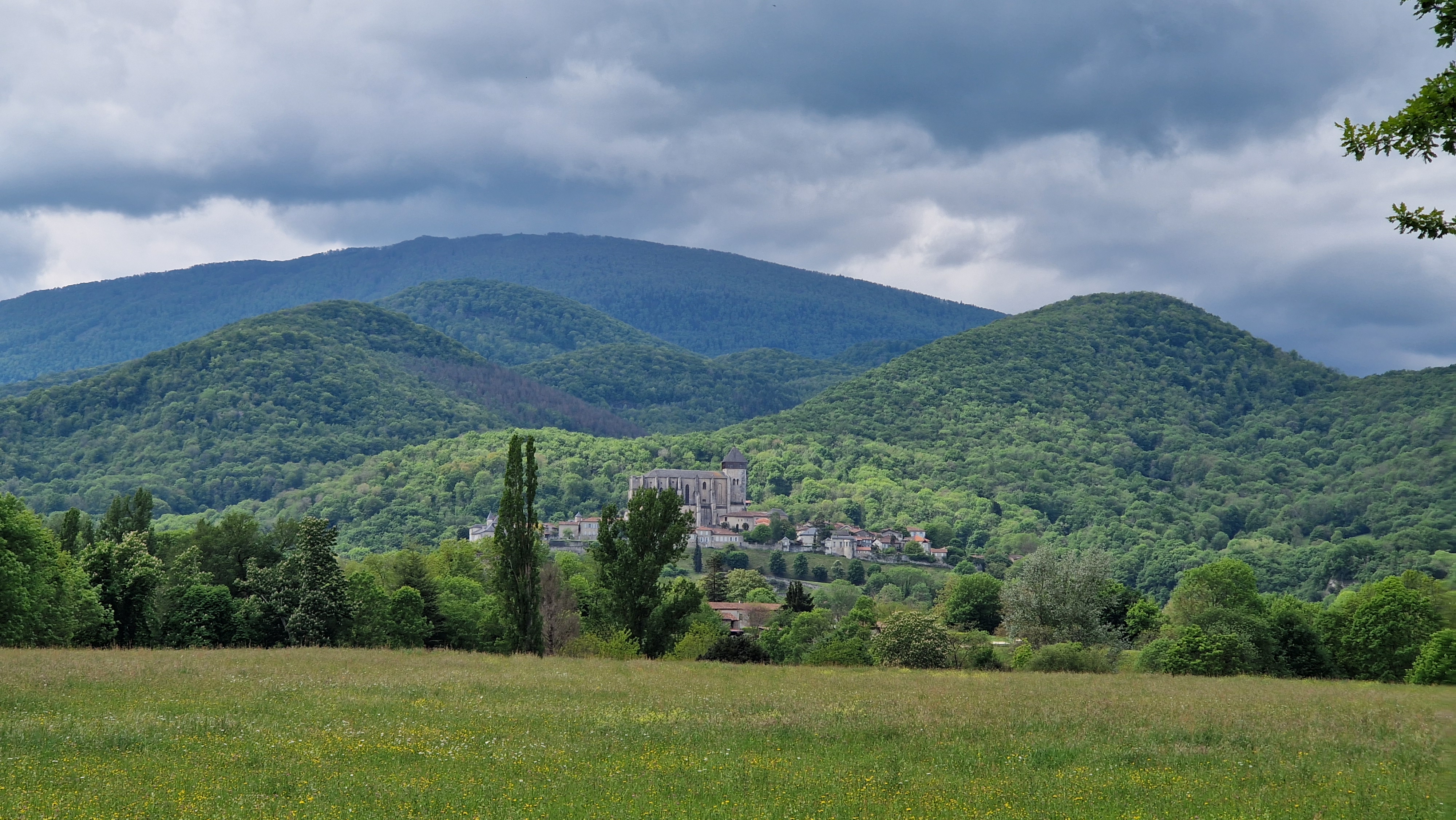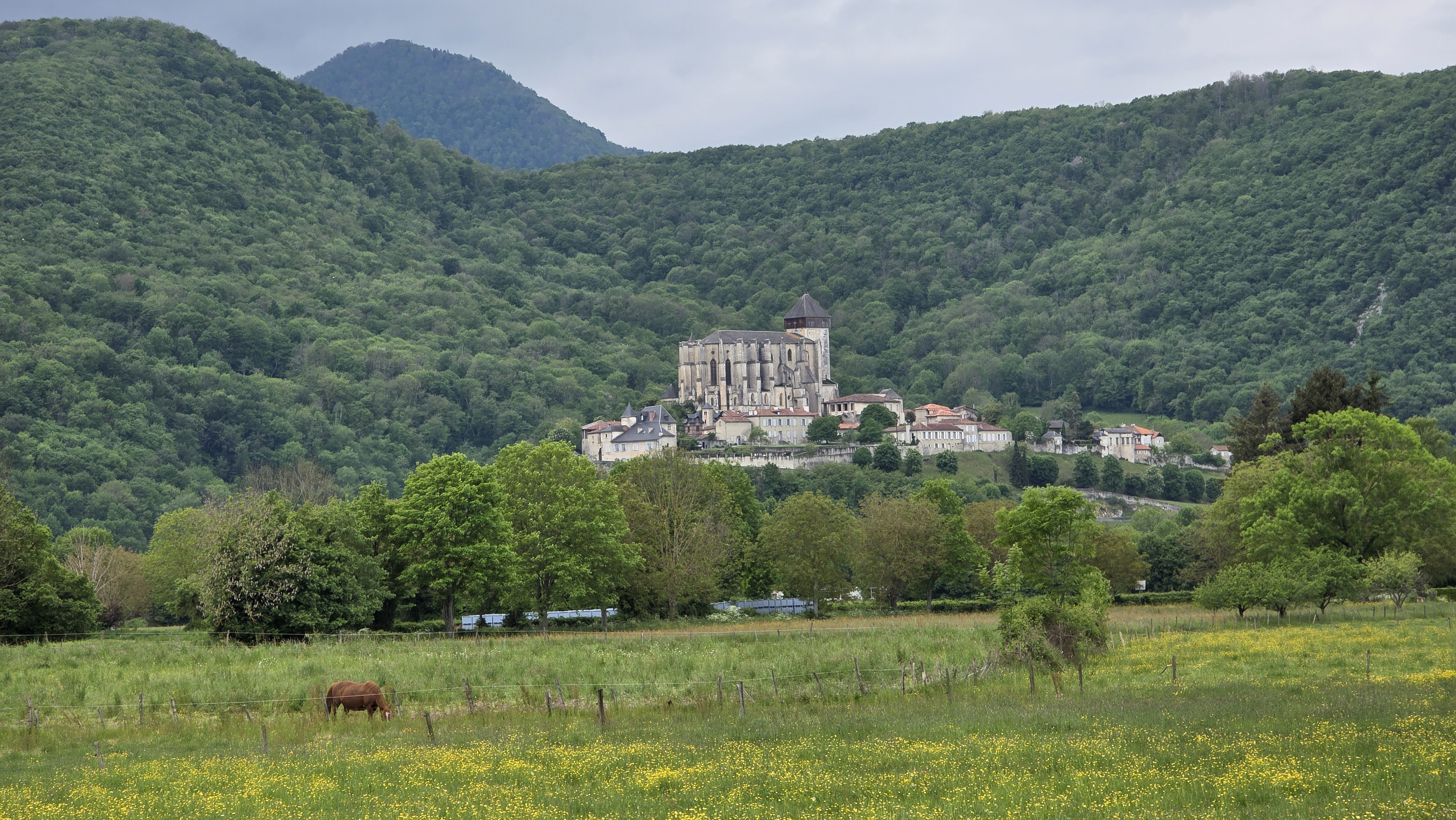 Après avoir longé la Garonne face au village de Montréjeau nous avons très vite aperçu Saint-Bertrand-de-Comminges sur sa colline qui domine la vallée.