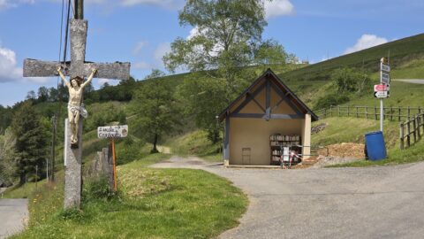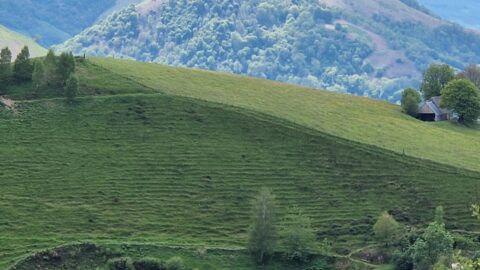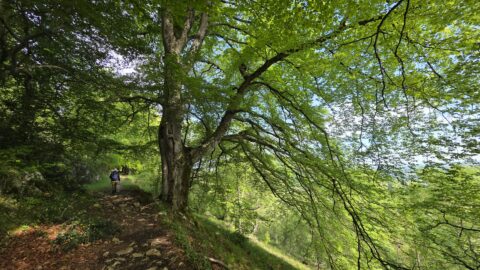 Nous avons traversé un Bagnères-de-Bigorre bien plus endormi que quand nous l’avons arpenté hier, sommes sortis de la ville dans un grand parc et attaqué la montée, une belle montée en lacets dans la forêt.