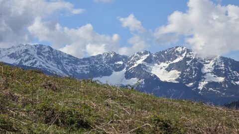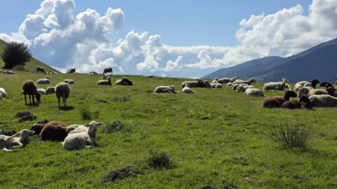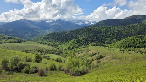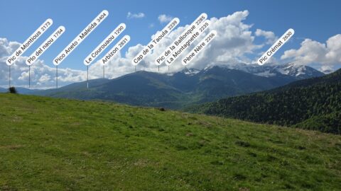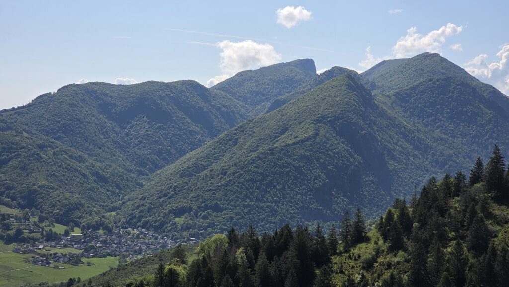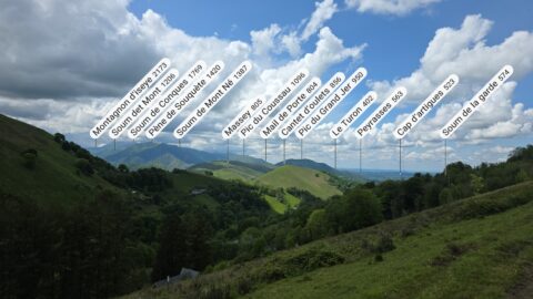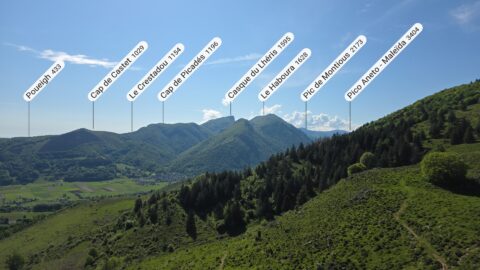 Après un nouveau passage en forêt nous avons atteint une crête débonnaire et rencontré notre premier troupeau de moutons en liberté et une vue sur le massif du Pic du Midi de Bigorre dont le sommet est resté masqué par les nuages.