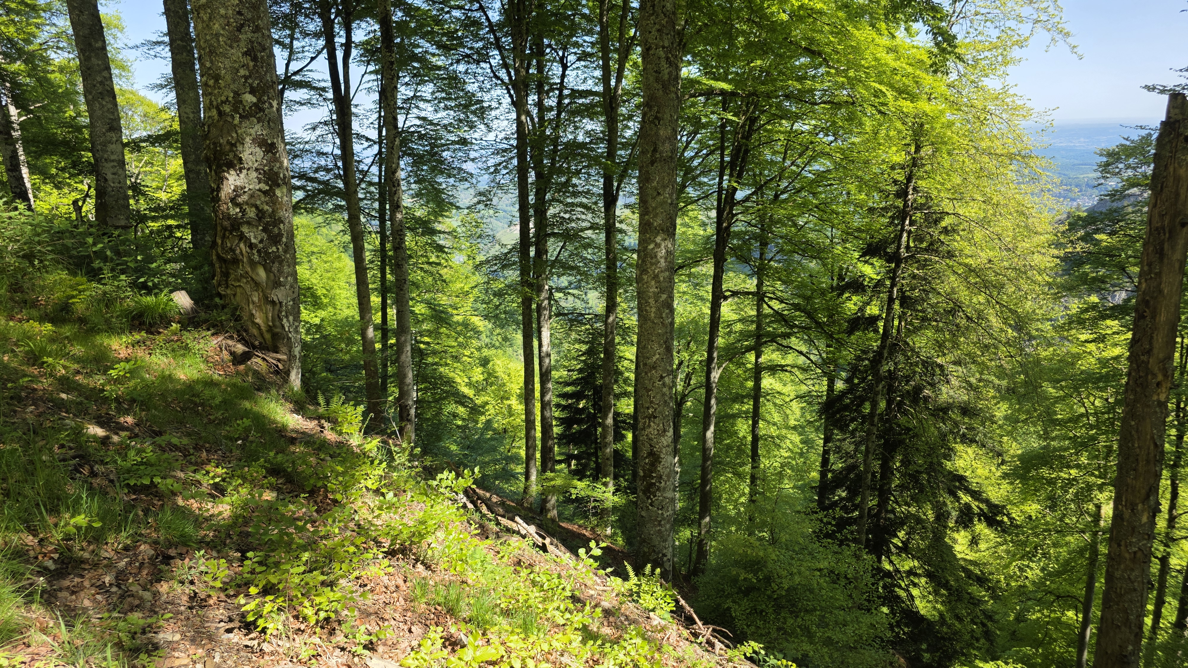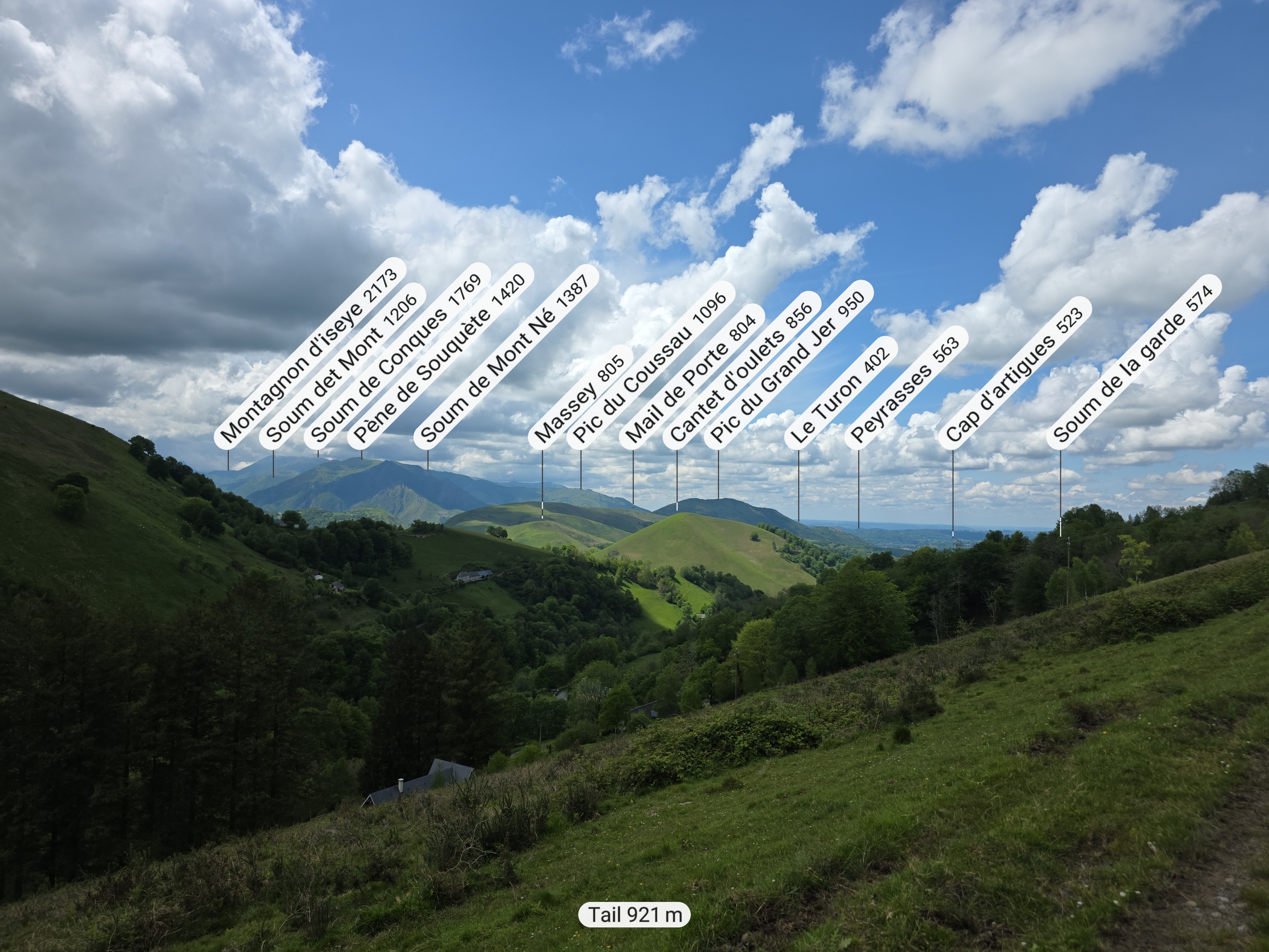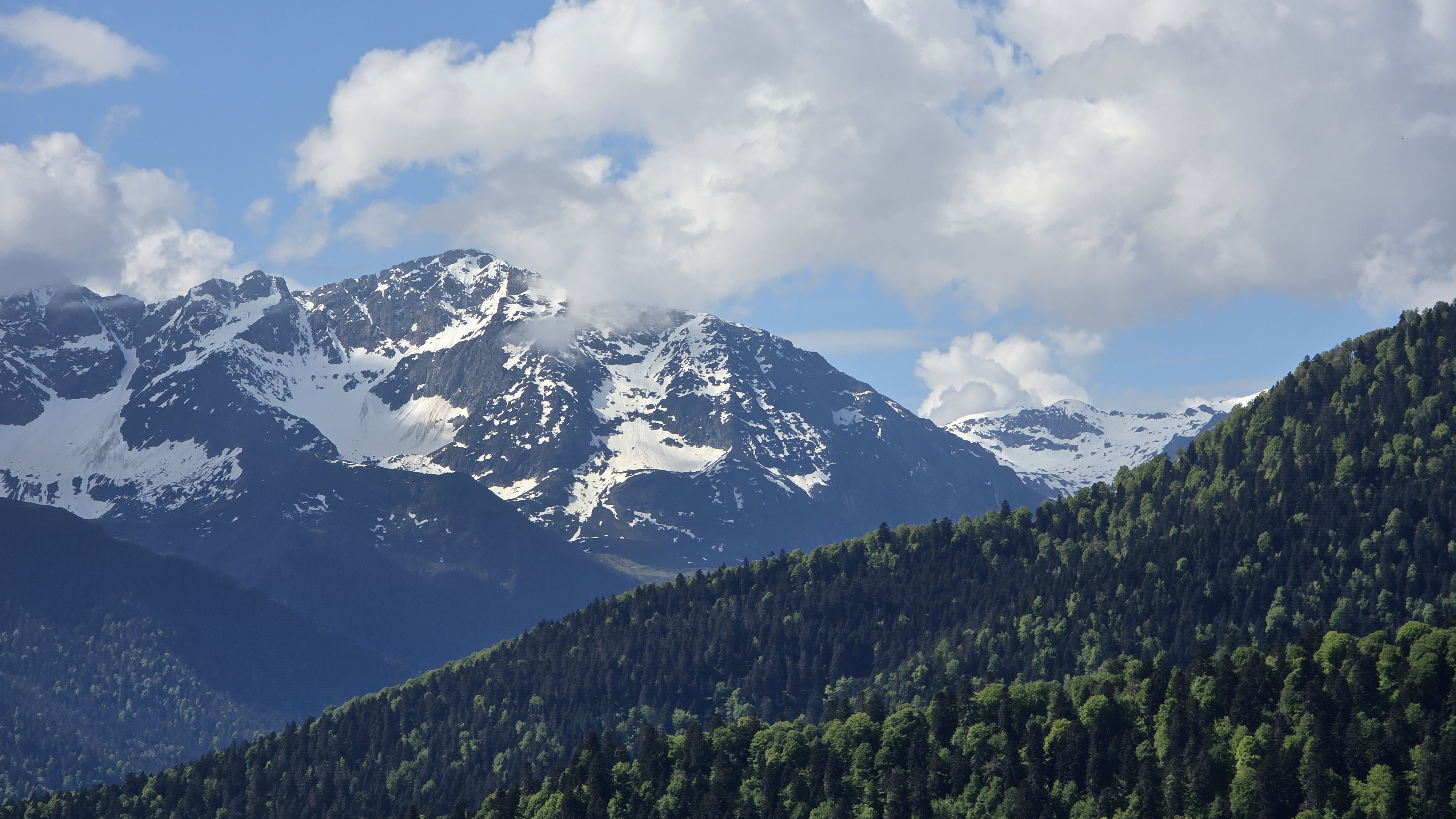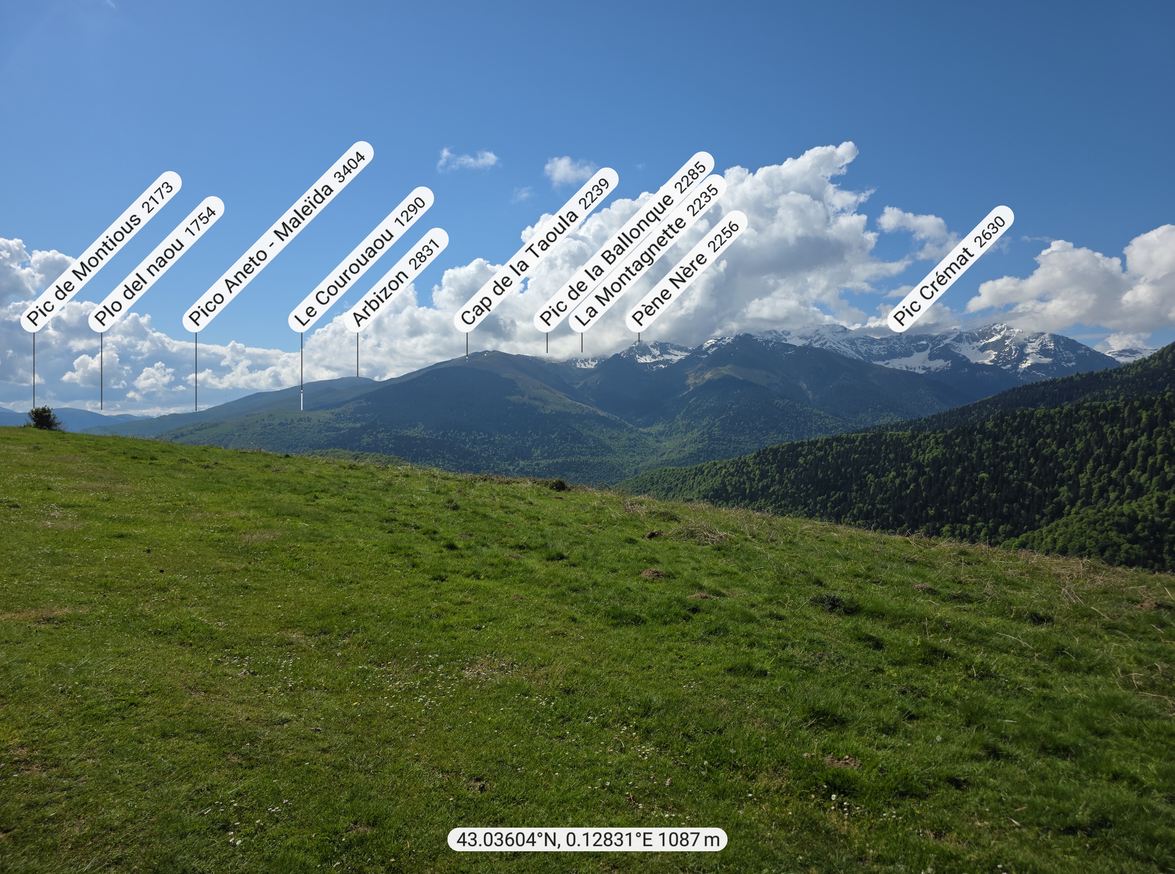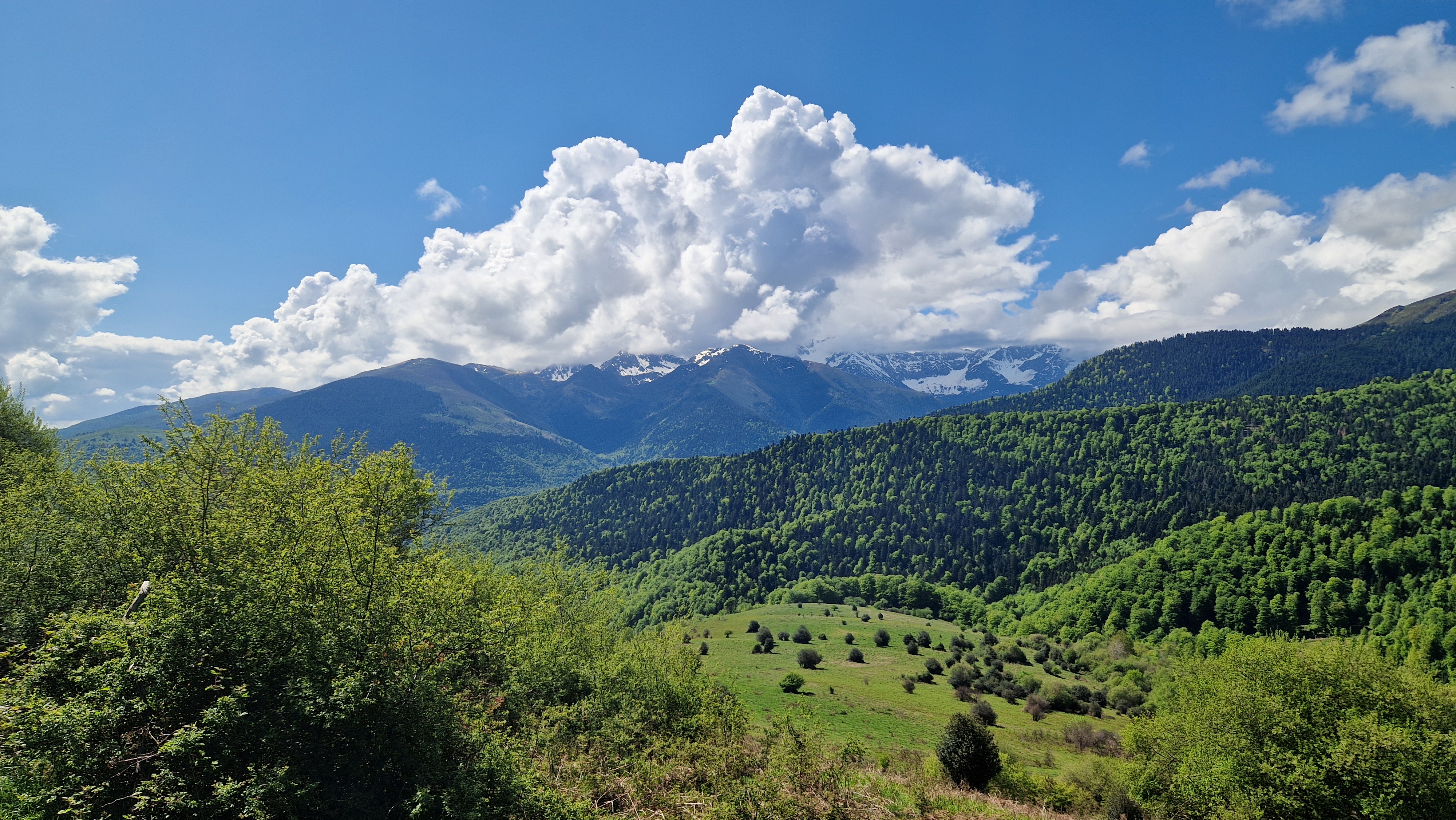Après un nouveau passage en forêt nous avons atteint une crête débonnaire et rencontré notre premier troupeau de moutons en liberté et une vue sur le massif du Pic du Midi de Bigorre dont le sommet est resté masqué par les nuages.