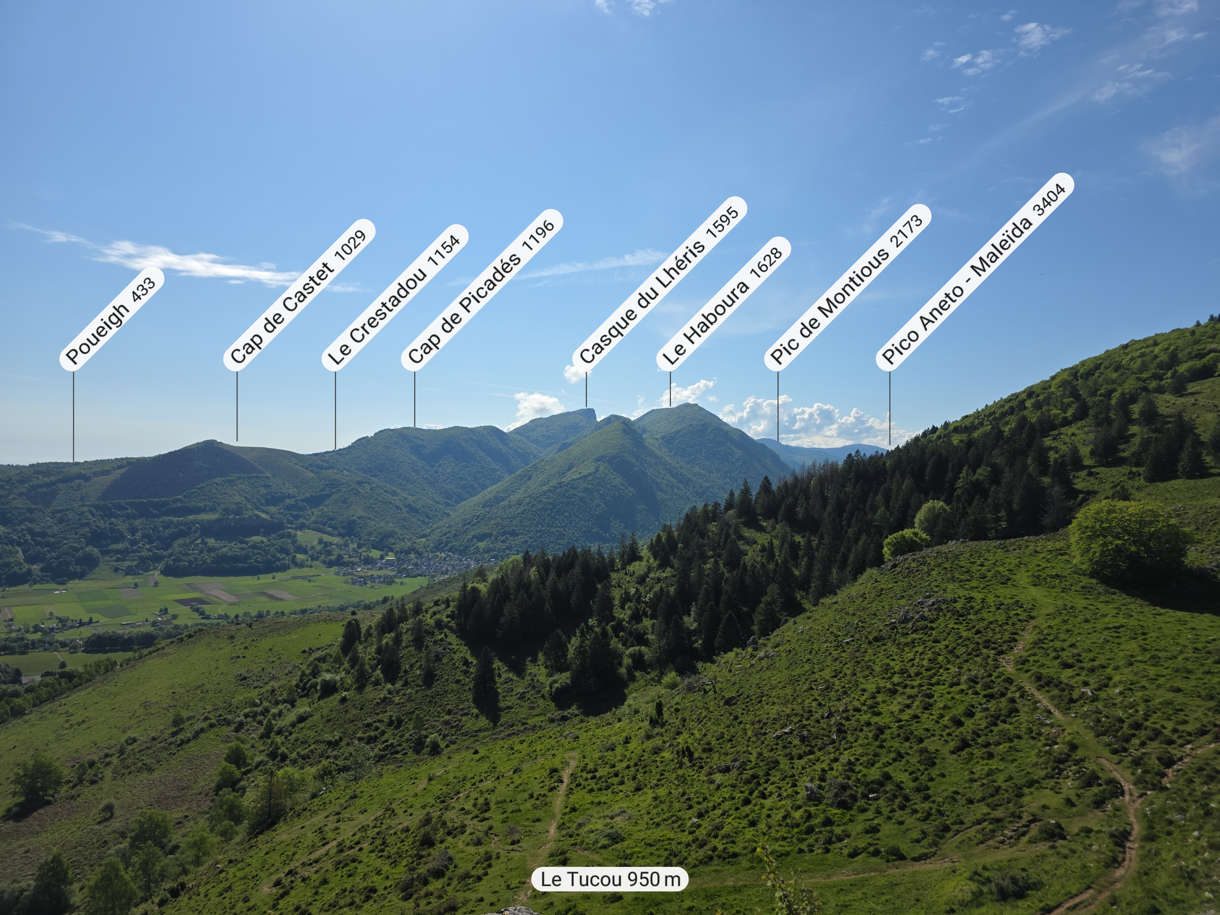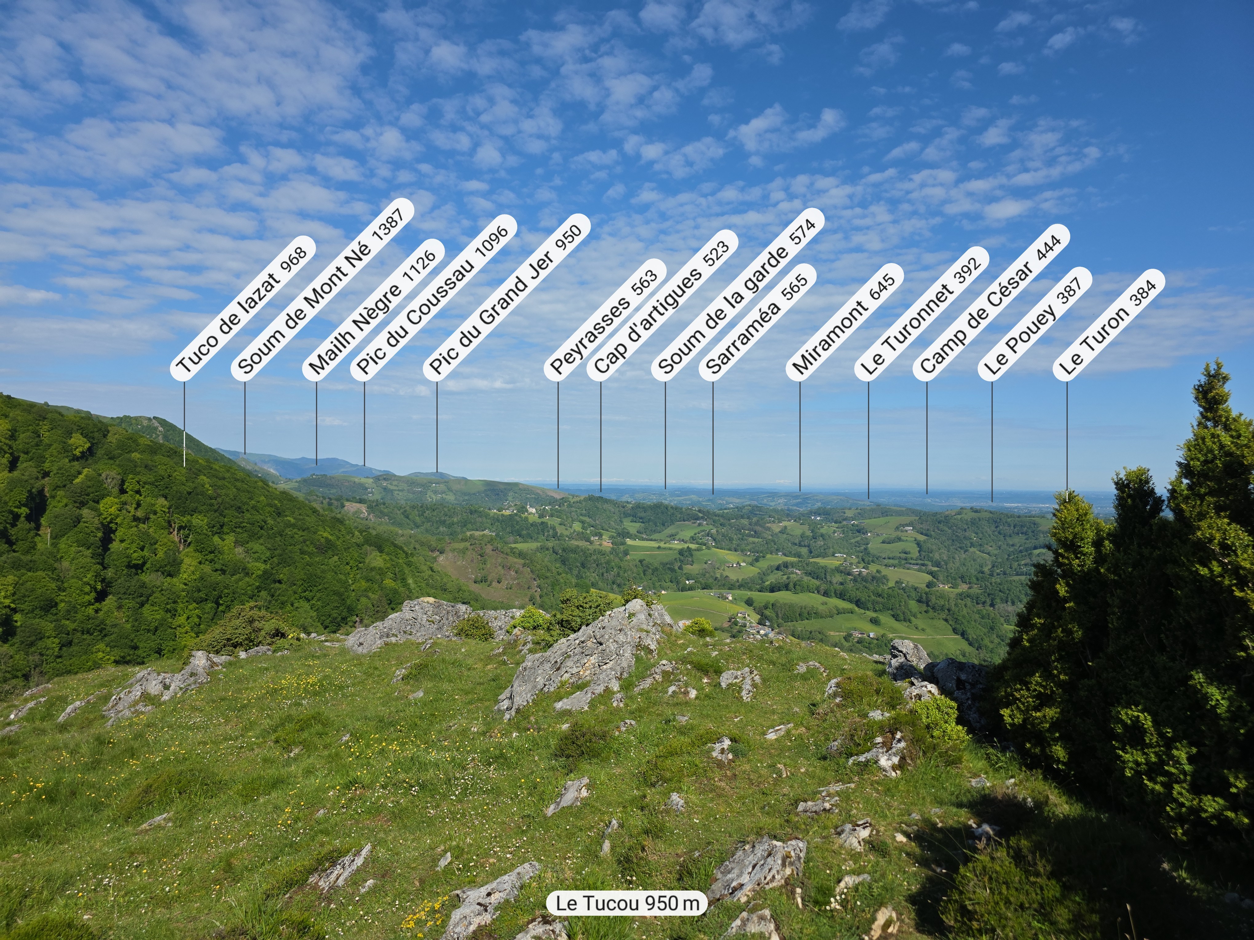 Sortis de la forêt nous n’étions qu’à 800m d’altitude mais c’est un paysage et une végétation de montagne qui se sont montrés à nous. Nous sommes allés faire quelques photos au sommet du Tucou (950m) et avons poursuivi notre chemin.