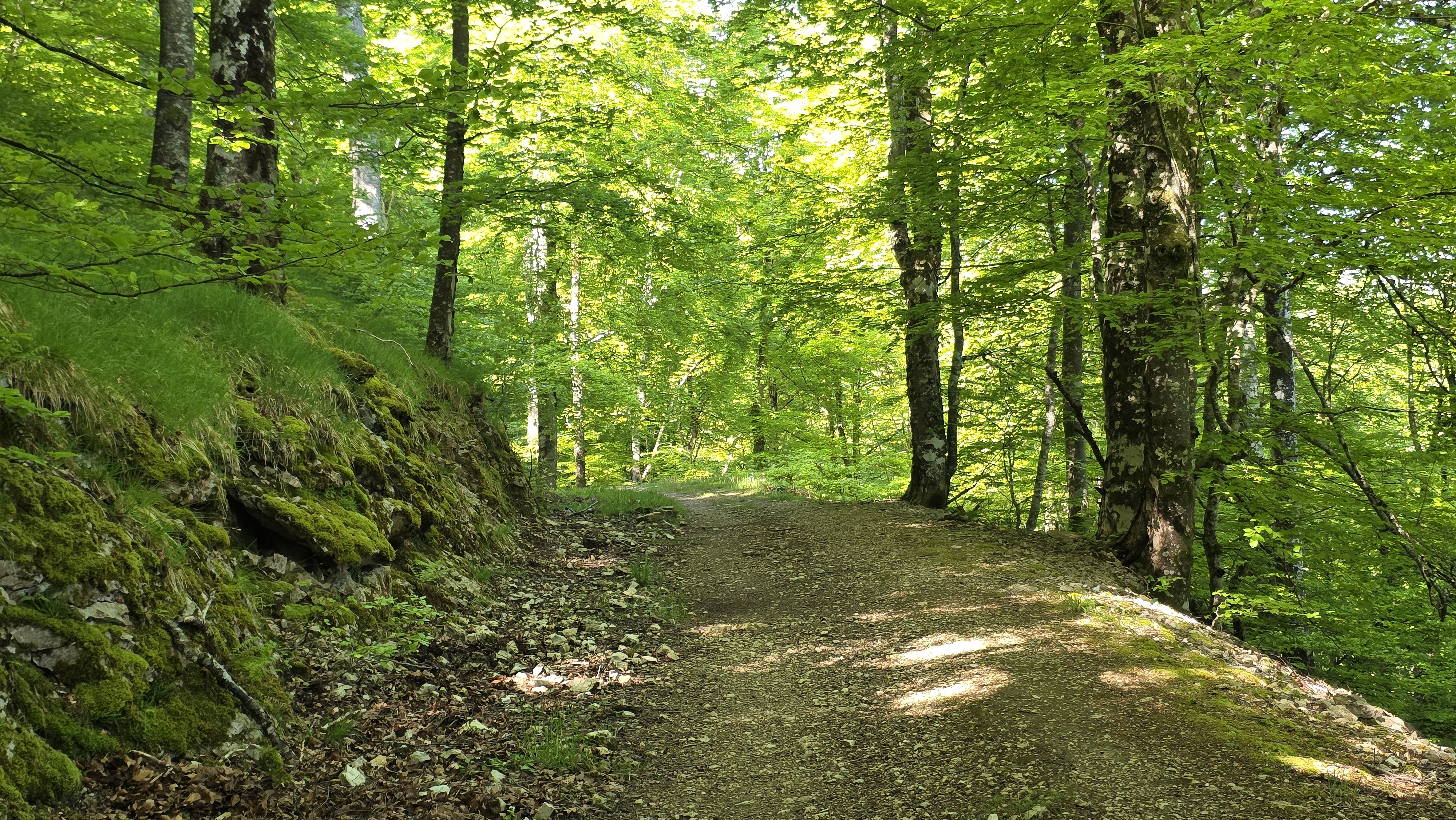 Nous avons traversé un Bagnères-de-Bigorre bien plus endormi que quand nous l’avons arpenté hier, sommes sortis de la ville dans un grand parc et attaqué la montée, une belle montée en lacets dans la forêt.