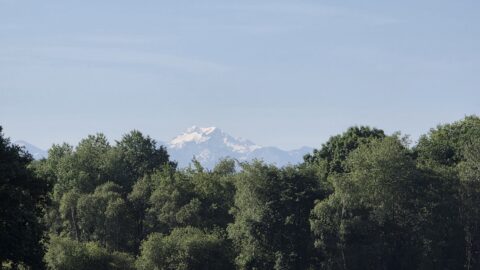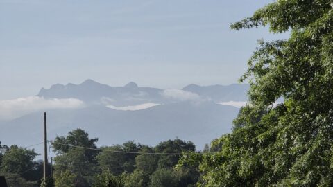 En débouchant des sous-bois nous avons eu de belles vues sur les sommets des Pyrénées.