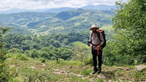 Le paysage est très vert et très vallonné, fidèle à l’image qu’on se fait du Pays Basque. L’altitude reste faible mais le cumul des dénivelés est loin d’être négligeable.