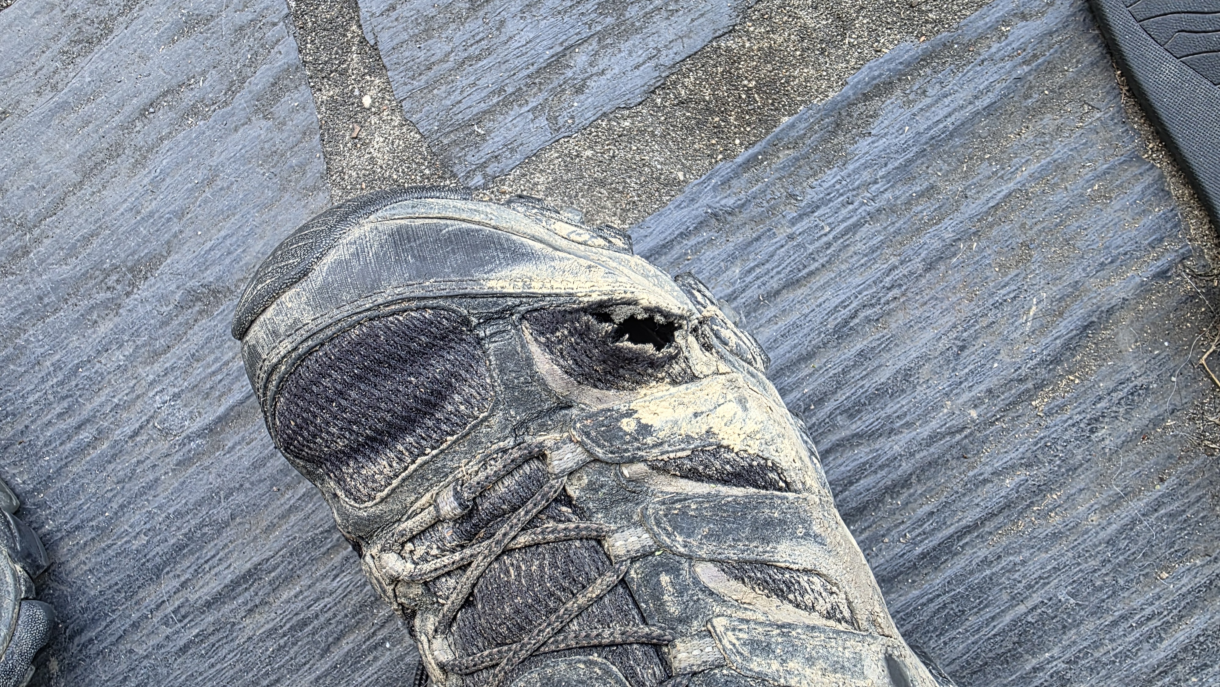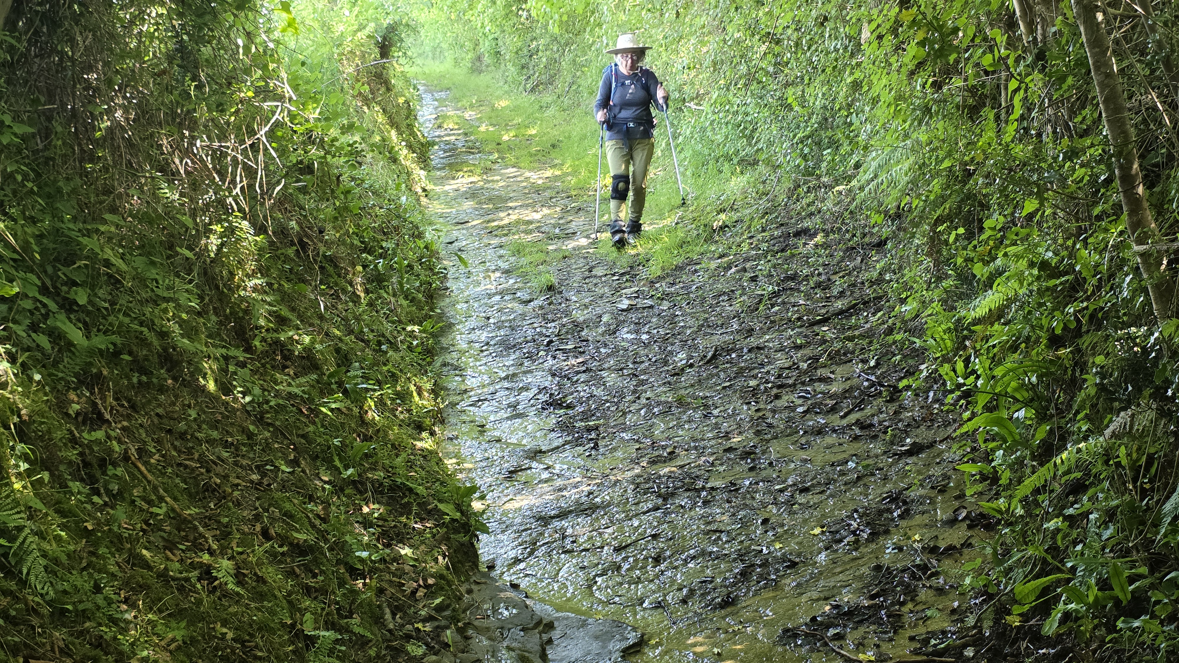 Mes chaussures commencent à donner des signes de fatigue et je vais devoir penser à en changer. C’est d’autant plus gênant que les sentiers sont très boueux et qu’elles ne sont absolument plus étanches !