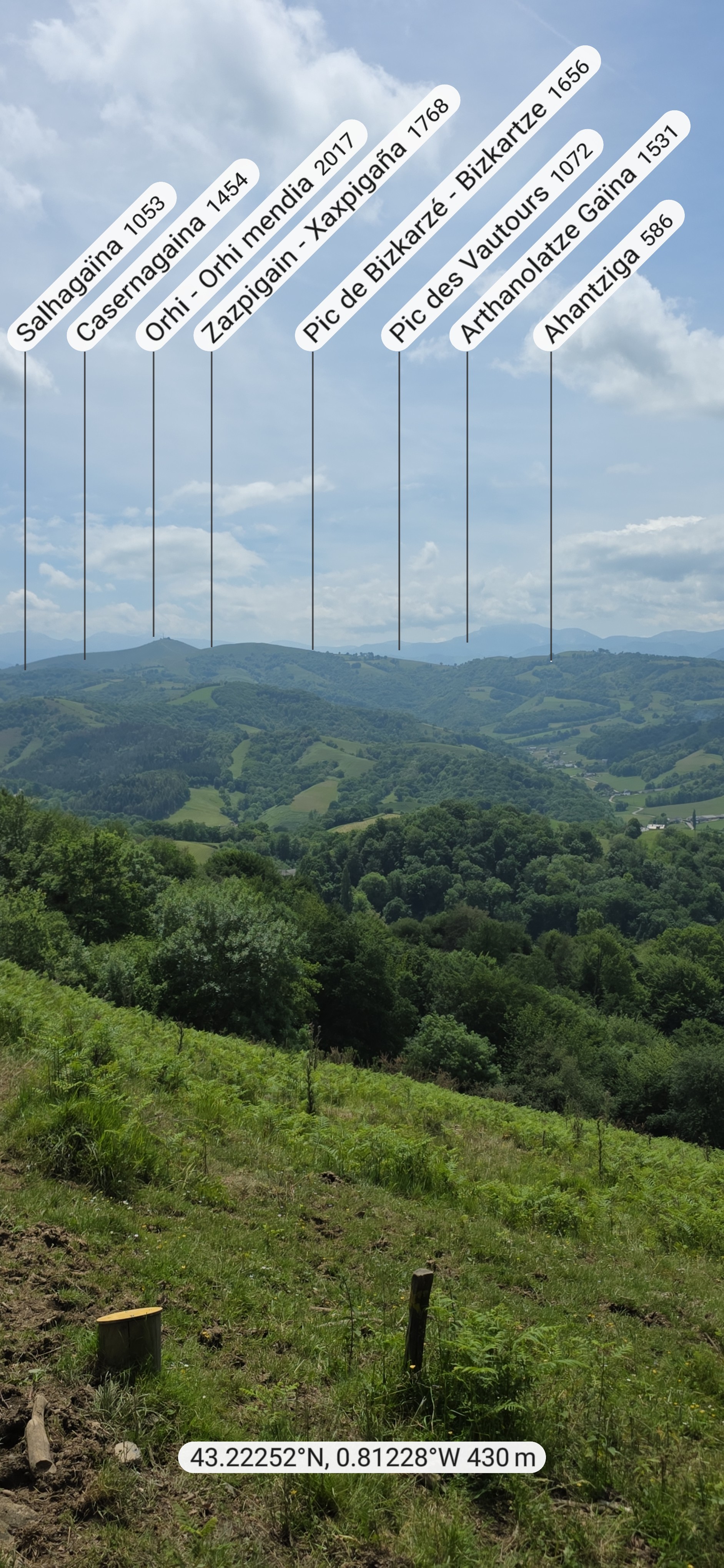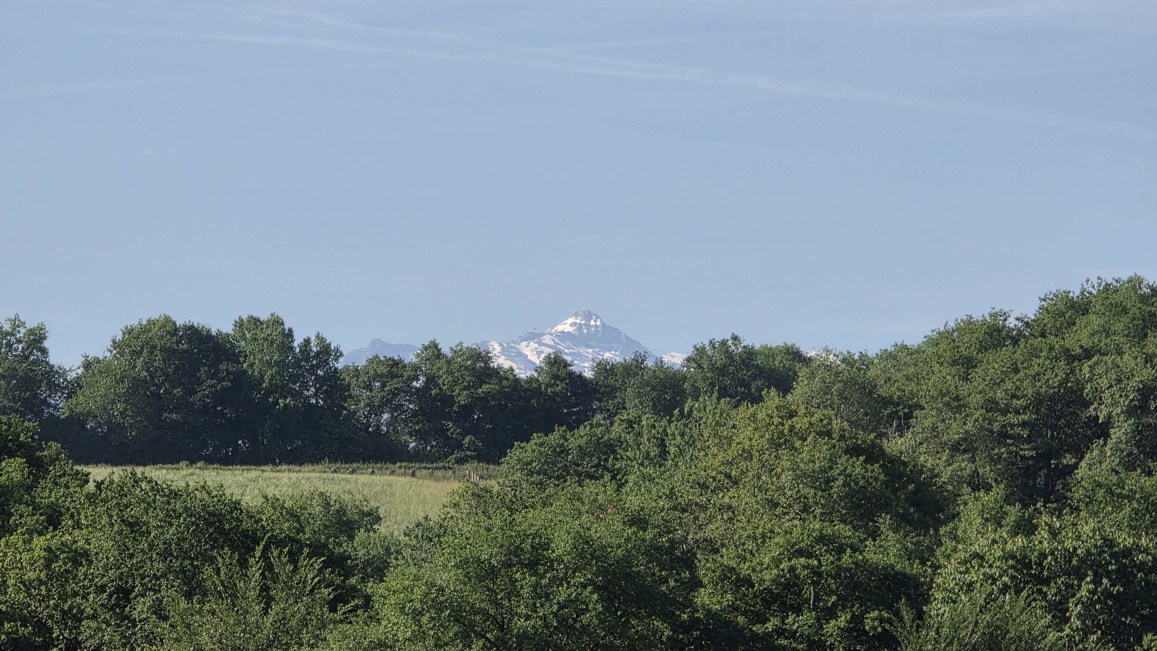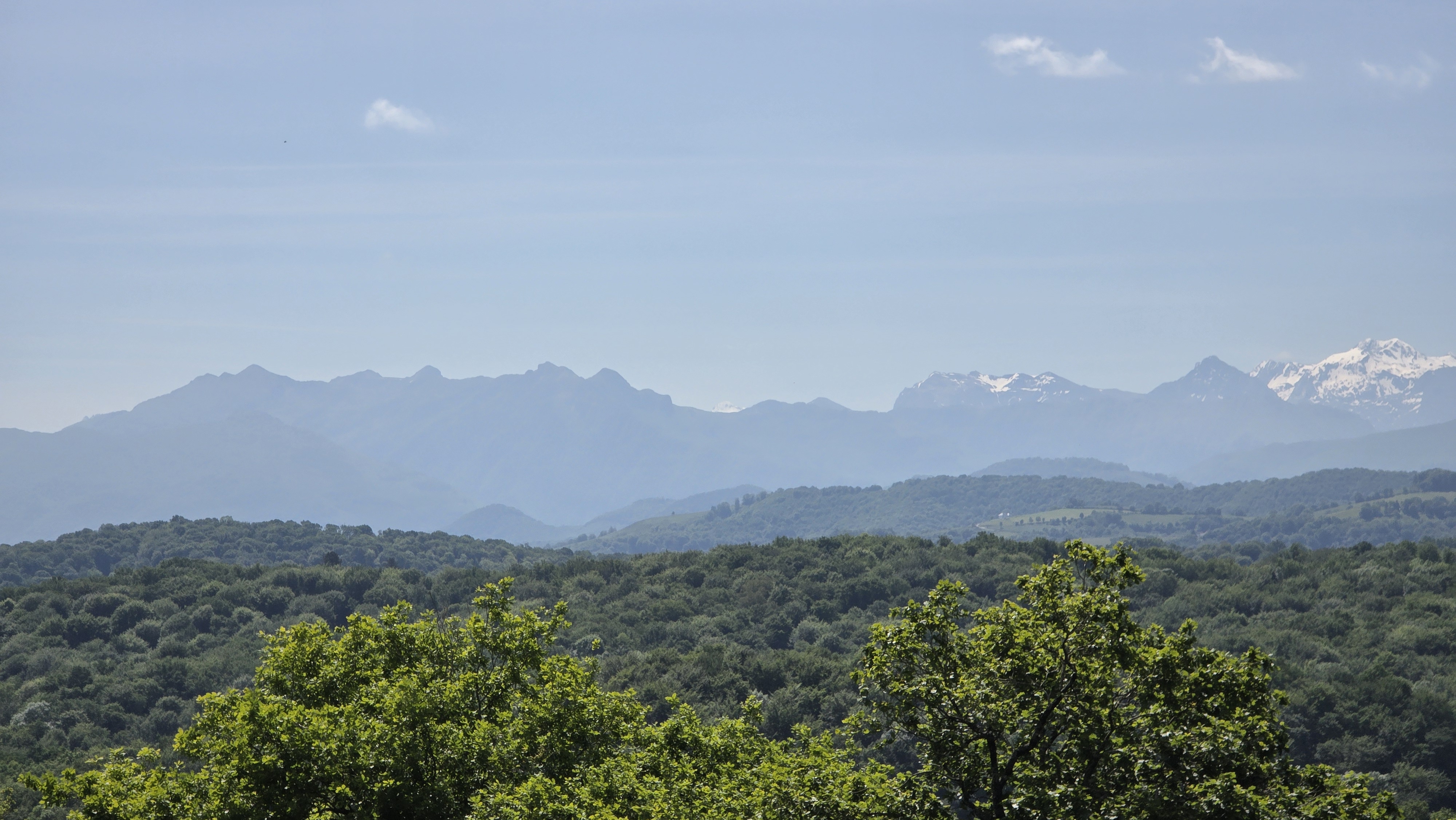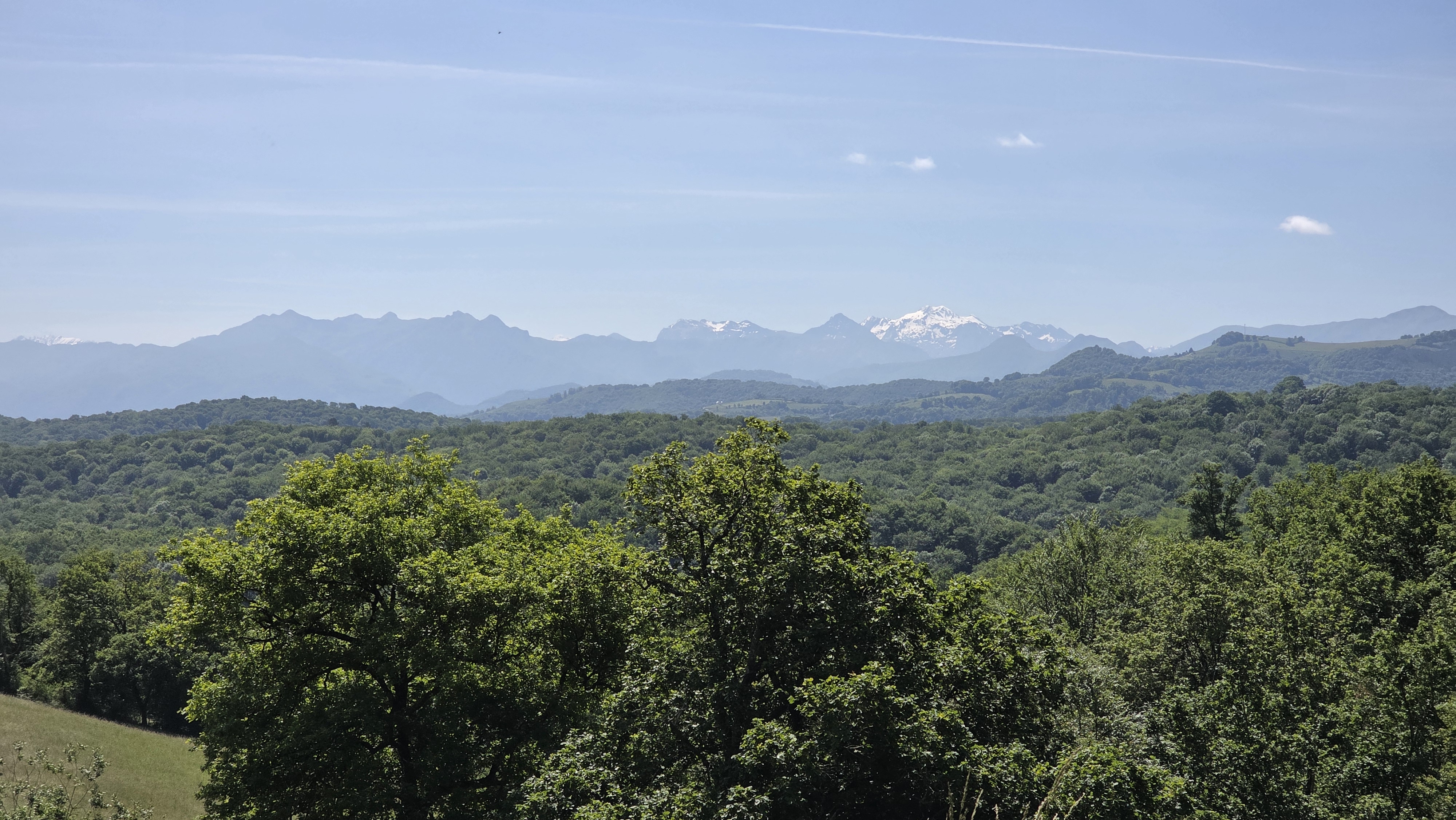 En débouchant des sous-bois nous avons eu de belles vues sur les sommets des Pyrénées.