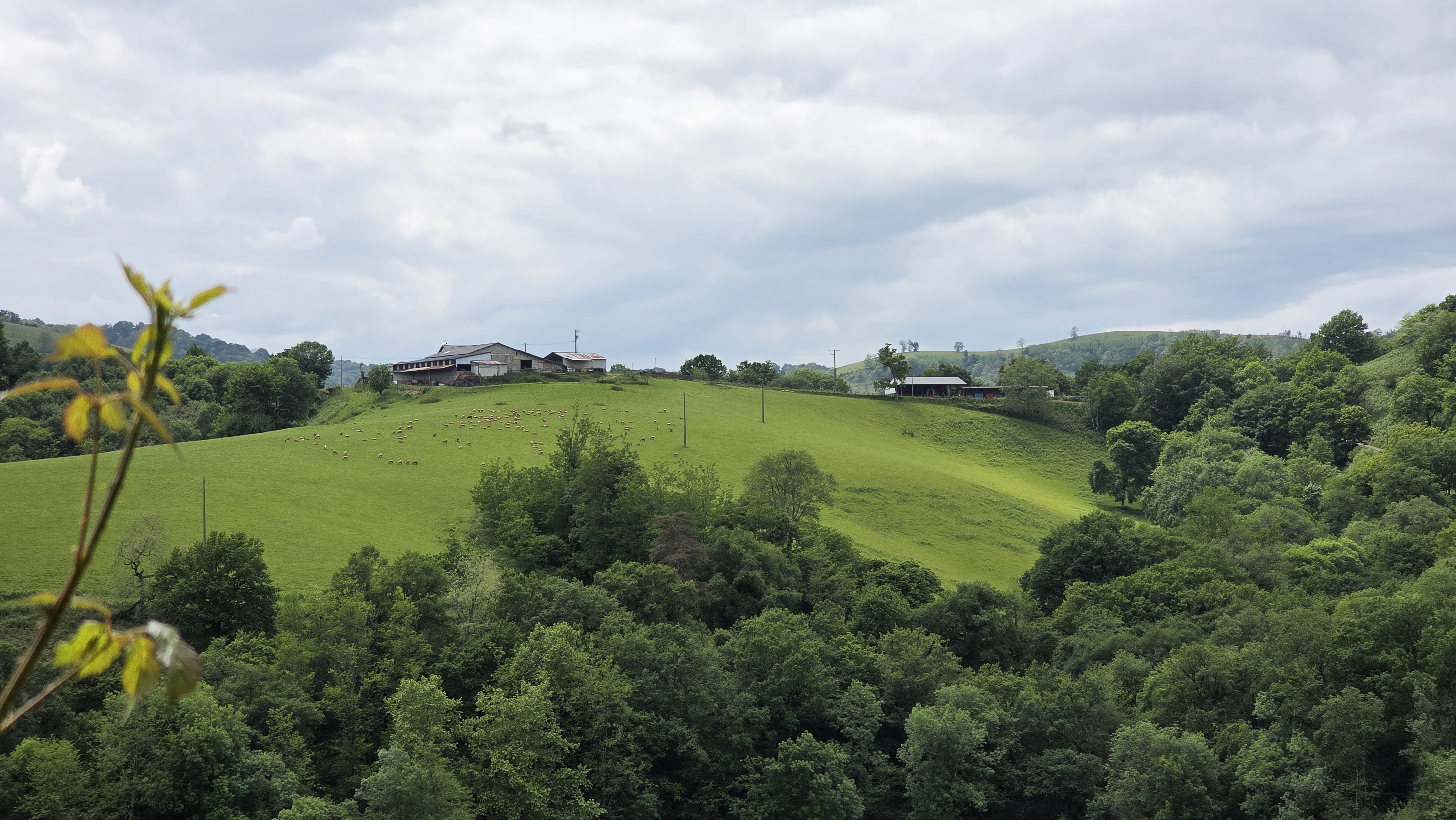 Le paysage est très vert et très vallonné, fidèle à l’image qu’on se fait du Pays Basque. L’altitude reste faible mais le cumul des dénivelés est loin d’être négligeable.